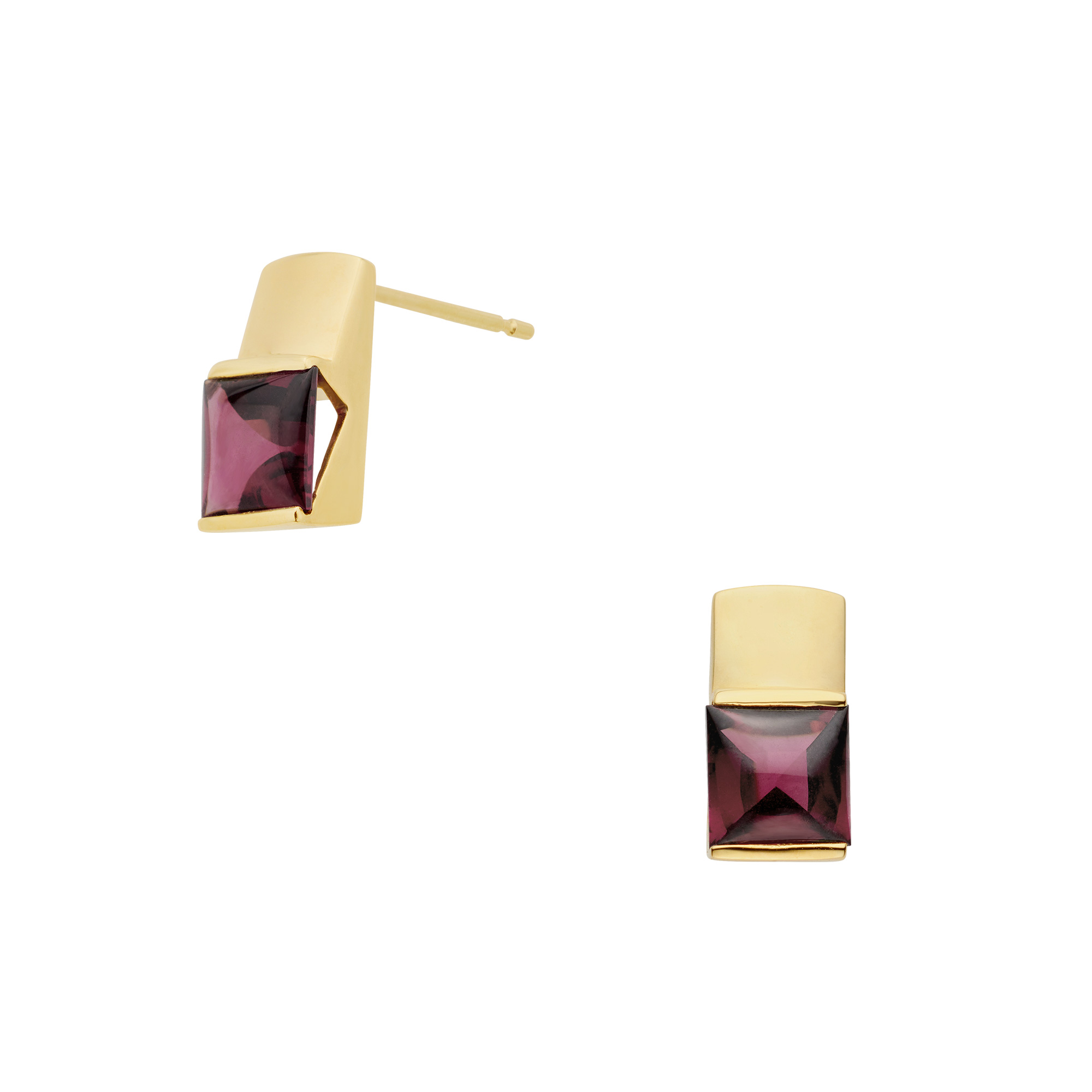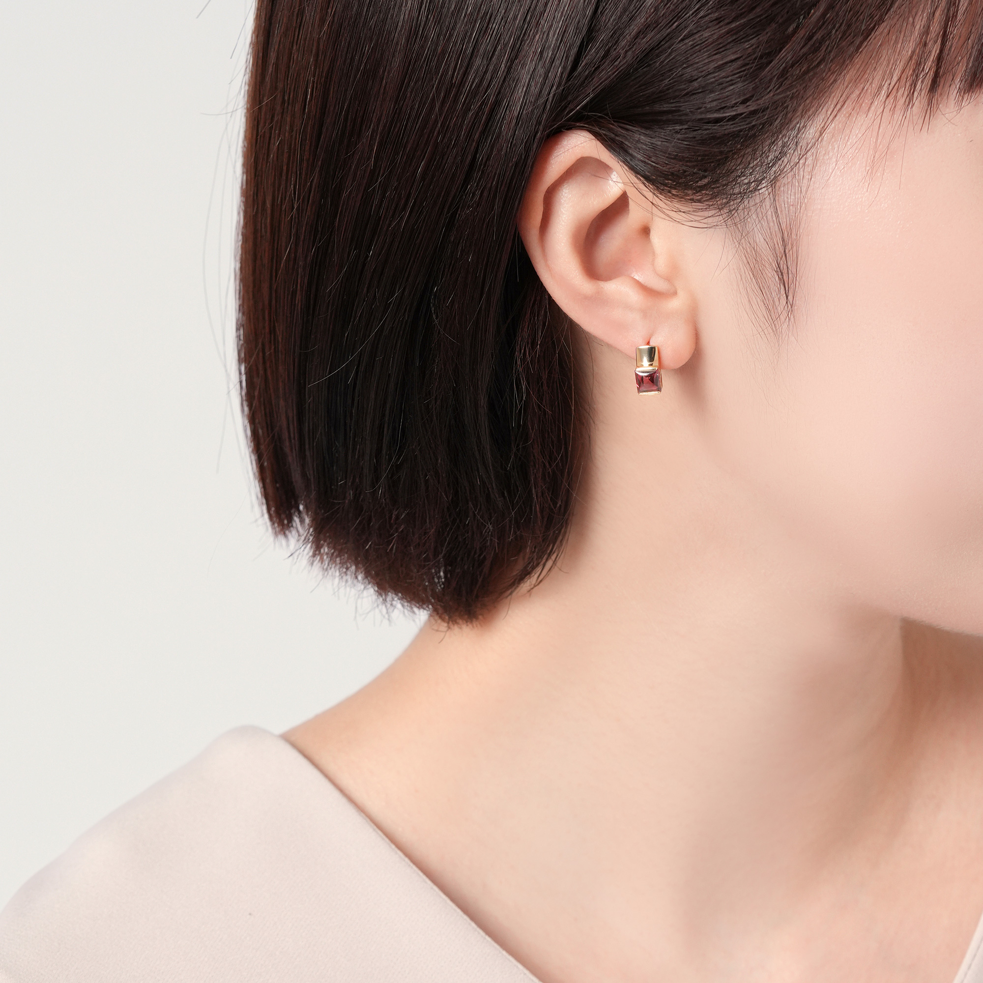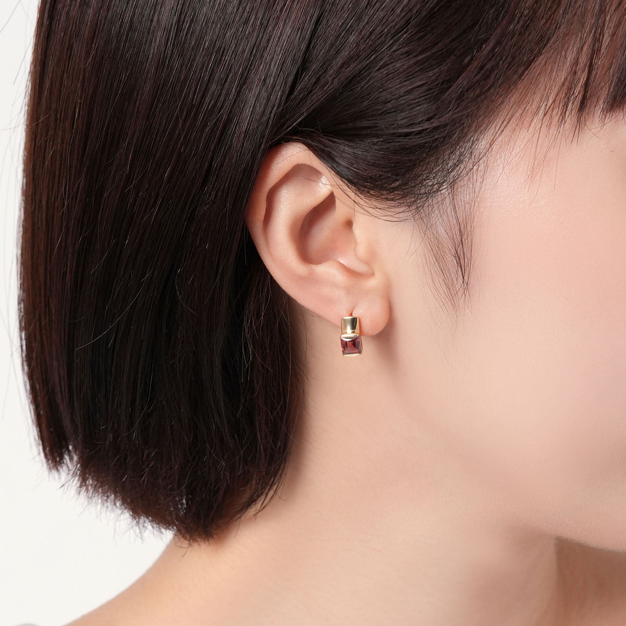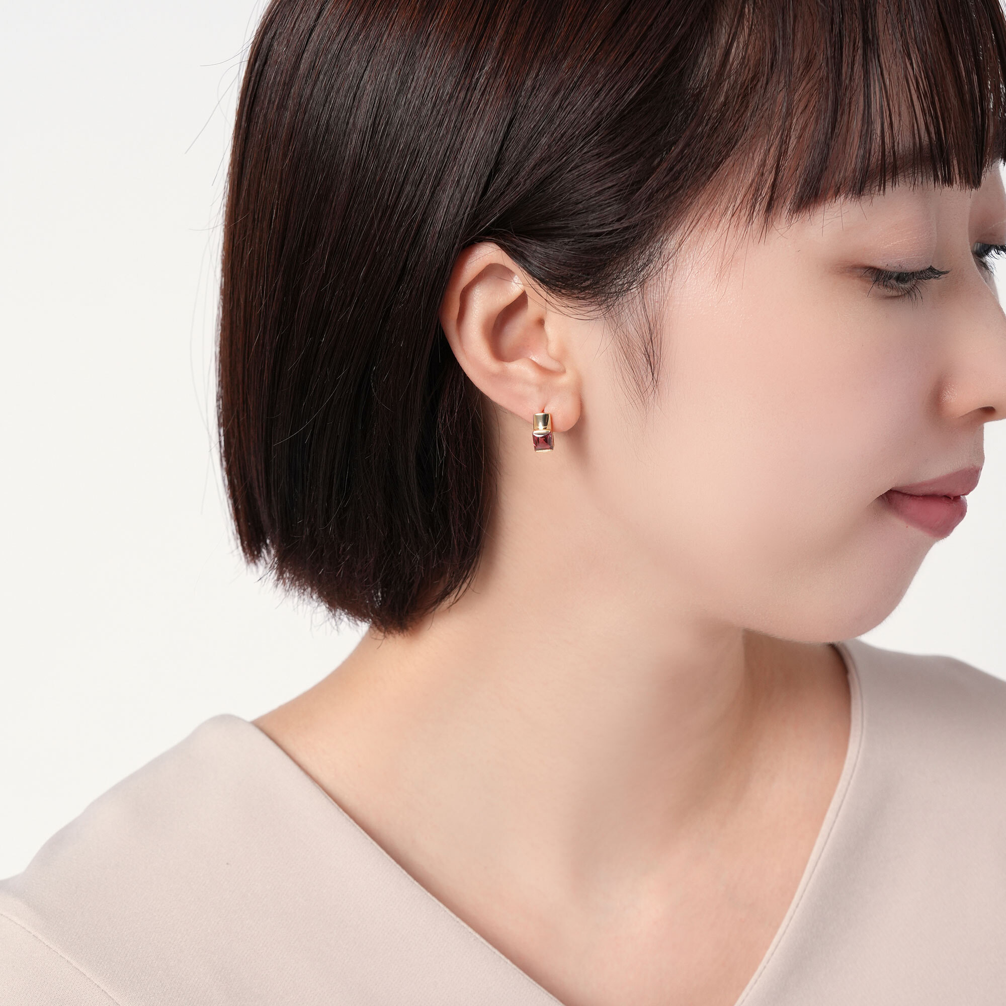 紫色を帯びた深いレッドが印象的な表情を演出するピアス。
