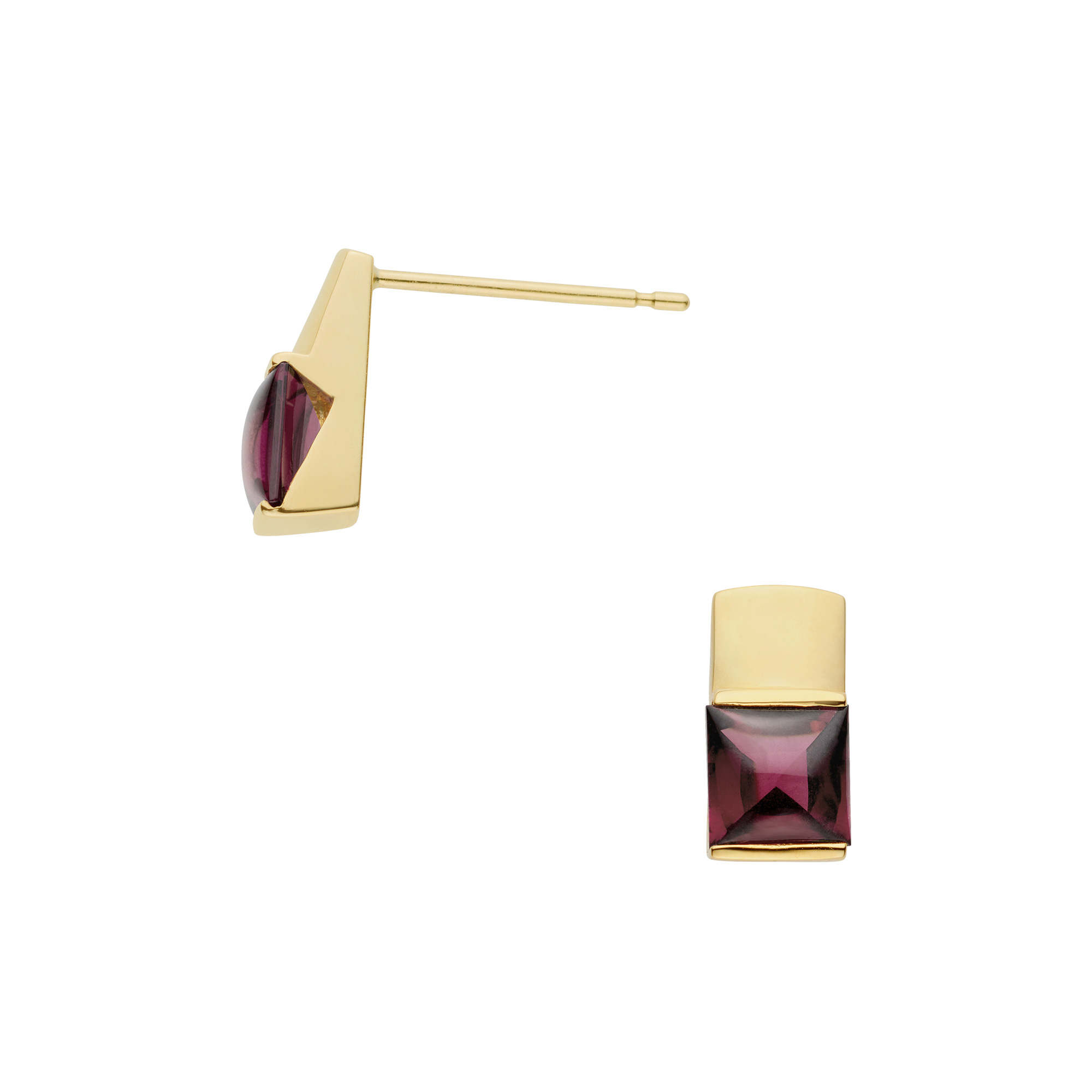 石の上下を挟み込むように留めたゴールドの輝きが、ガーネットの赤い色を引き立てます。
