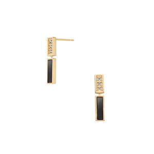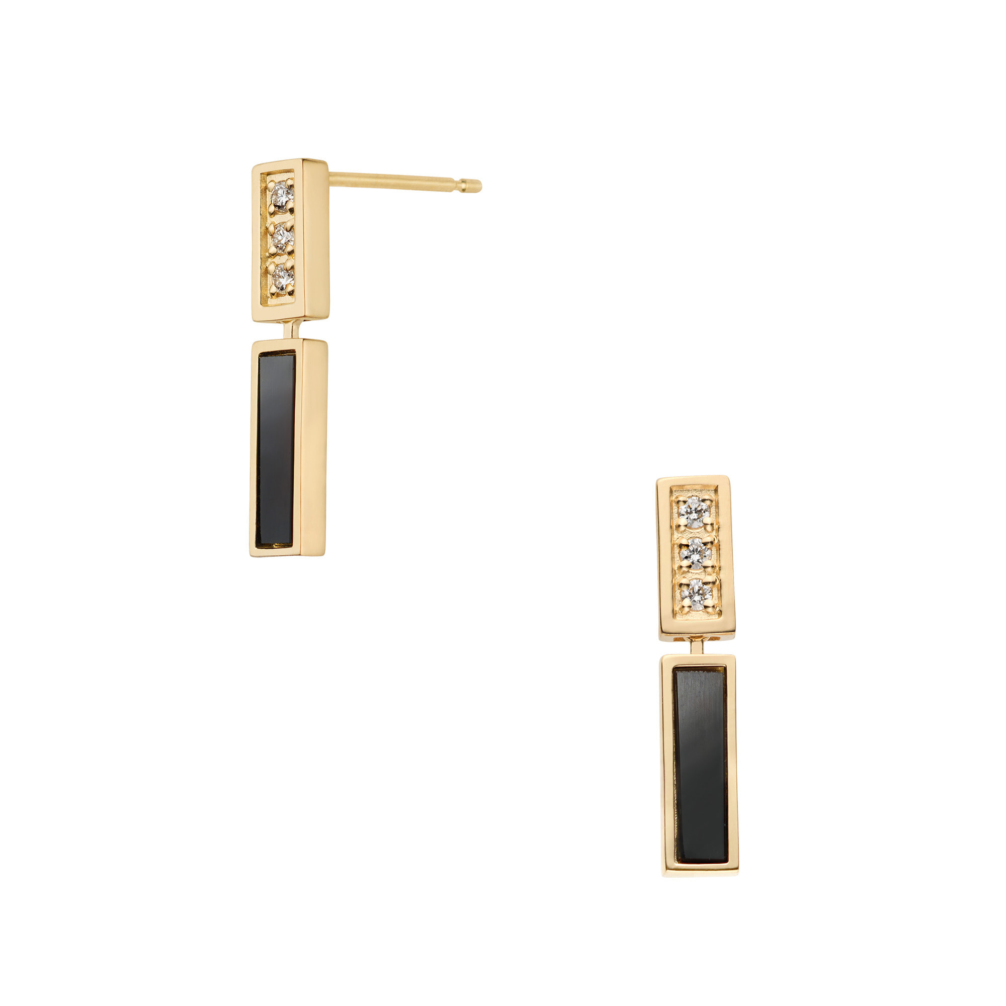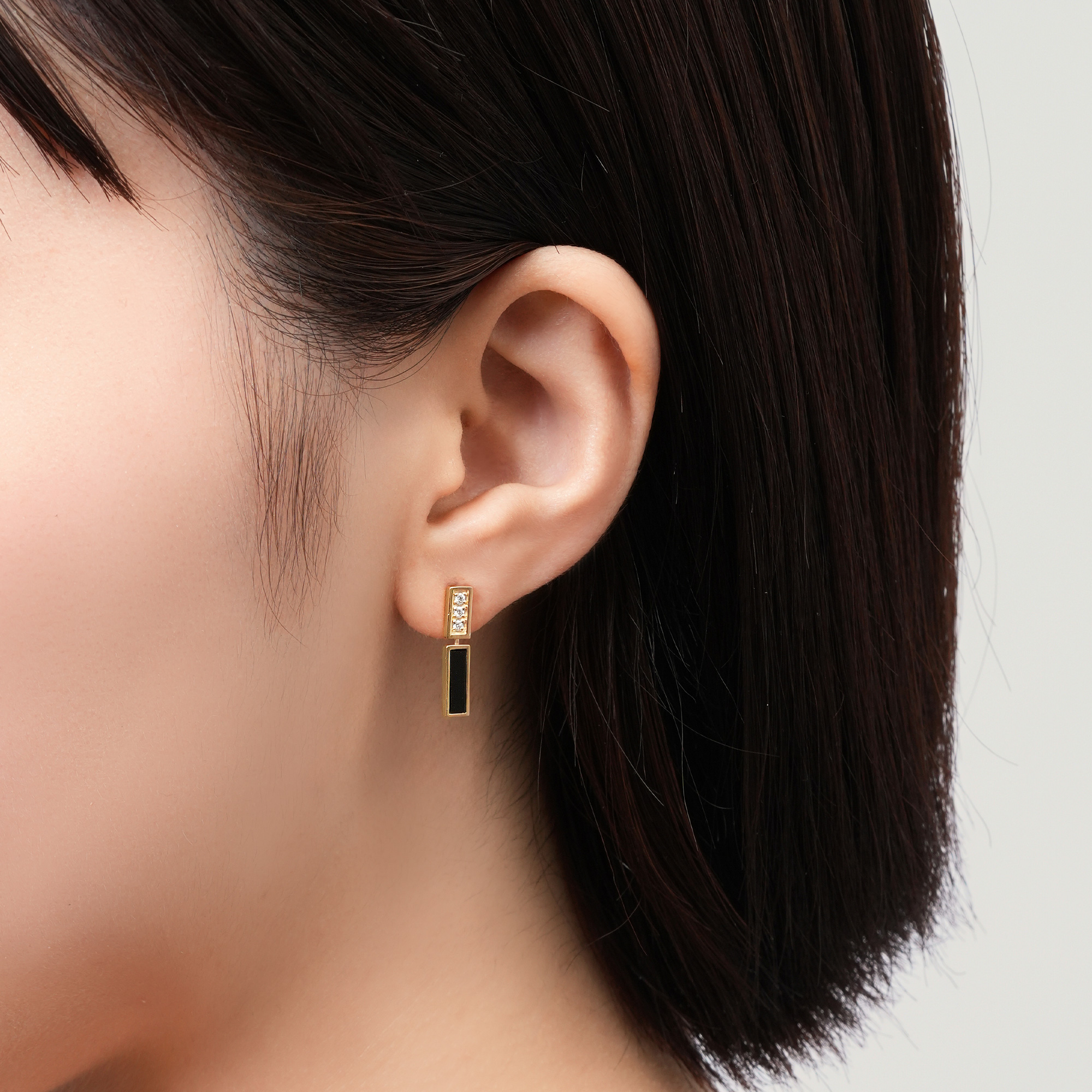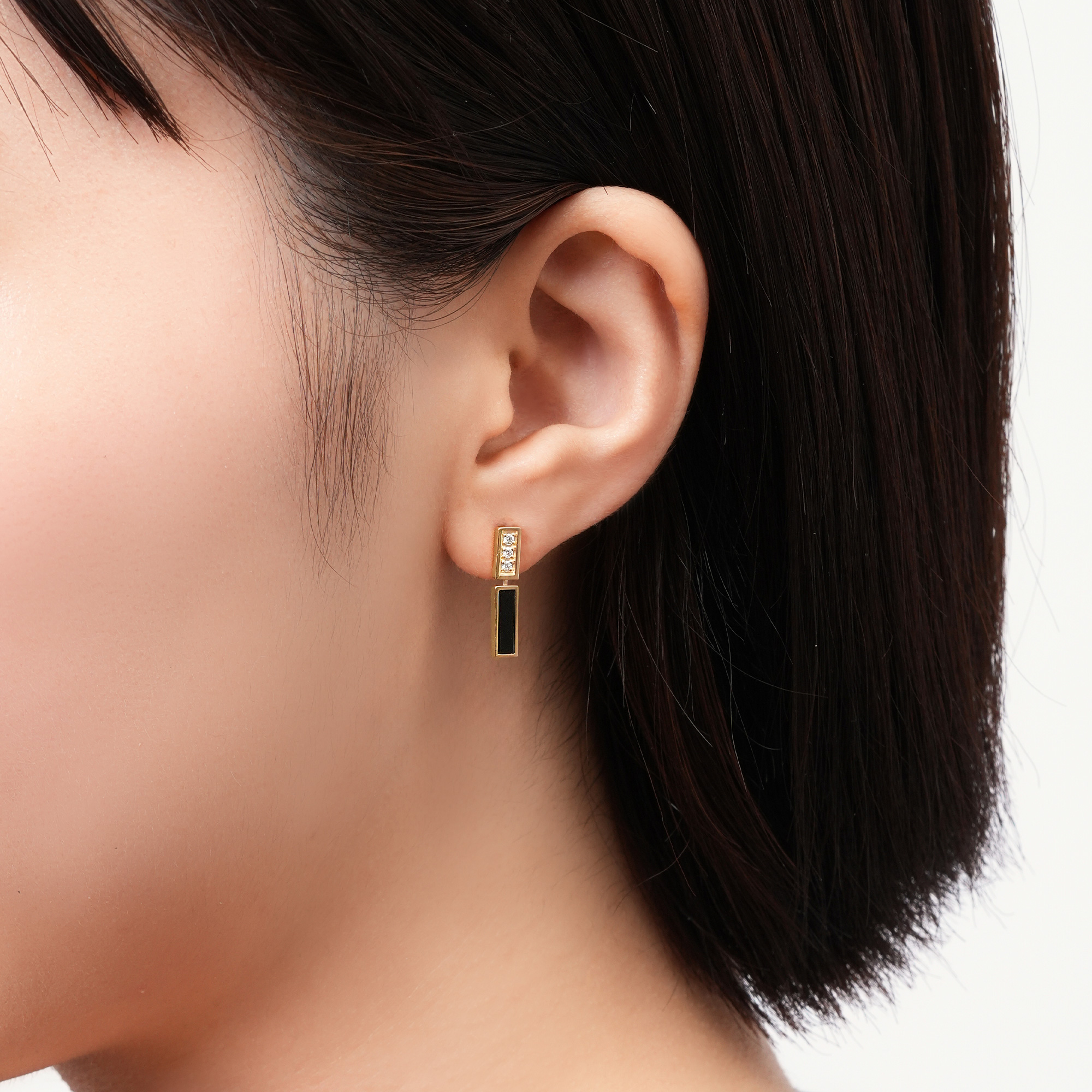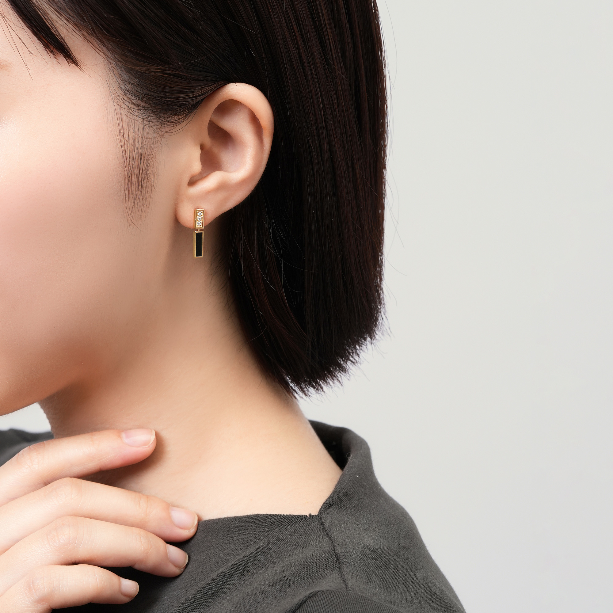細身のシルエットとブラックカルセドニーのシックな表情が印象的なピアス。