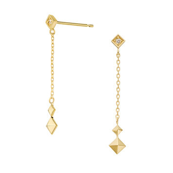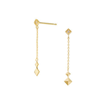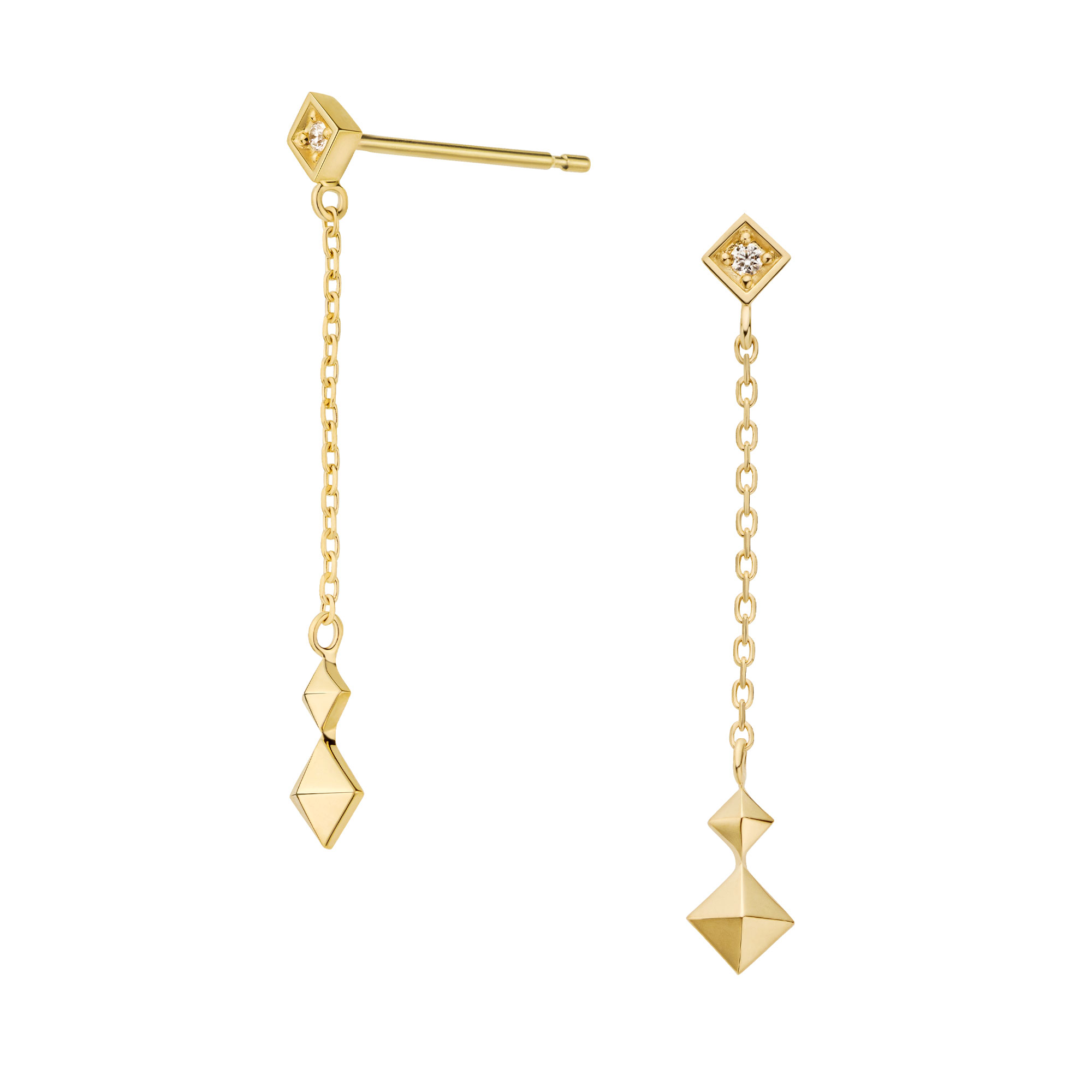 連なるピラミッドのフォルムとダイヤモンドの輝きが印象的なピアス。