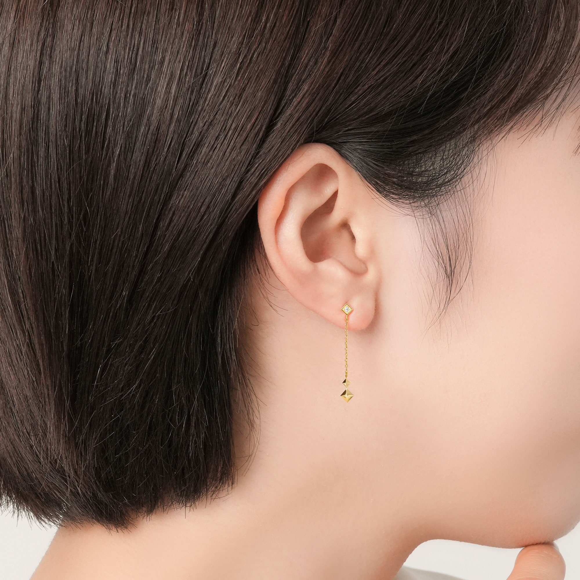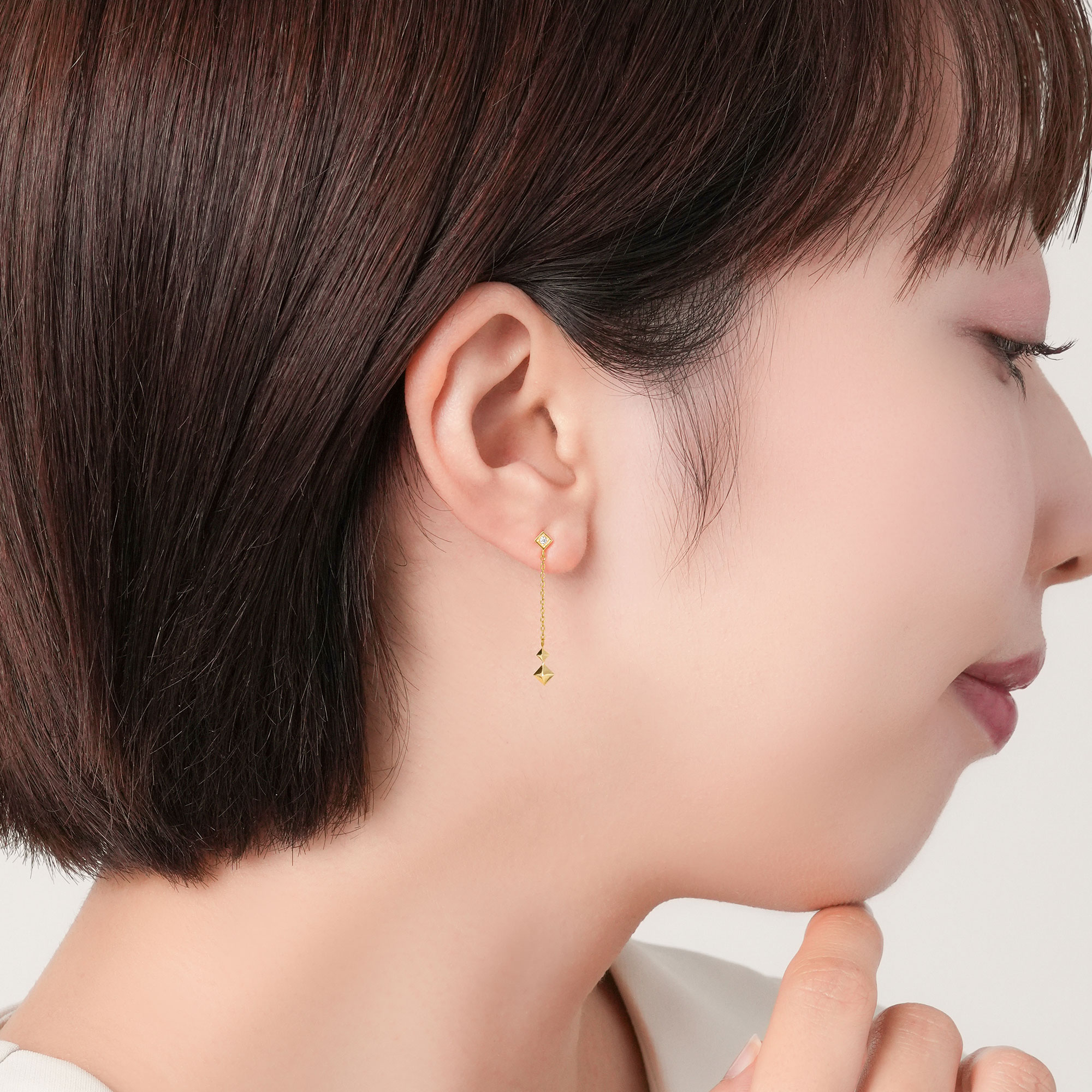 ピラミッドのフォルムとダイヤモンドの輝きが対比するデザインは、横顔をモダンに演出します。