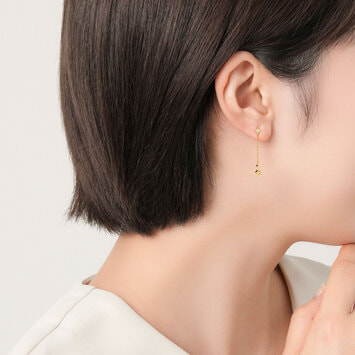 あらゆる方向から光を受けて描き出される陰影がフォルムを立体的に浮き上がらせ、スイングすることで耳元にきらめきを添えます。