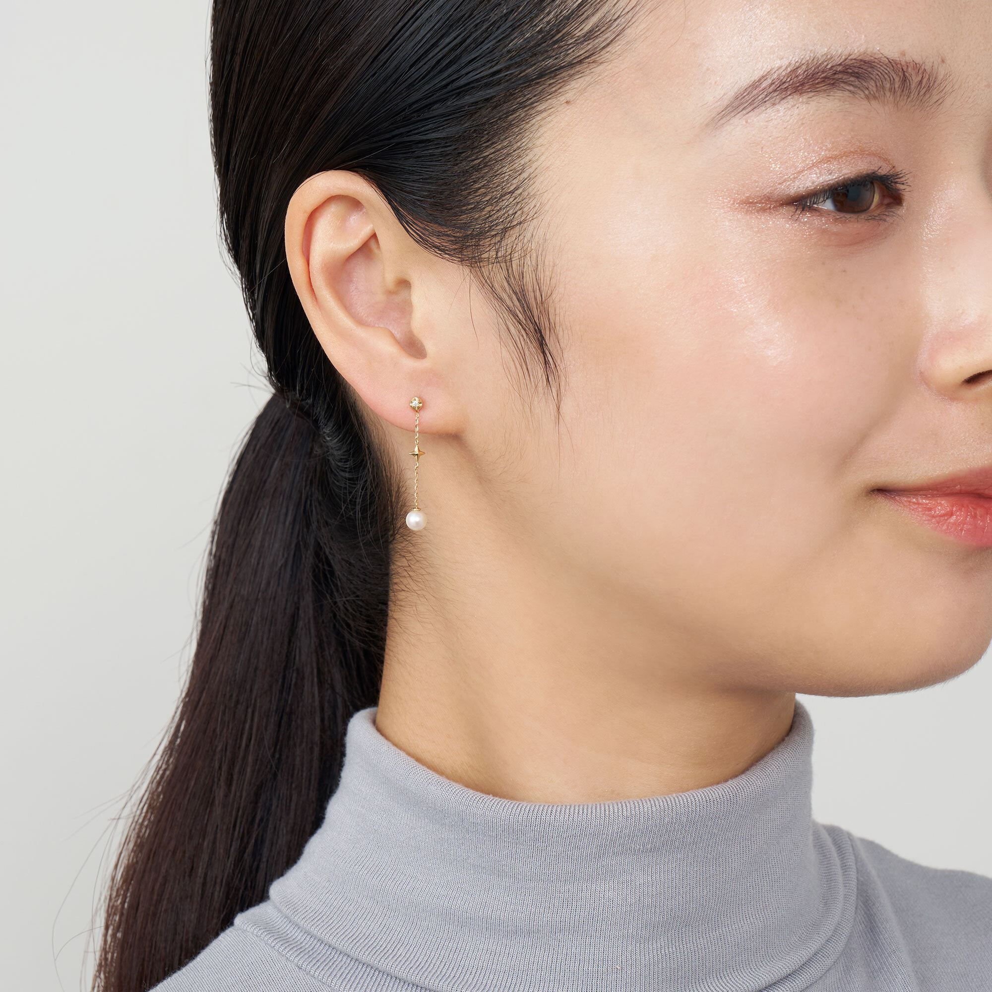 仕草に合わせ耳元で揺れ、横顔にエレガンスを感じさせます。