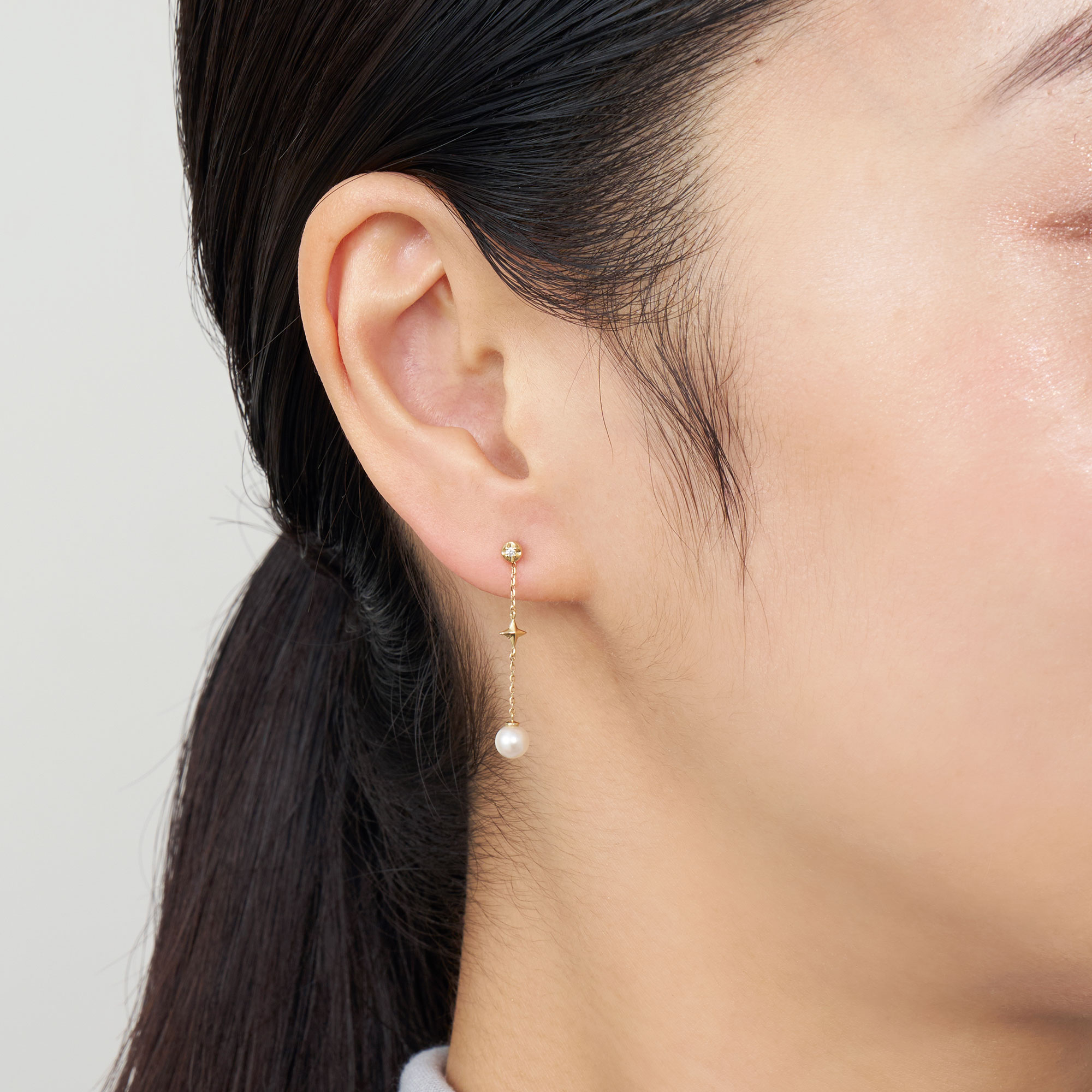 パーツを取り外すと、シンプルなダイヤモンドスタッドピアスとしても使え、耳元にさりげない輝きを添えてくれます。