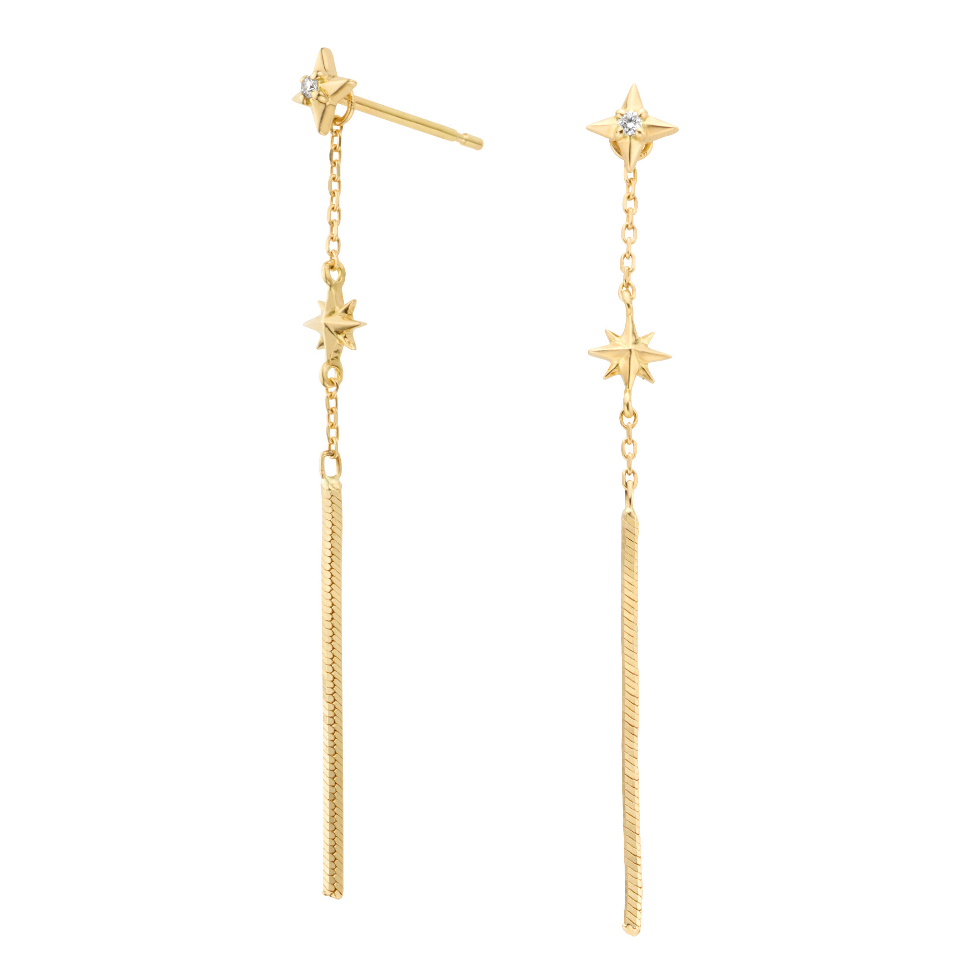 カットが施されたチェーンには繊細な煌めきのモチーフをあしらい、長さのあるデザインのアクセントに。