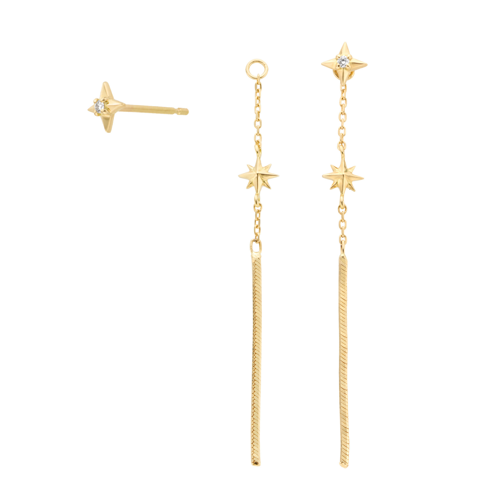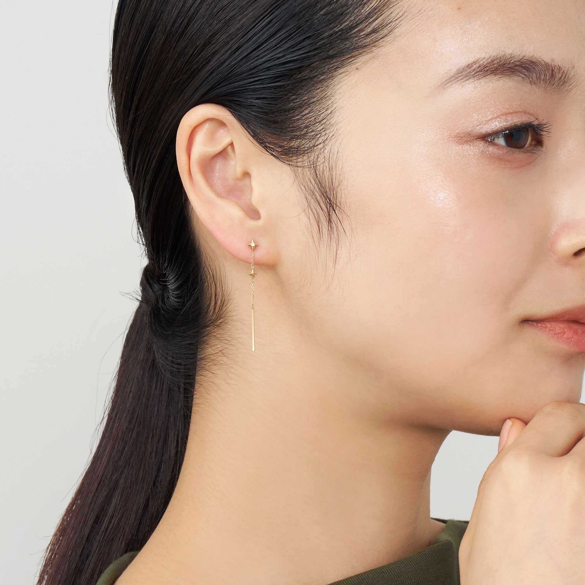 パーツを取り外すと、シンプルなダイヤモンドスタッドピアスとしても使え、耳元にさりげない輝きを添えてくれます。