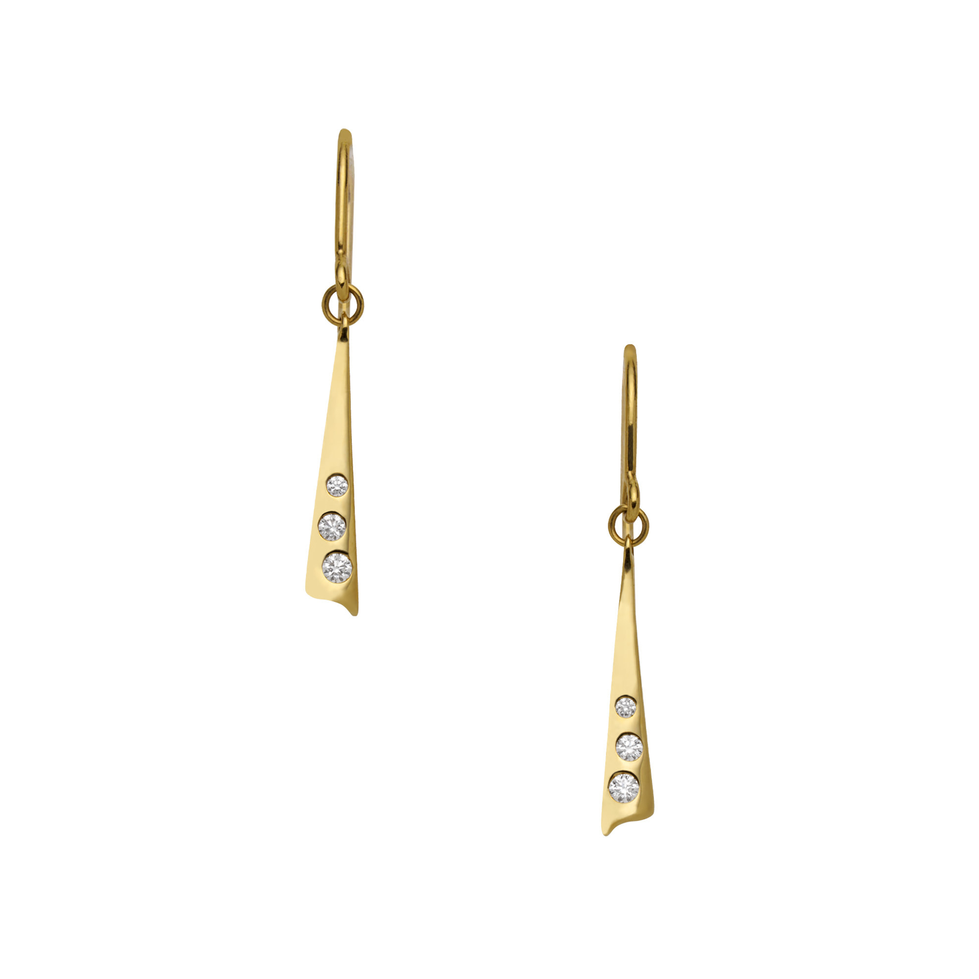 風をまとったヨットの帆をイメージしたイエローゴールドのピアス。