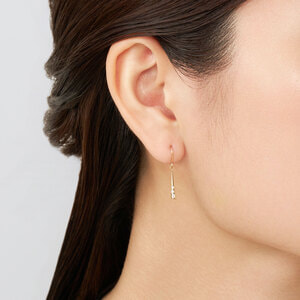 イエローゴールドの面が動きに合わせて光を捉え、横顔に印象的な輝きを演出します。