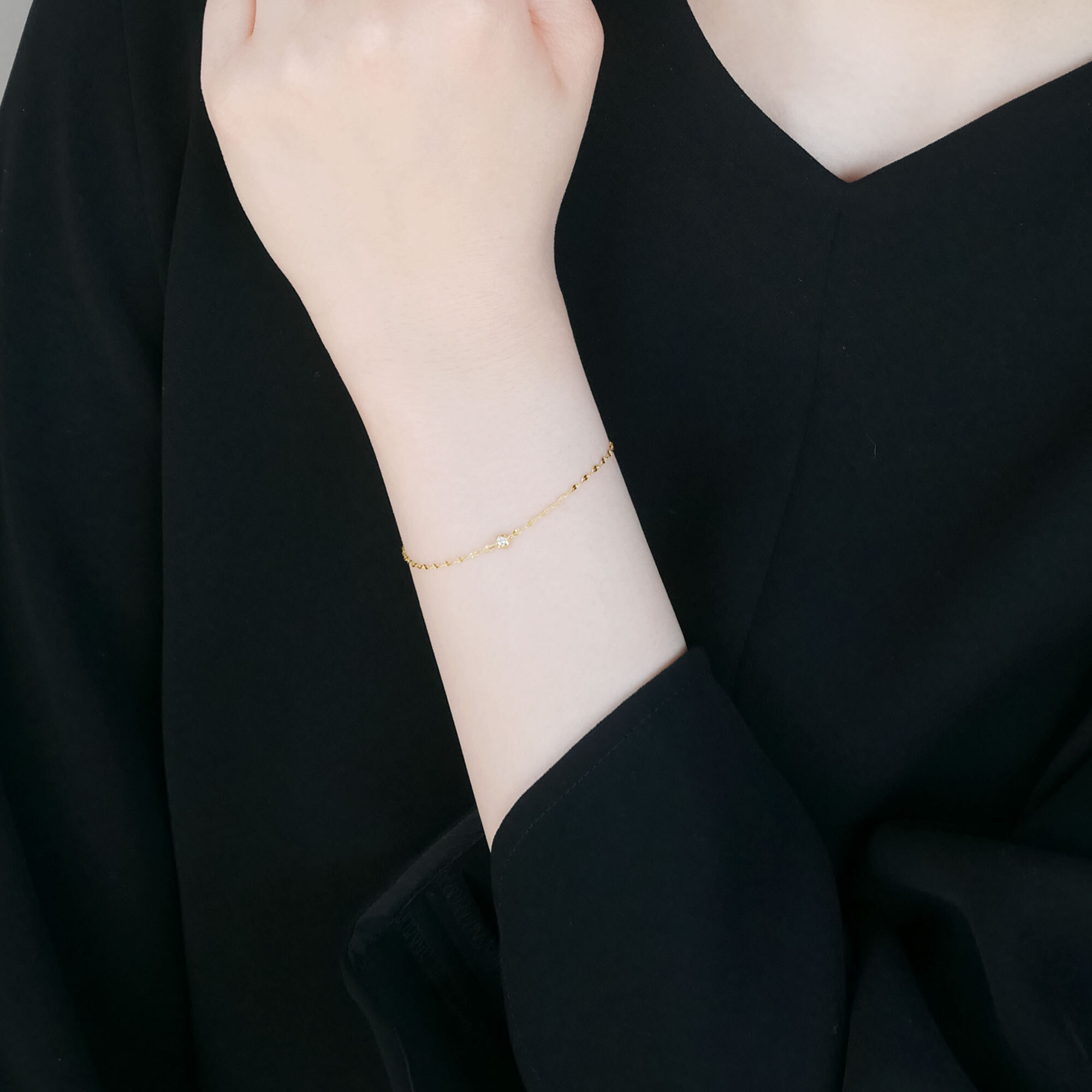 繊細な遊び心の光るチェーンにダイヤモンドが一石輝くブレスレット。