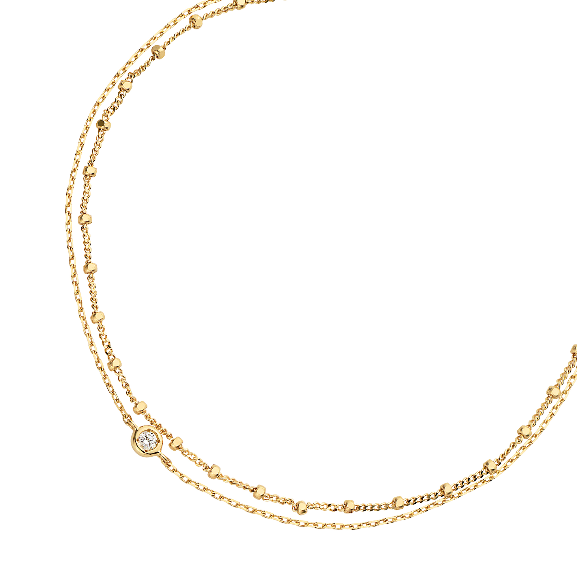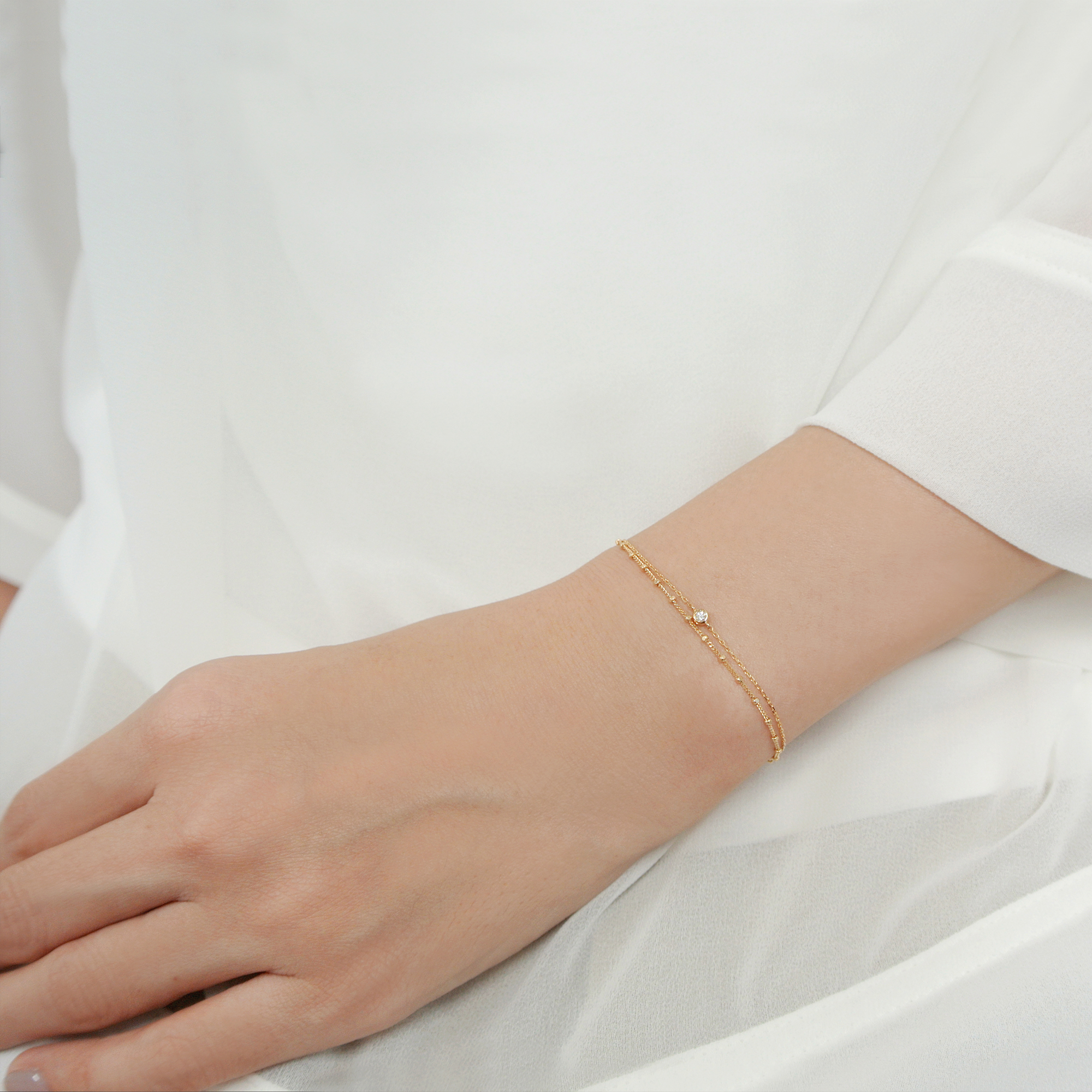 キラキラとしたパーツがリズミカルに並んだチェーンと、ダイヤモンドの煌きが美しく、手元に豊かな表情を生み出します。
