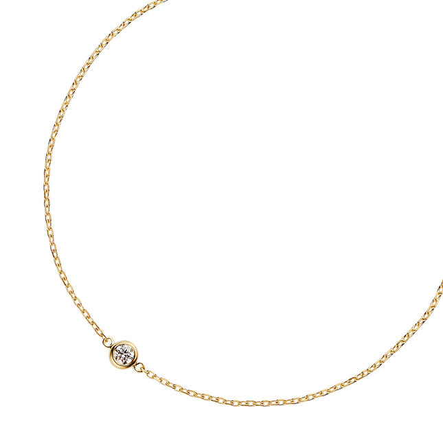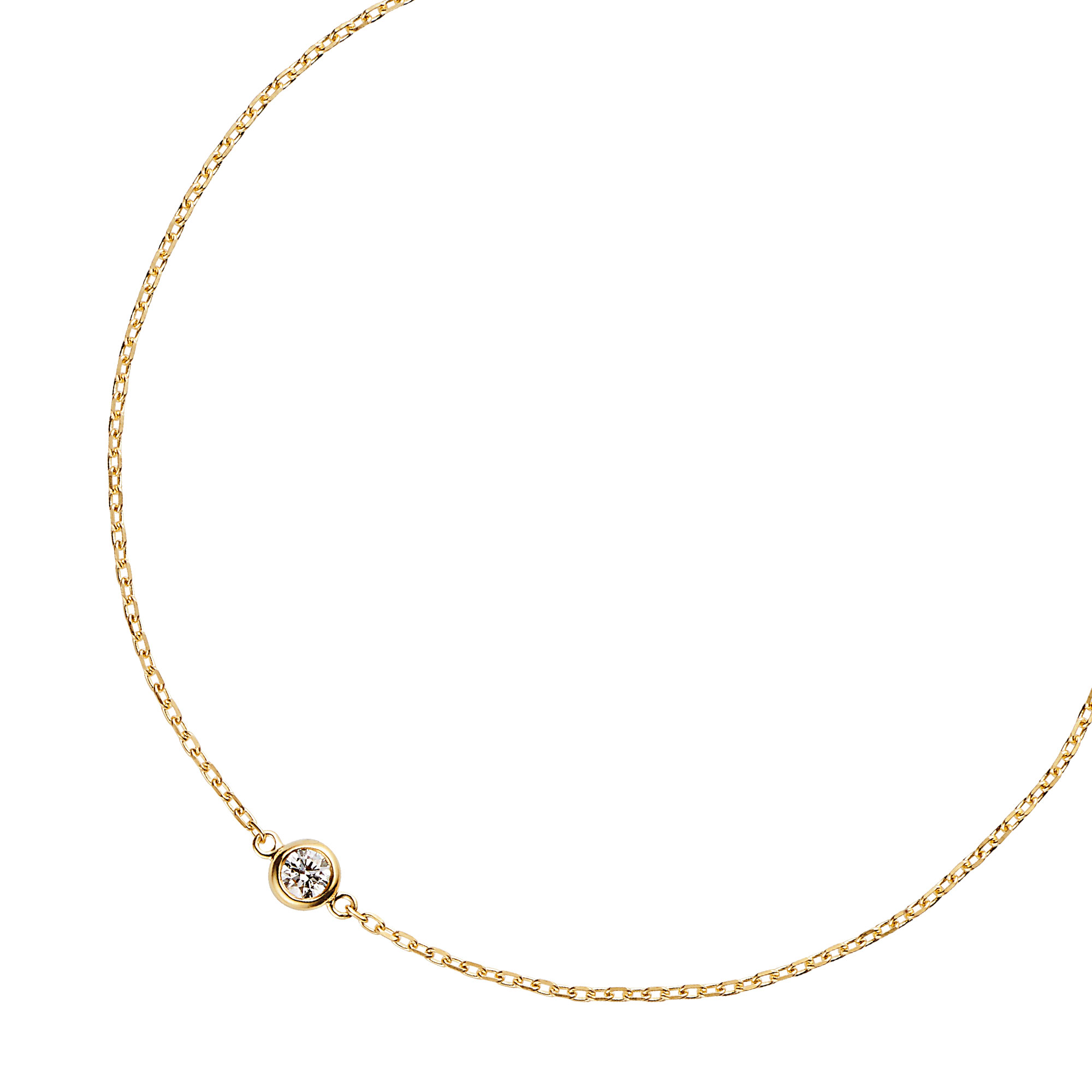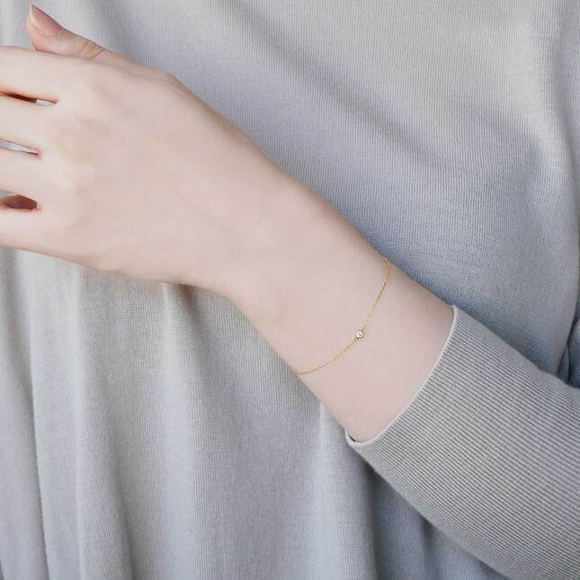 最もシンプルなデザインで、一粒のダイヤモンドの輝きを引き立てるブレスレット。