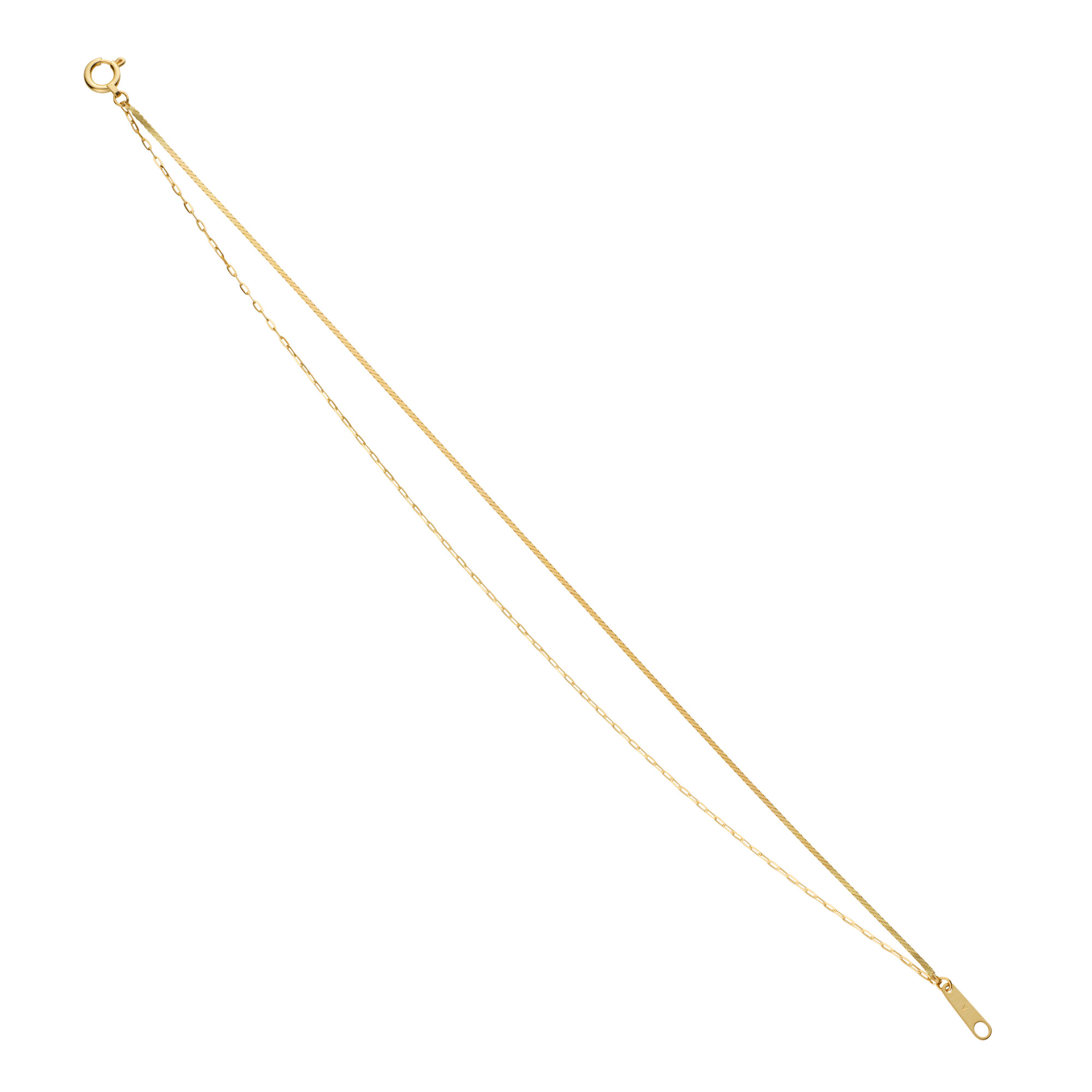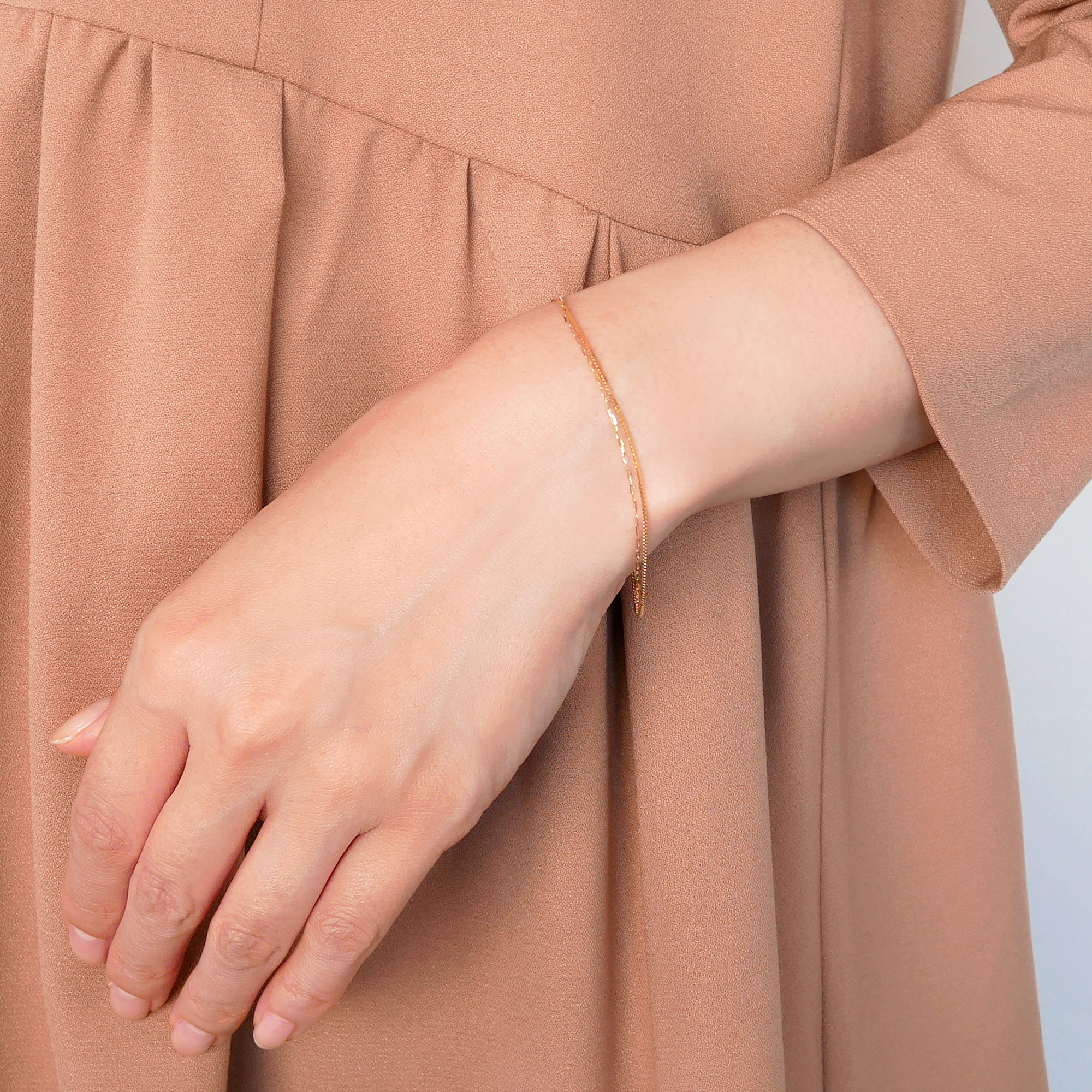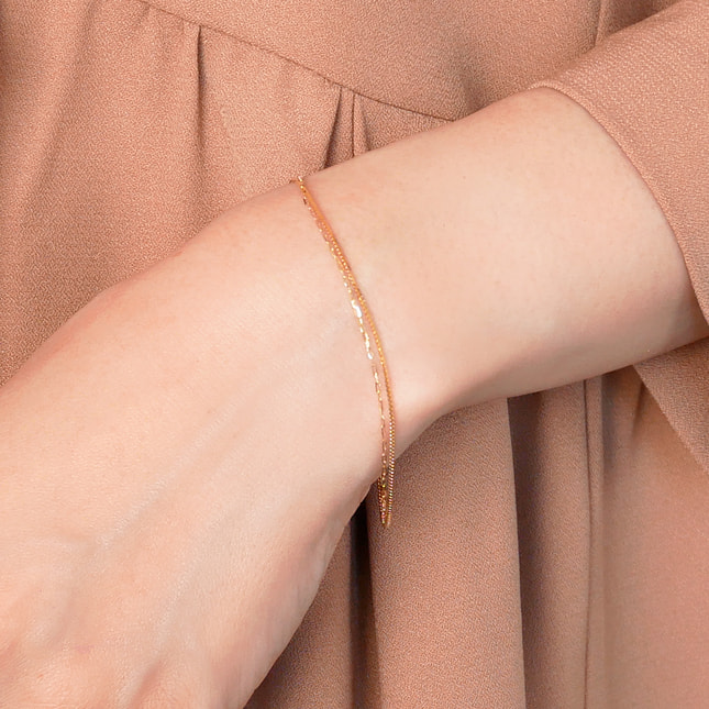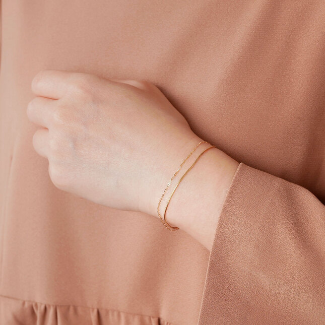 2本のチェーンの異なる印象が楽しいデザインチェーンブレスレット。