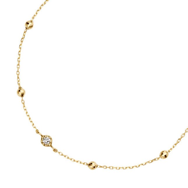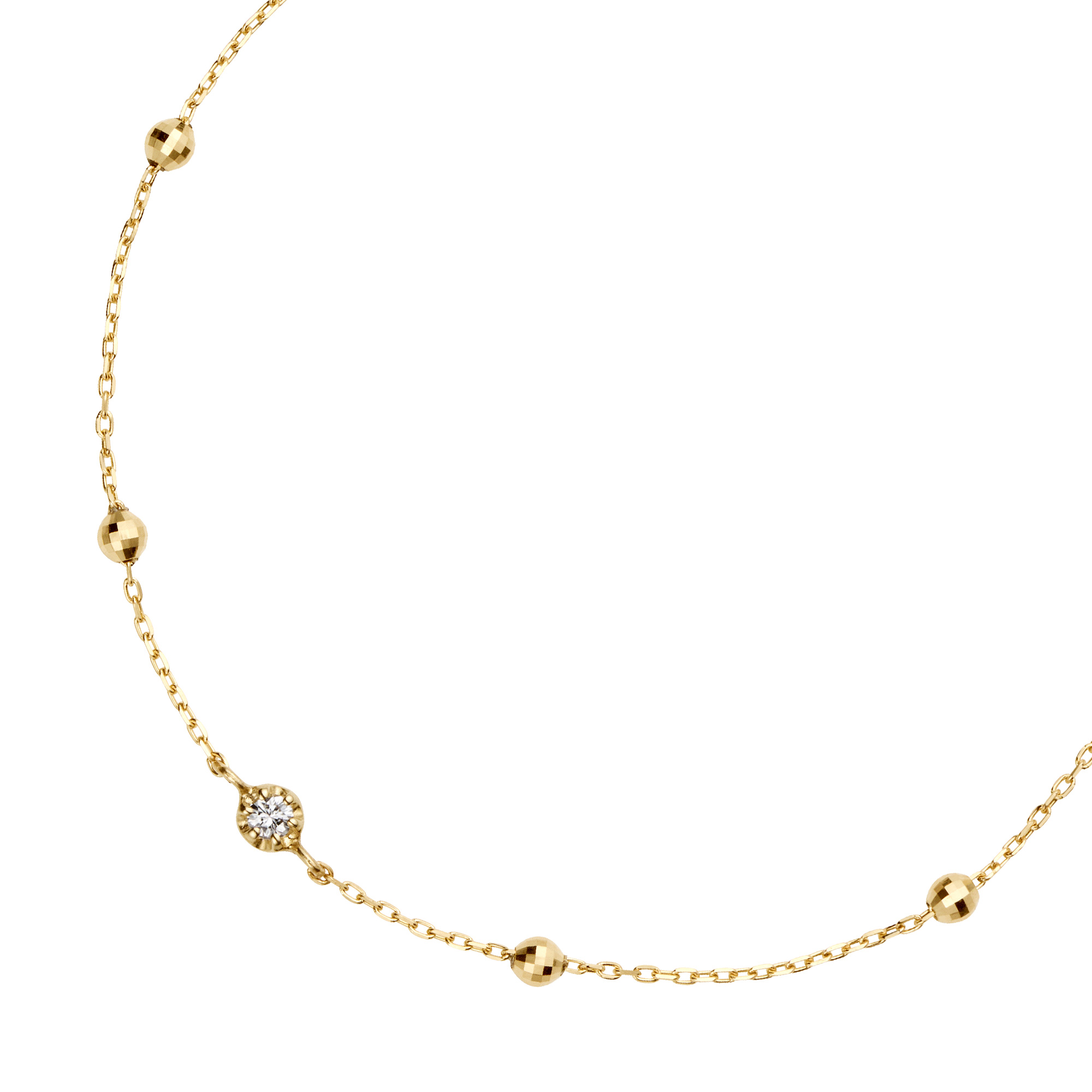 透明感のある輝きを放つダイヤモンドと、あらゆる方向からキラキラと輝く表面にカットの入ったゴールドのボール。