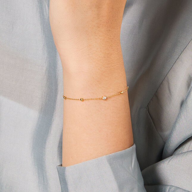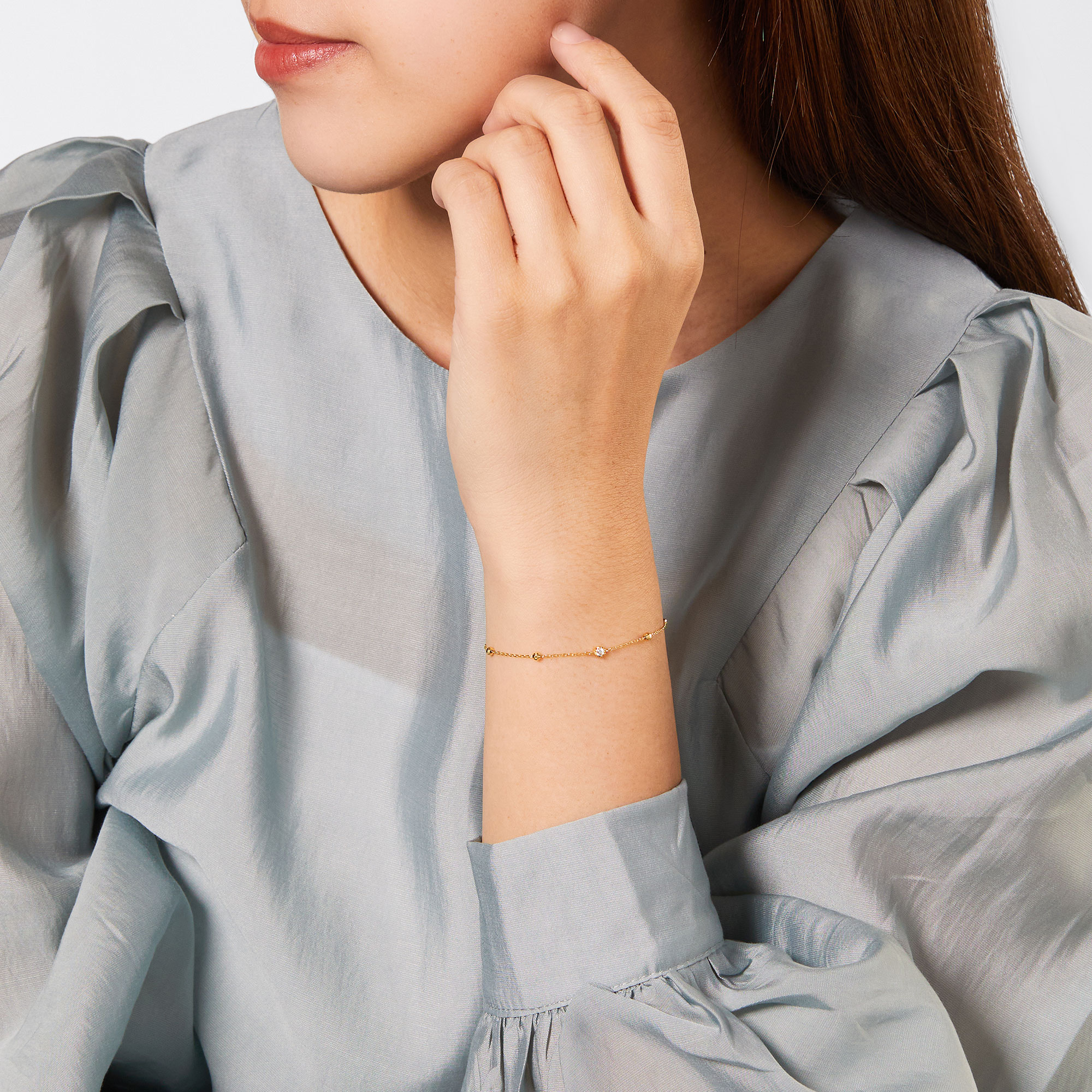 煌めくダイヤモンドとミラーカットパーツが華やかなブレスレット。