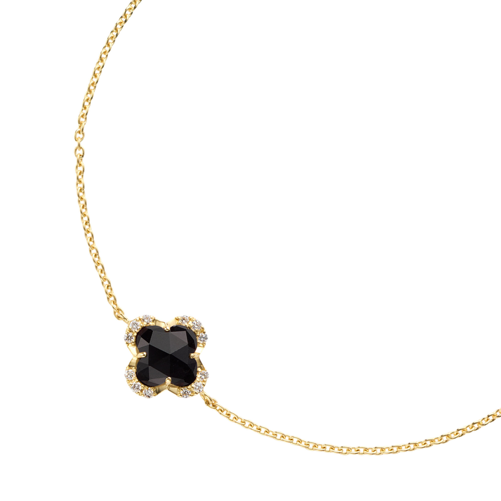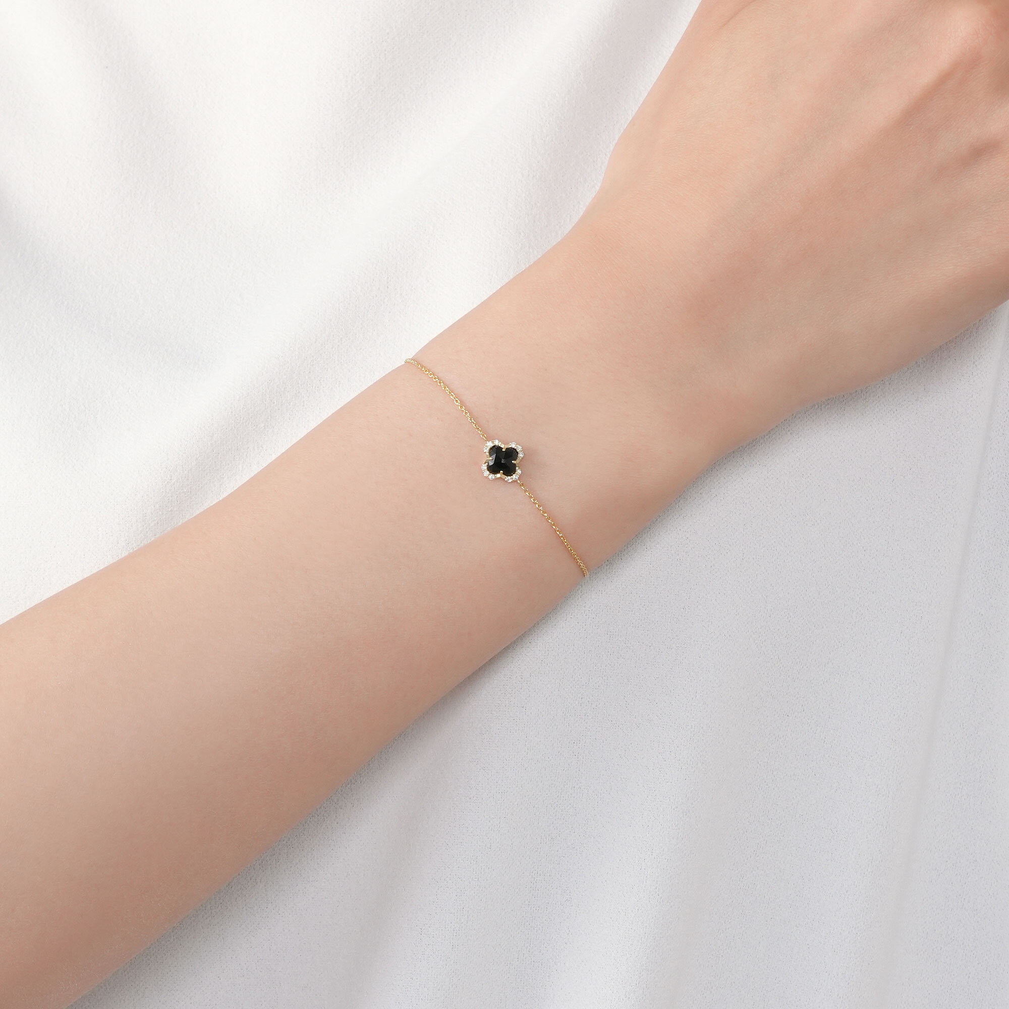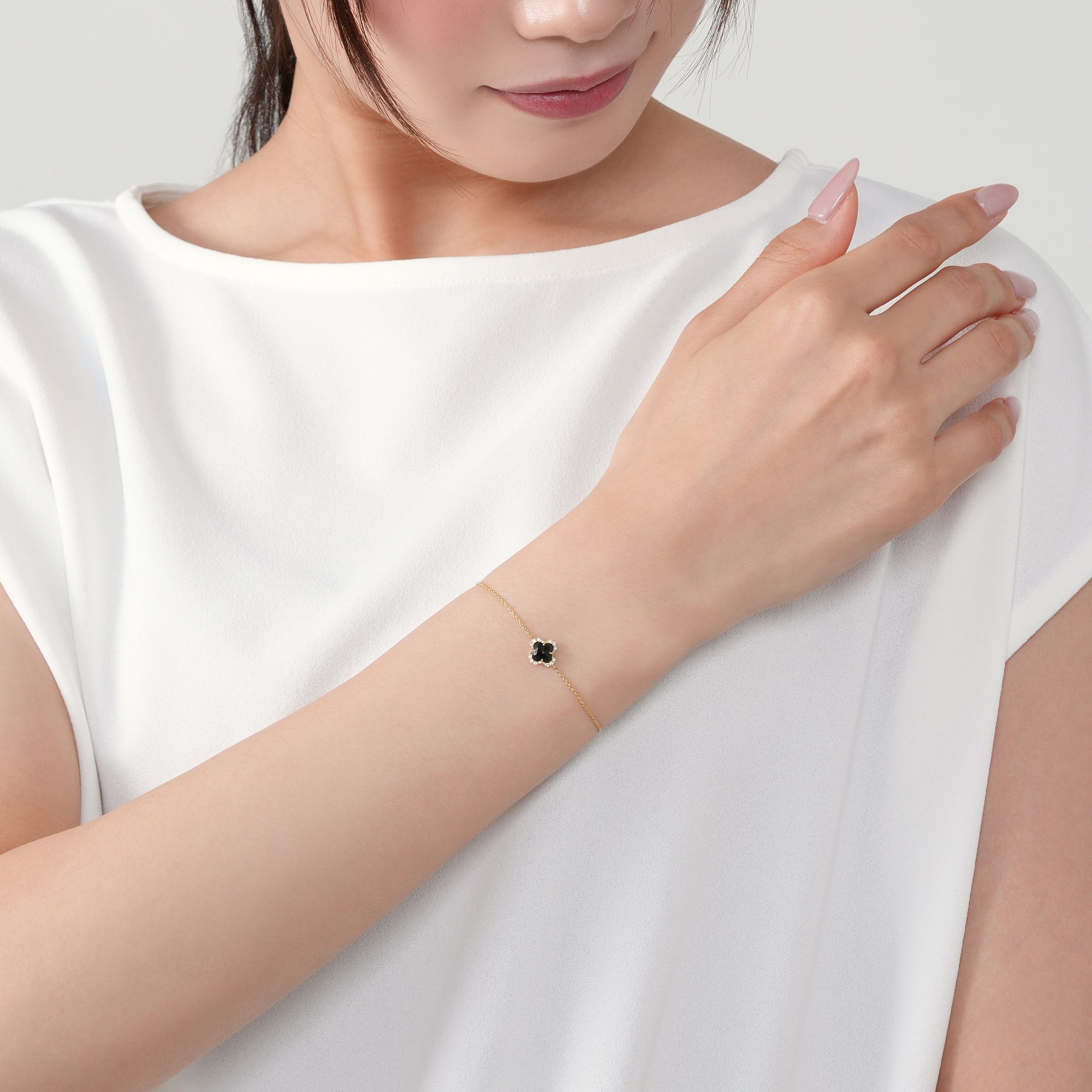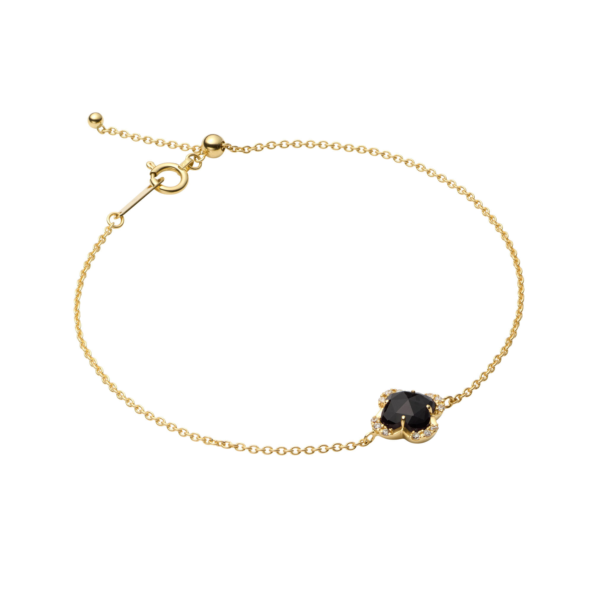 艶めくイエローゴールドにシックな印象のブラックカルセドニーを大人っぽく組み合わせたブレスレット。