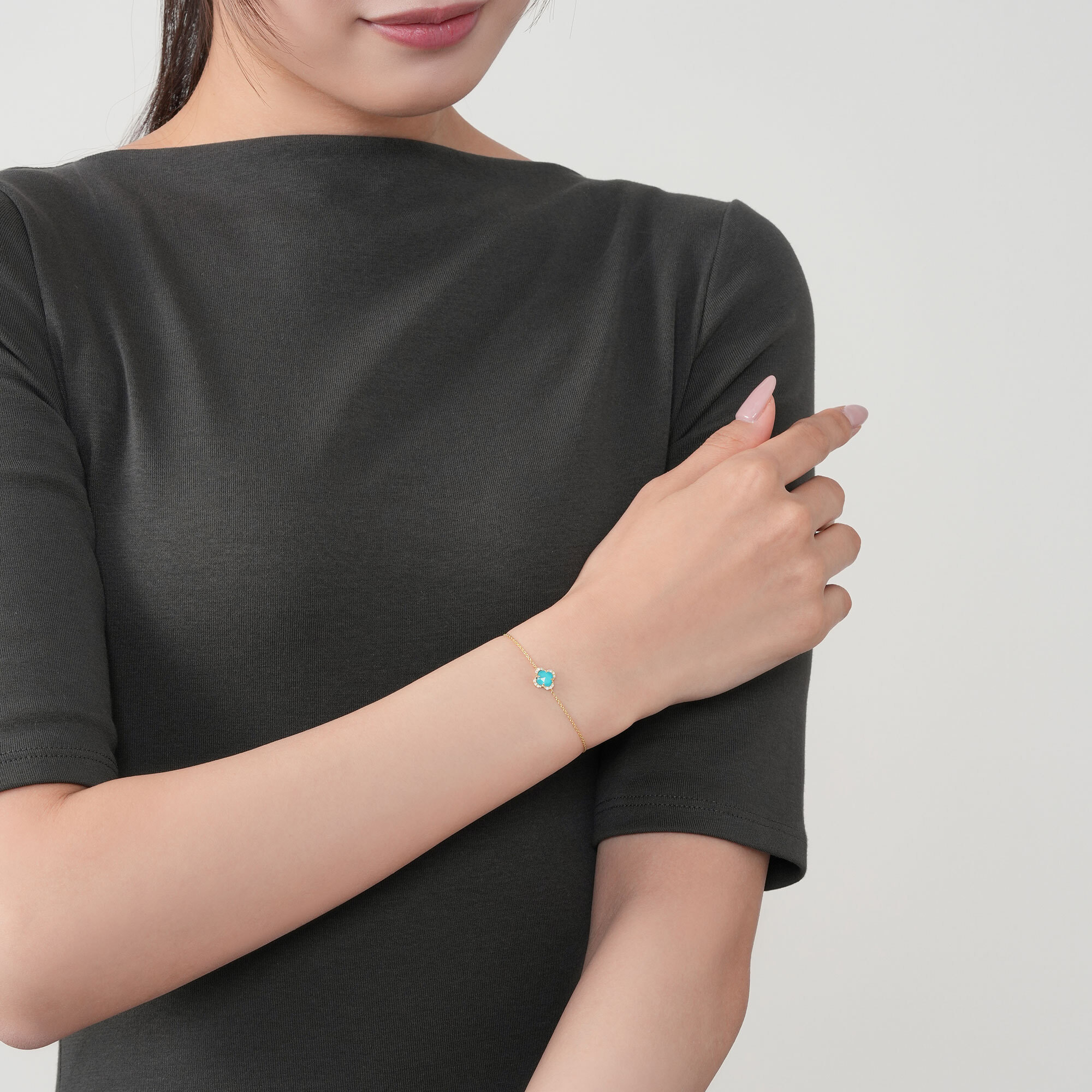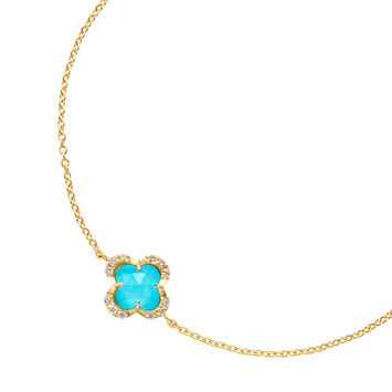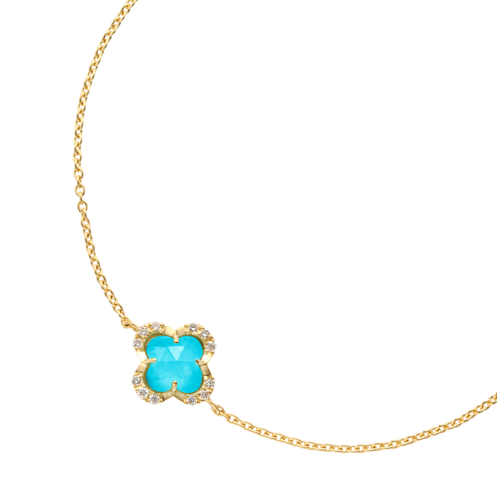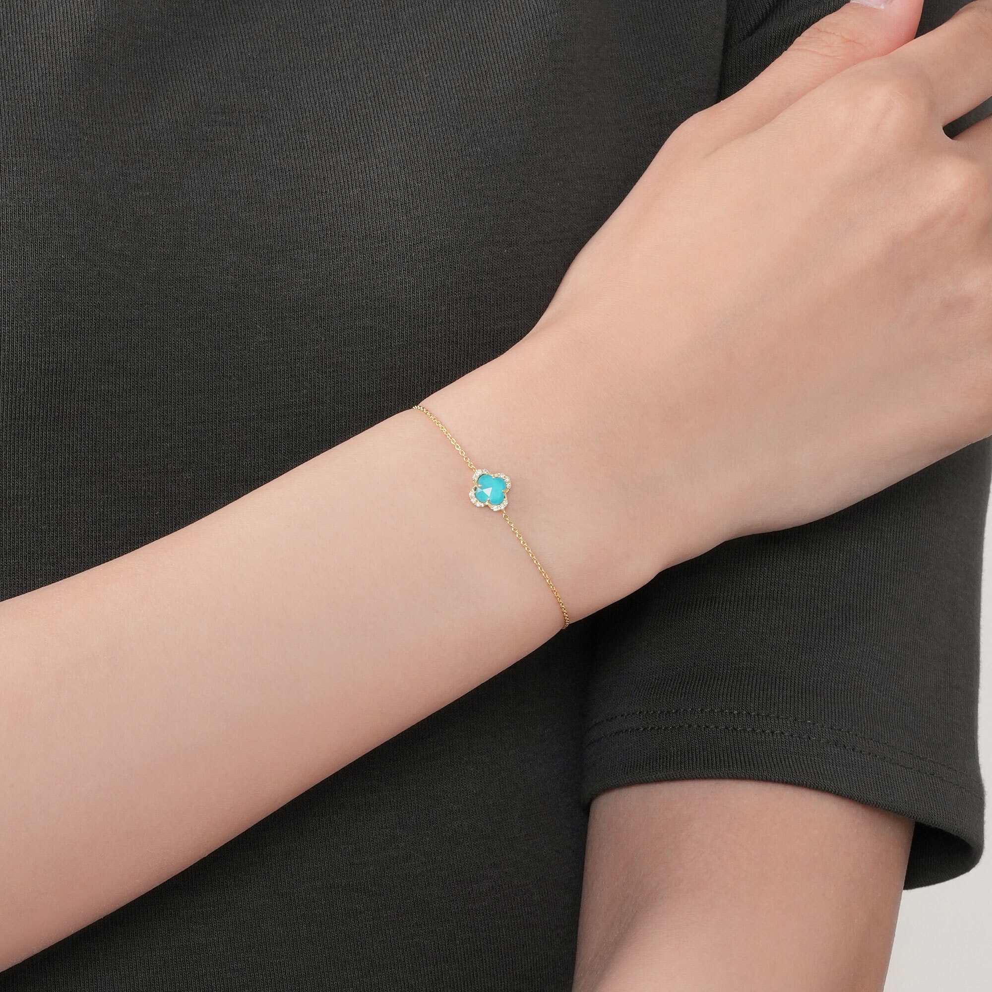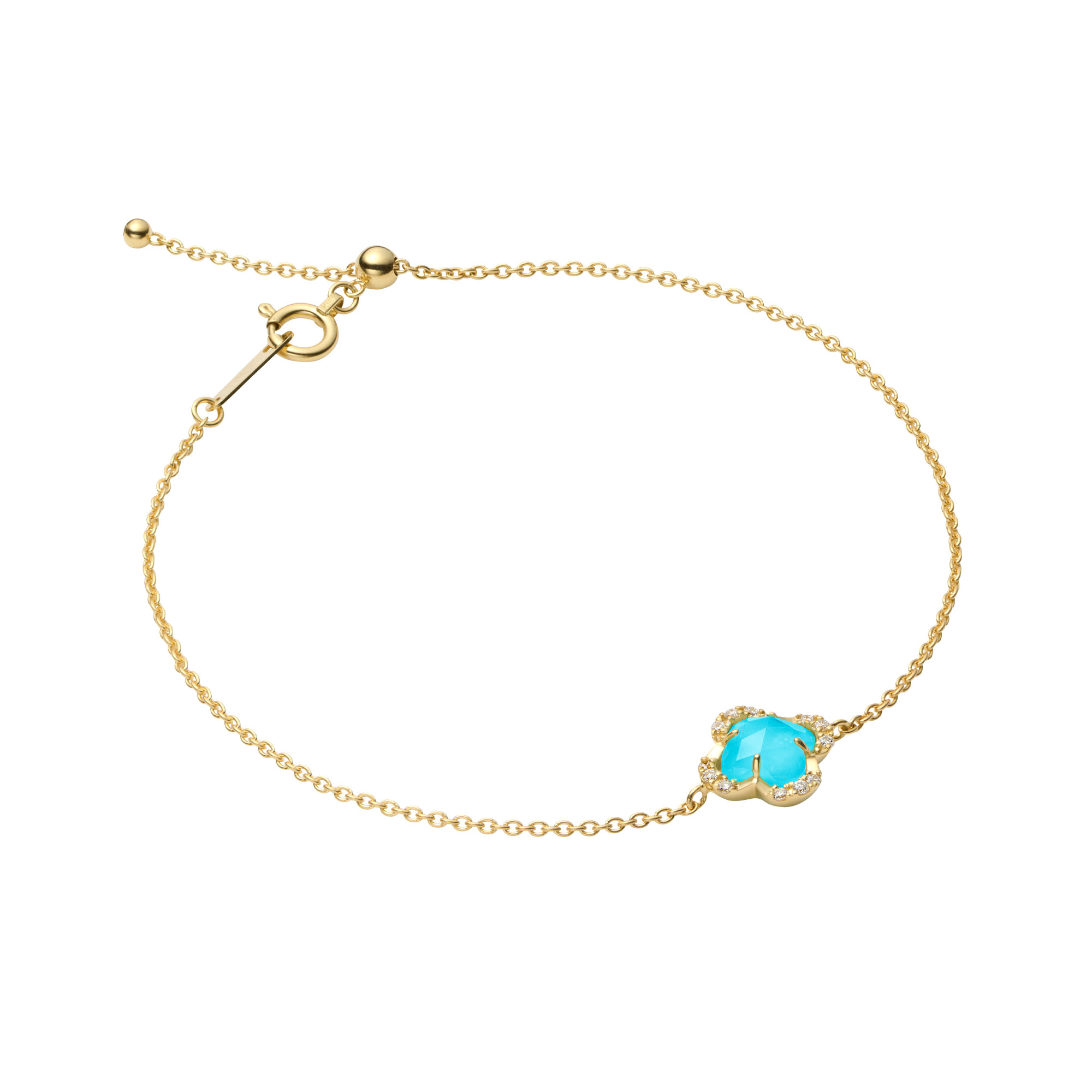 イエローゴールドに色鮮やかなターコイズとクォーツを組み合わせたブレスレット。