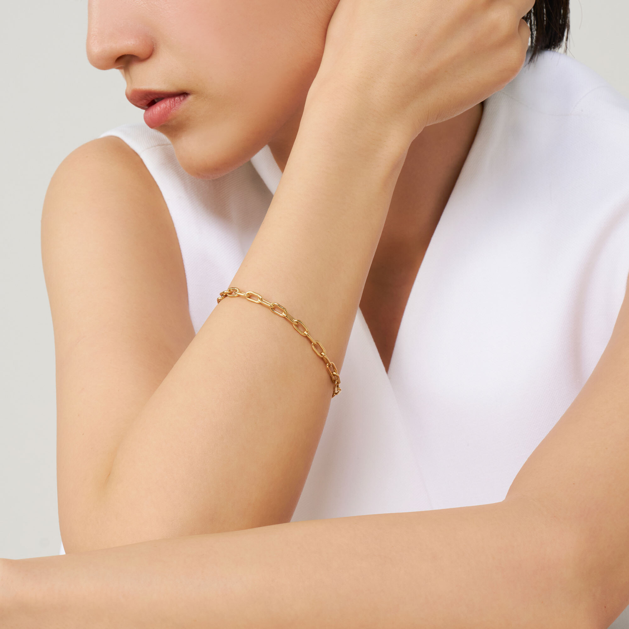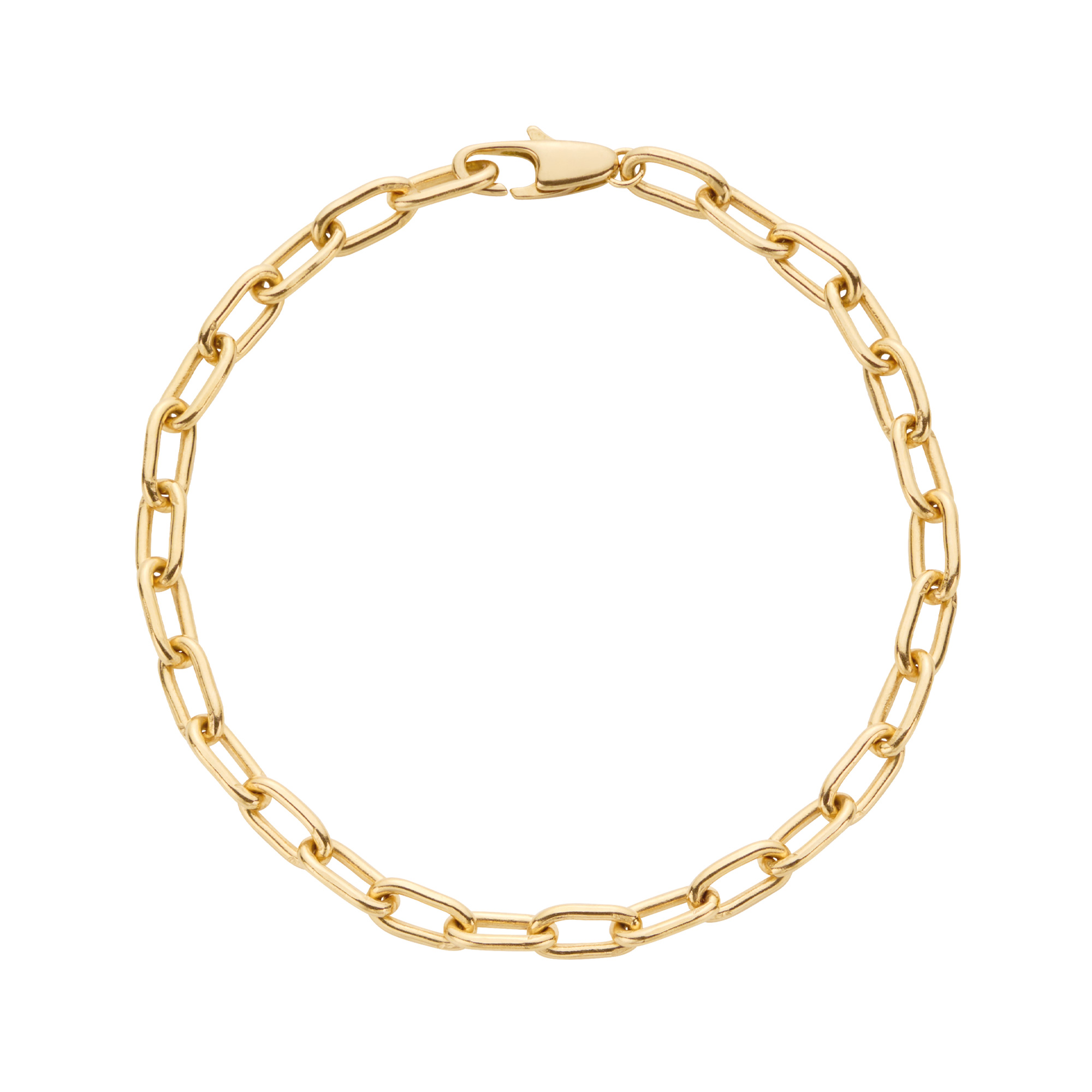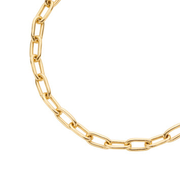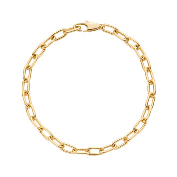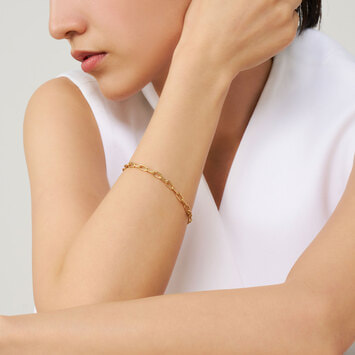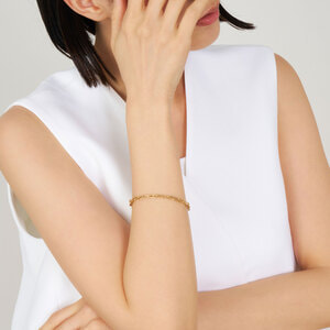 イエローゴールドの光沢を感じさせるベーシックなケーブルチェーンブレスレットは、普遍的な存在感でいつの時代も重宝します。