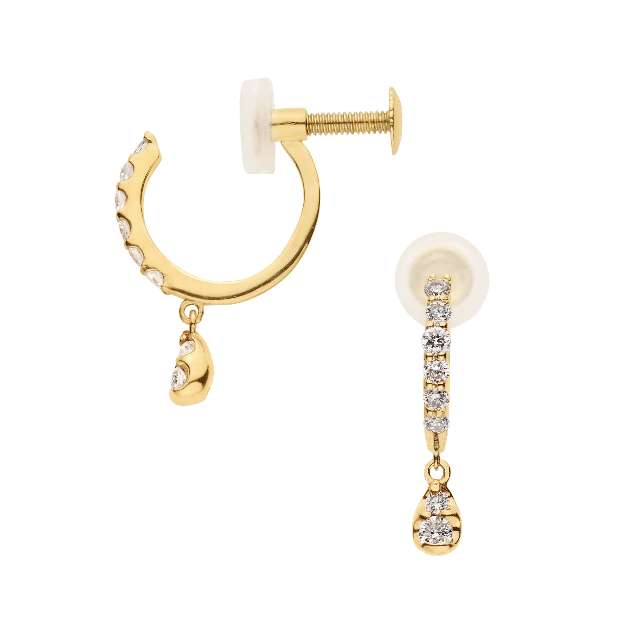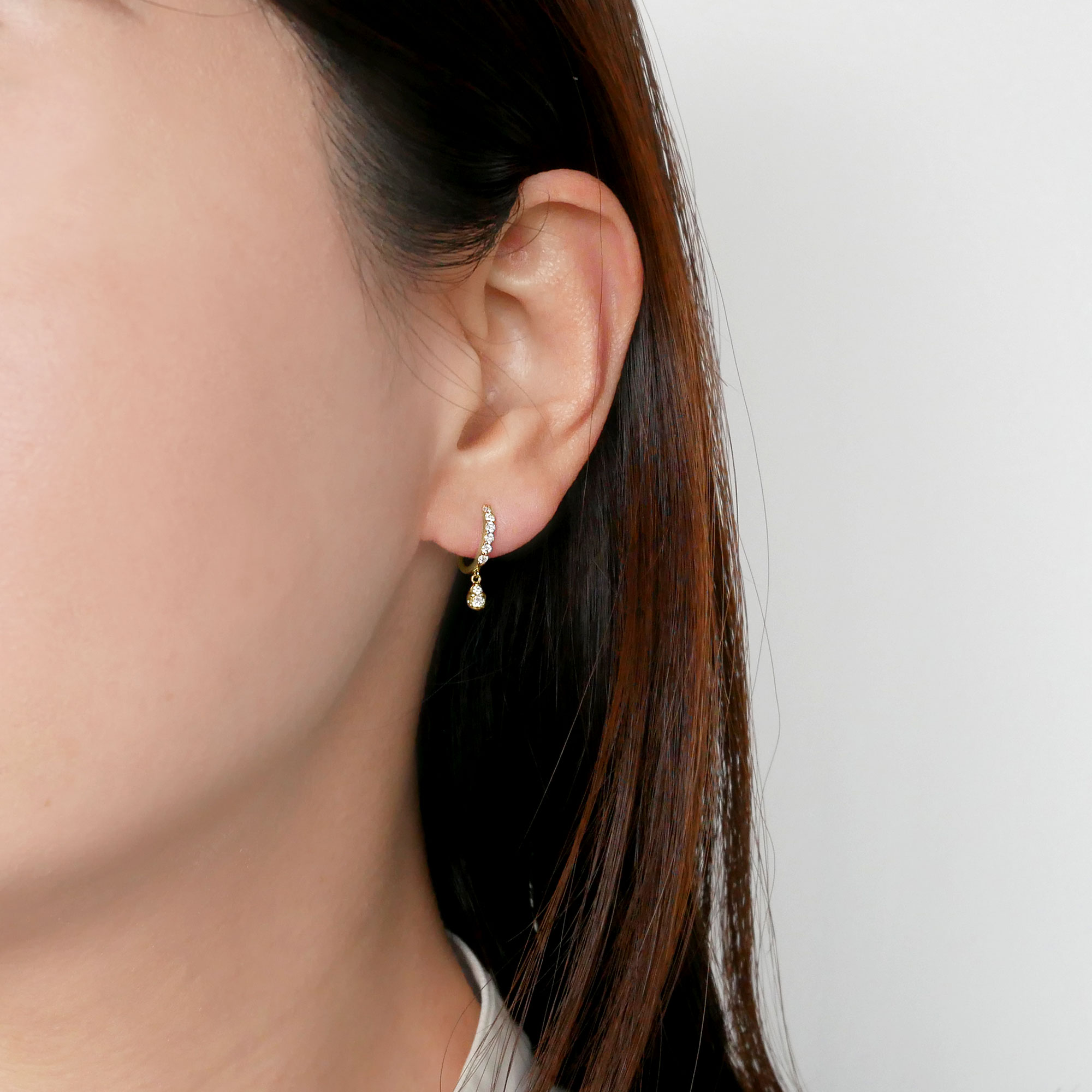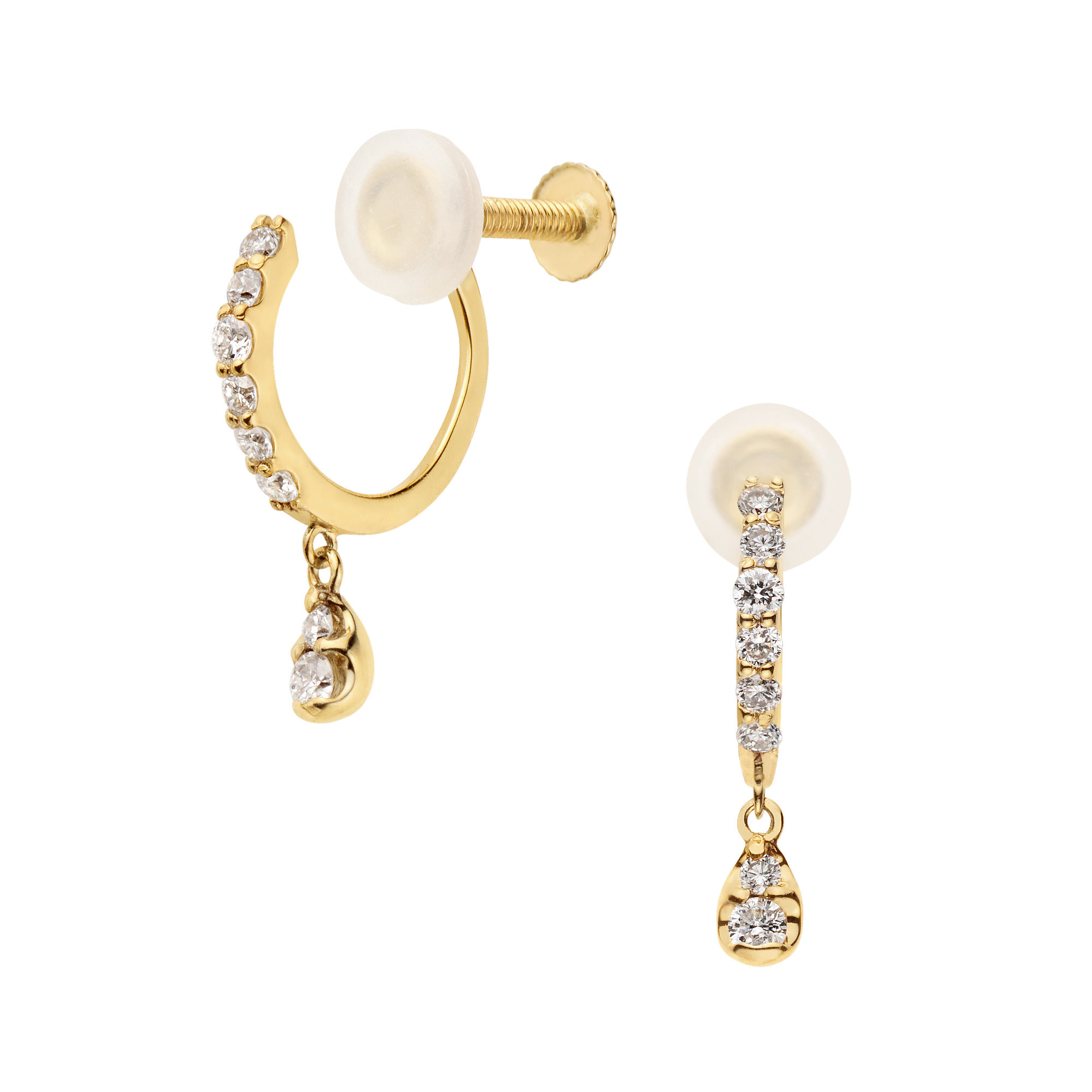 イエローゴールドとダイヤモンドで描いたフープからこぼれるように光のしずくが揺れて輝くイヤリング。