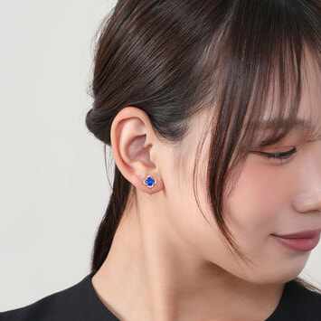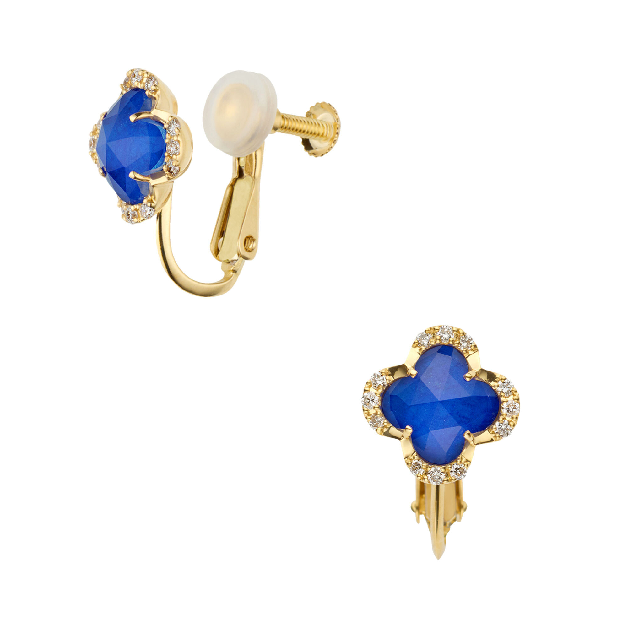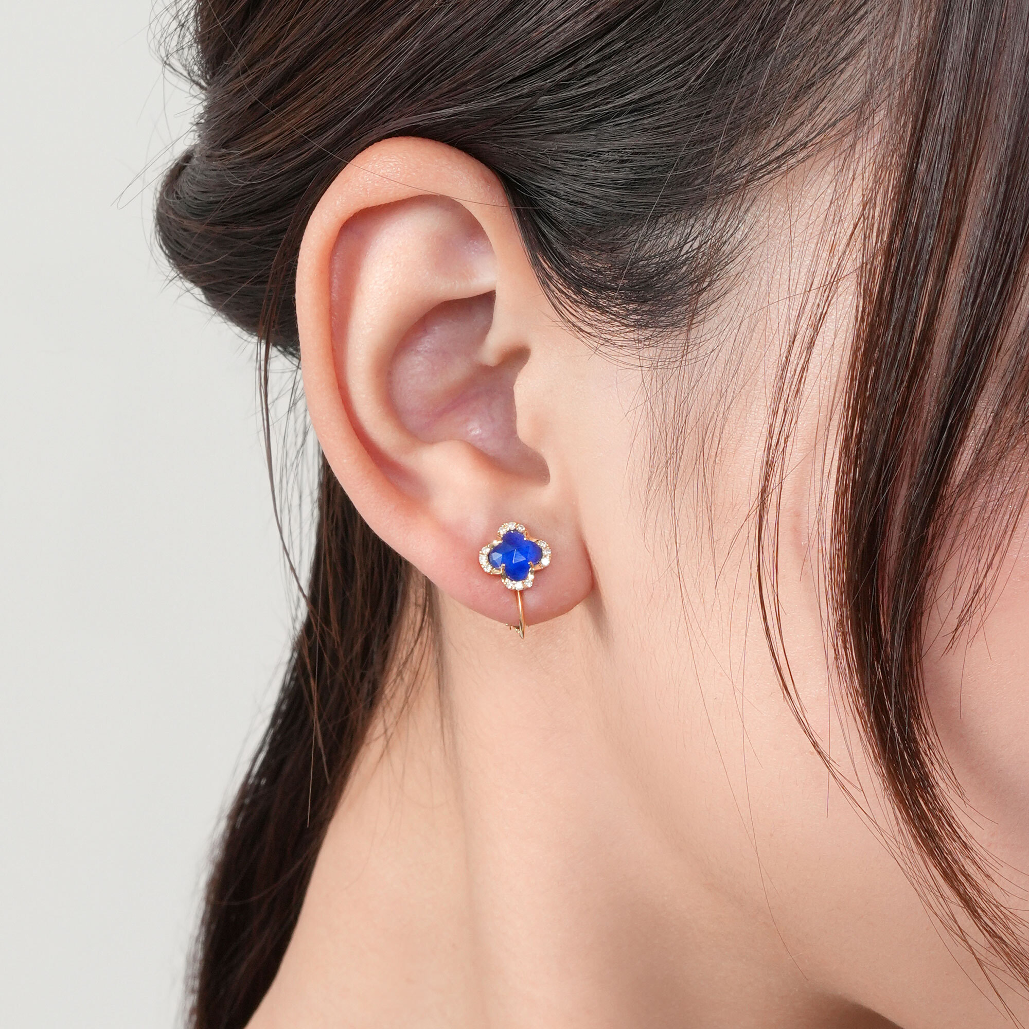ラピスラズリとブルートパーズを組み合わせた色鮮やかなカラーリングで、クローバーを可愛らしく描いたイヤリング。