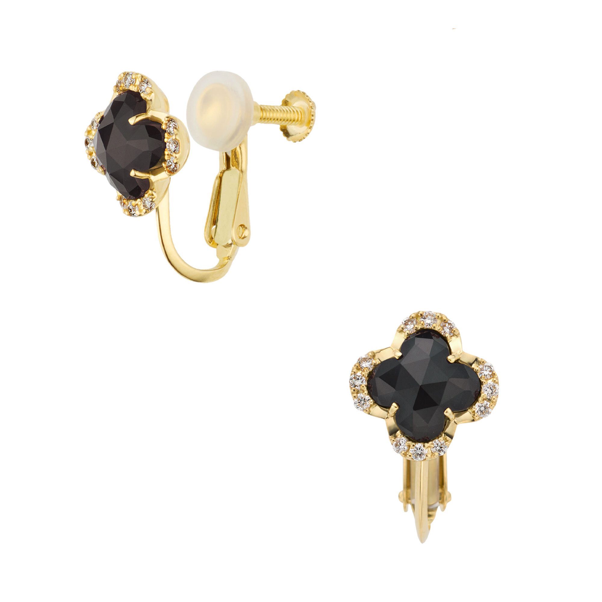 艶めくイエローゴールドにシックな印象のブラックカルセドニーを大人っぽく組み合わせたイヤリング。