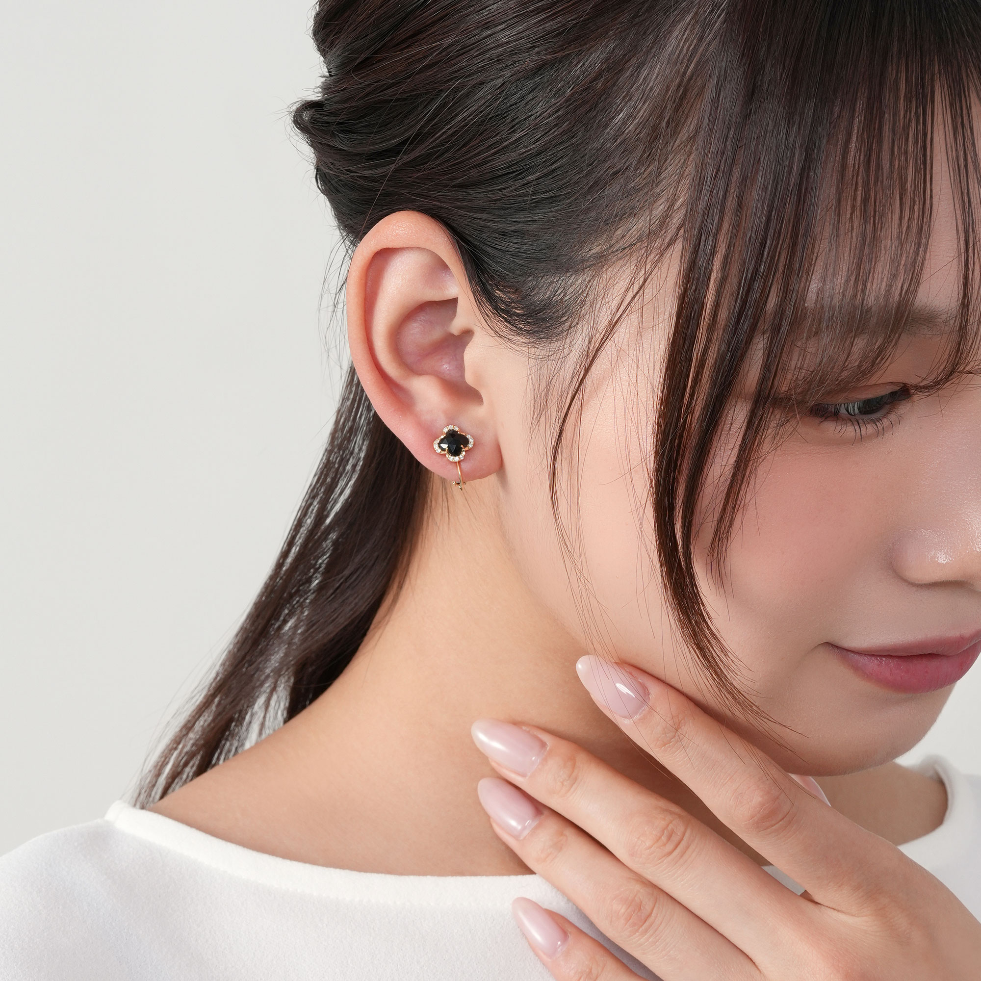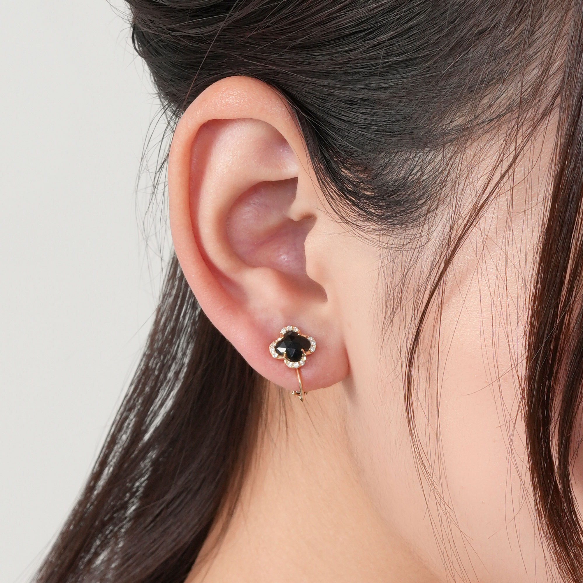 ブラックカルセドニーに透明な艶がプラスされ、愛らしさの中にも横顔にきりっとした大人の華やかさをプラスします。