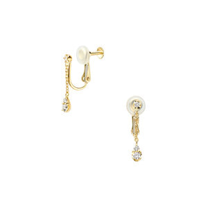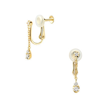 ダイヤモンドを2粒寄せてしずく型のモチーフに仕上げたイヤリング。揺れ感の楽しめるチェーンタイプで、動くたびに横顔に輝きが広がります。