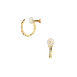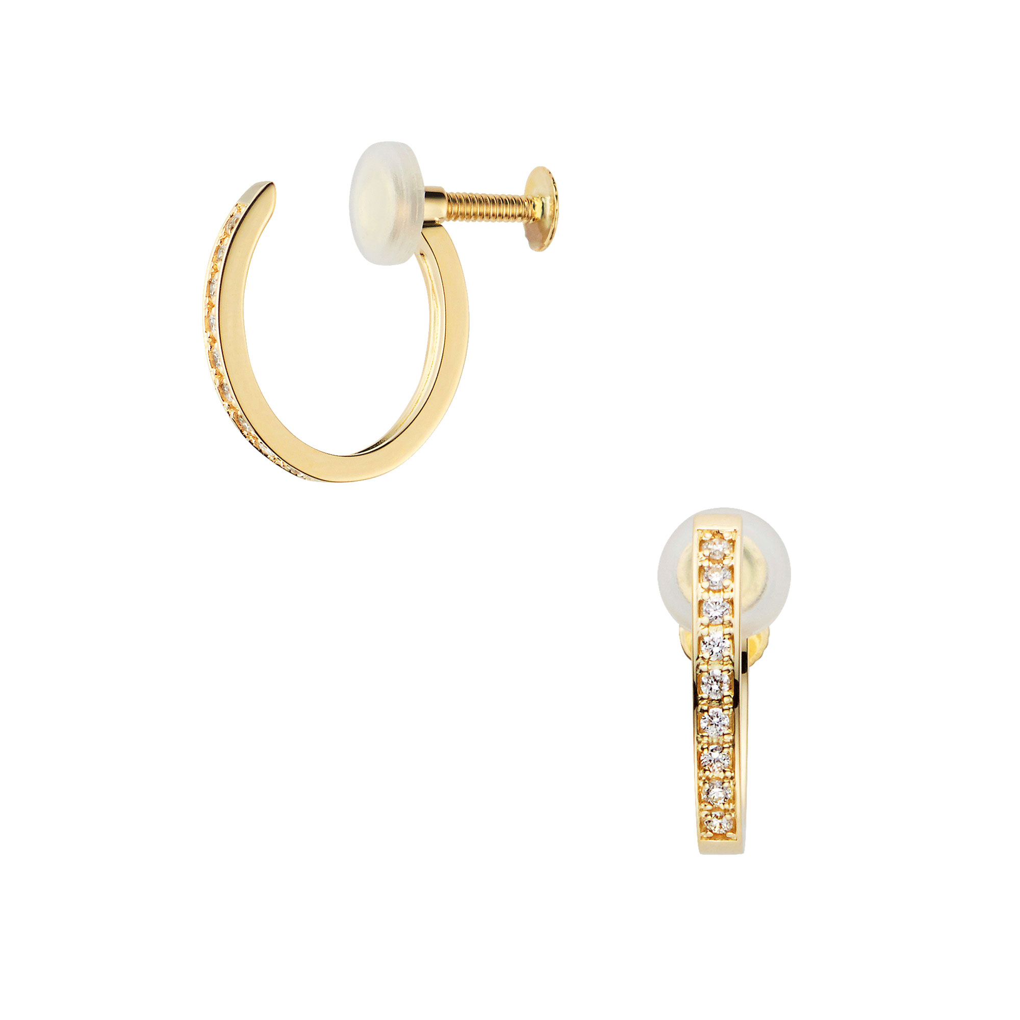 光沢感が美しい、洗練された印象のイエローゴールドのフープ部分にはきらめくダイヤモンドを敷き詰めるようにしてセッティング。耳元に大人の華やぎをプラスします。