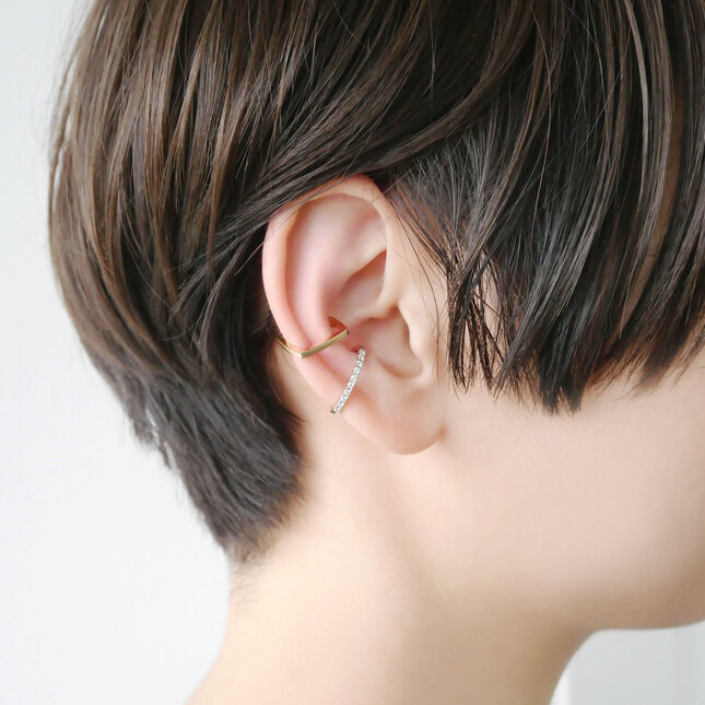 あえてフォルムや色の違うイヤーカフを重ねたり、お手持ちのピアスとのコーディネートもおすすめ。
