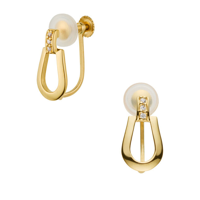 定番の馬蹄モチーフを、エレガントなムードにアレンジしたイヤリング。