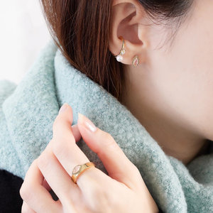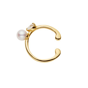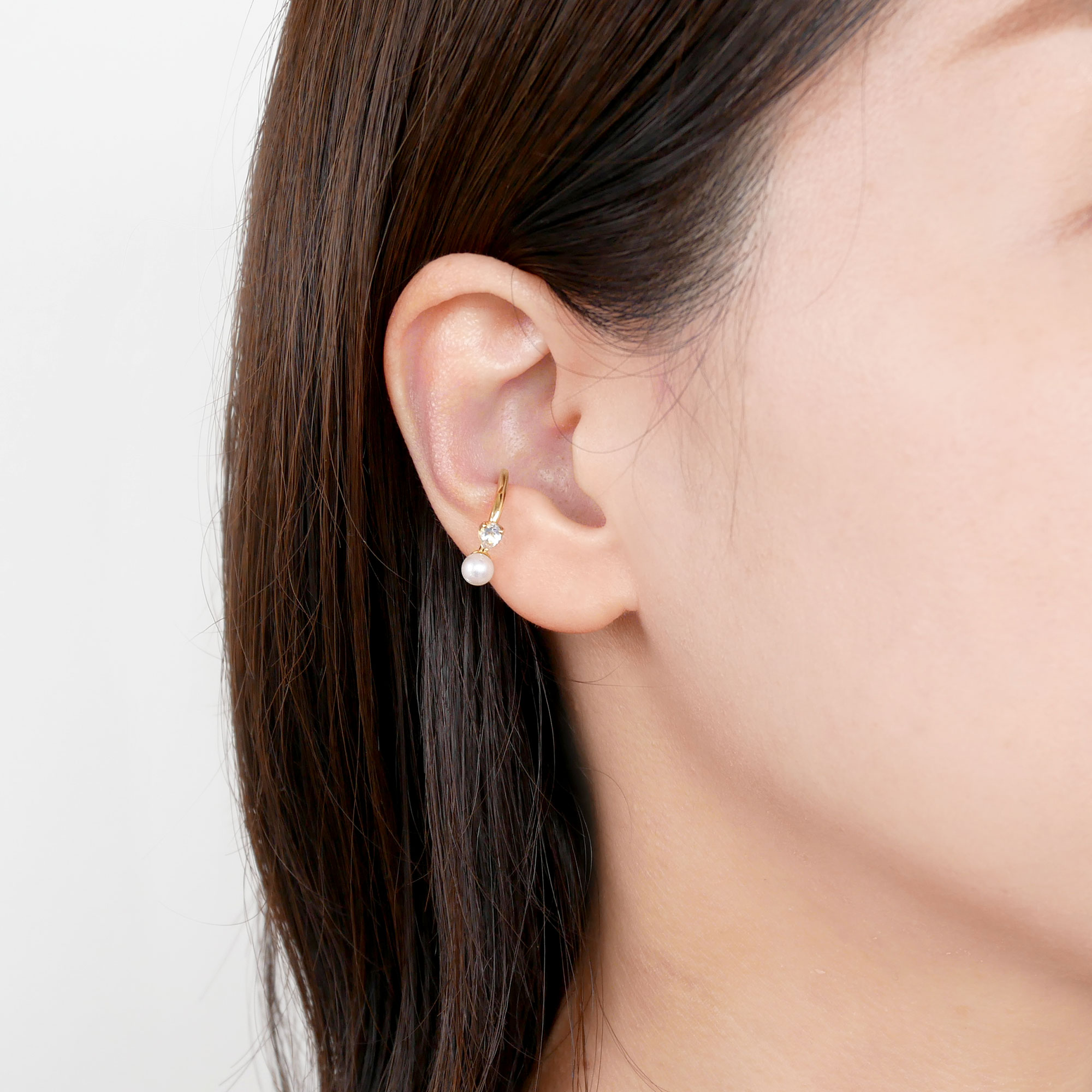 アコヤパールとフェルスパーが寄り添うイヤーカフ。