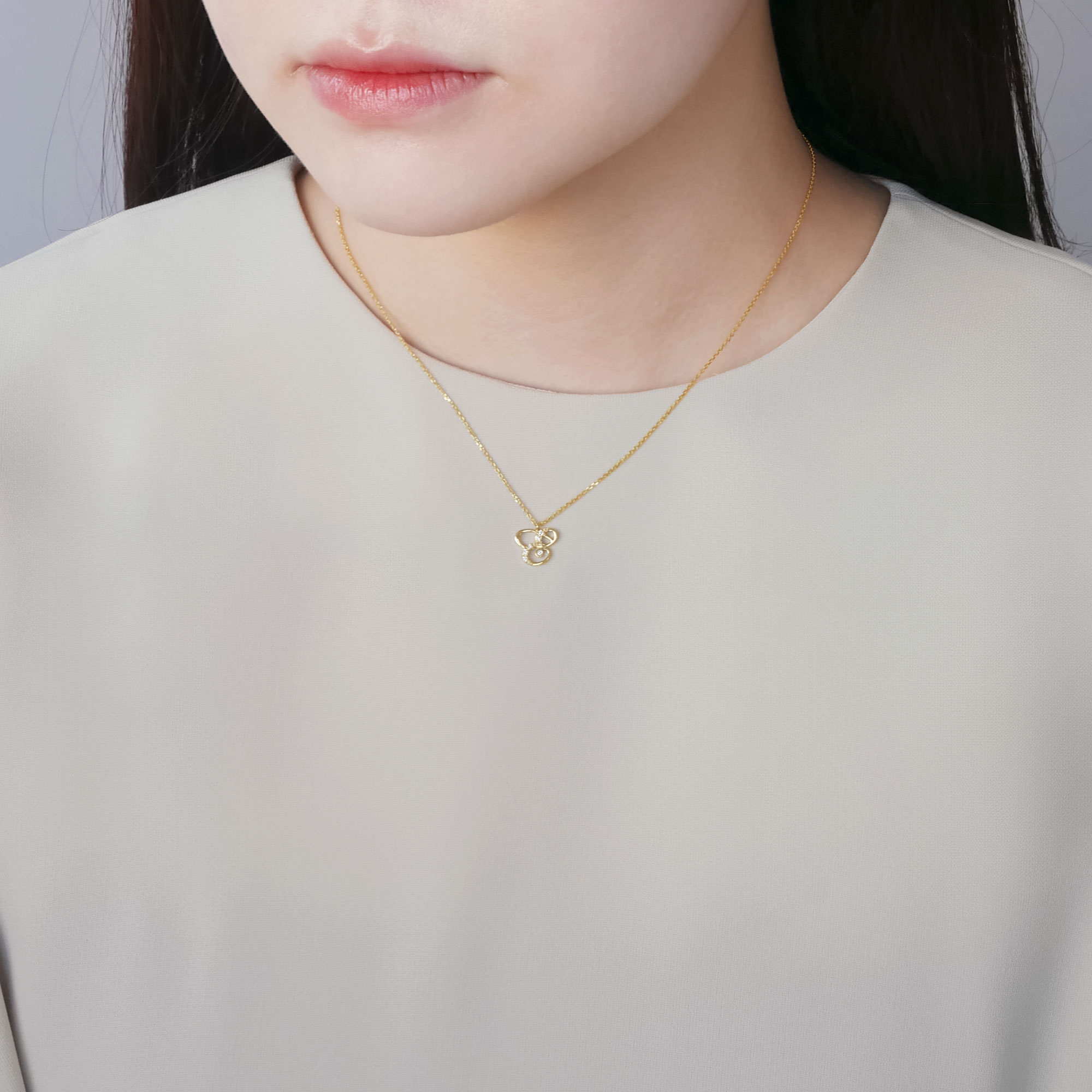 羽ペンのレタリングのような、華やかでエレガントな印象のイニシャルネックレス。