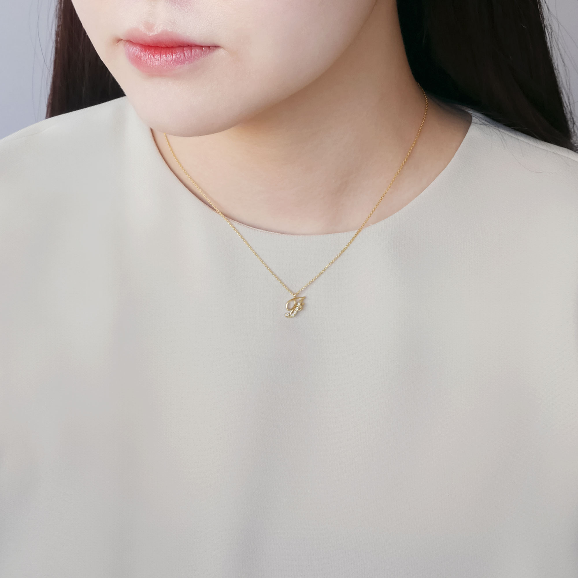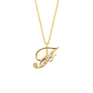 羽ペンのレタリングのような、華やかでエレガントな印象のイニシャルネックレス。