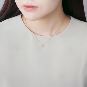 羽ペンのレタリングのような、華やかでエレガントな印象のイニシャルネックレス。