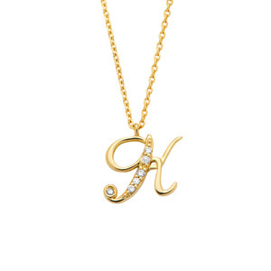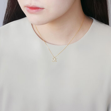 羽ペンのレタリングのような、華やかでエレガントな印象のイニシャルネックレス。