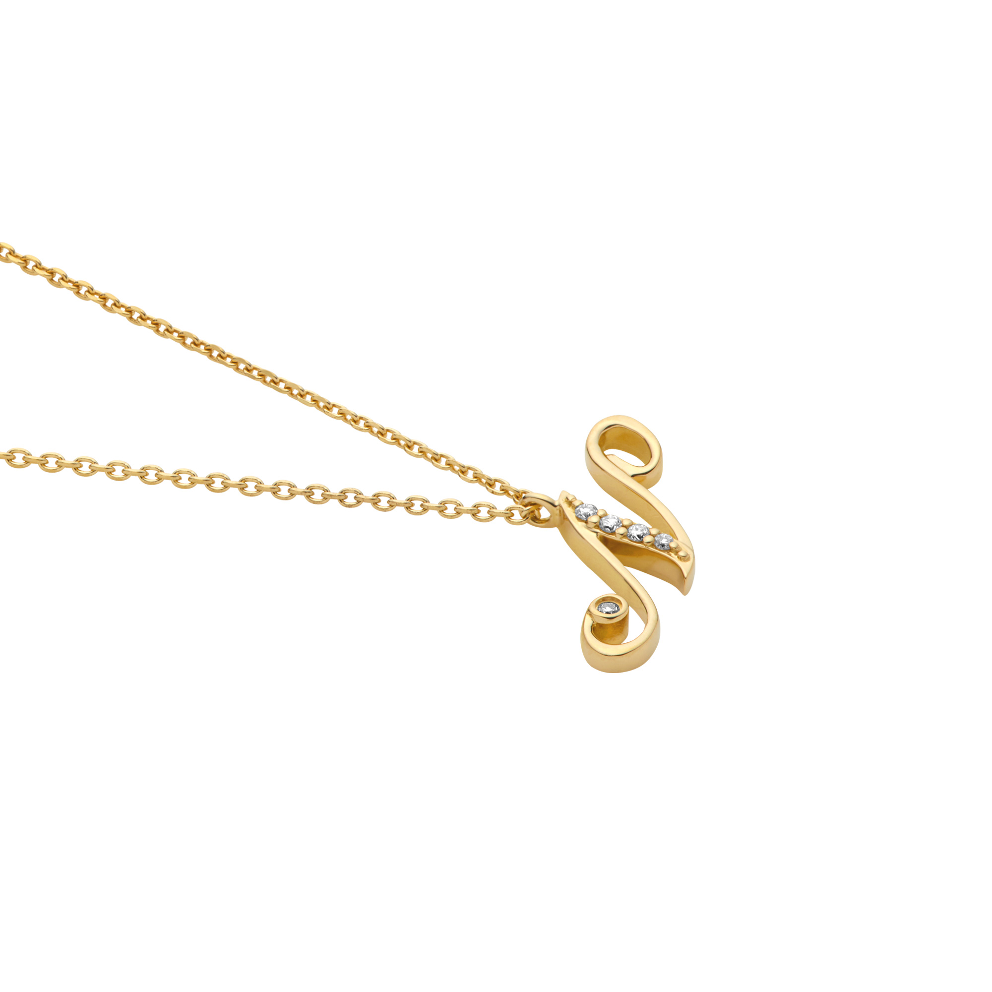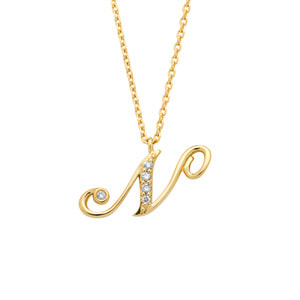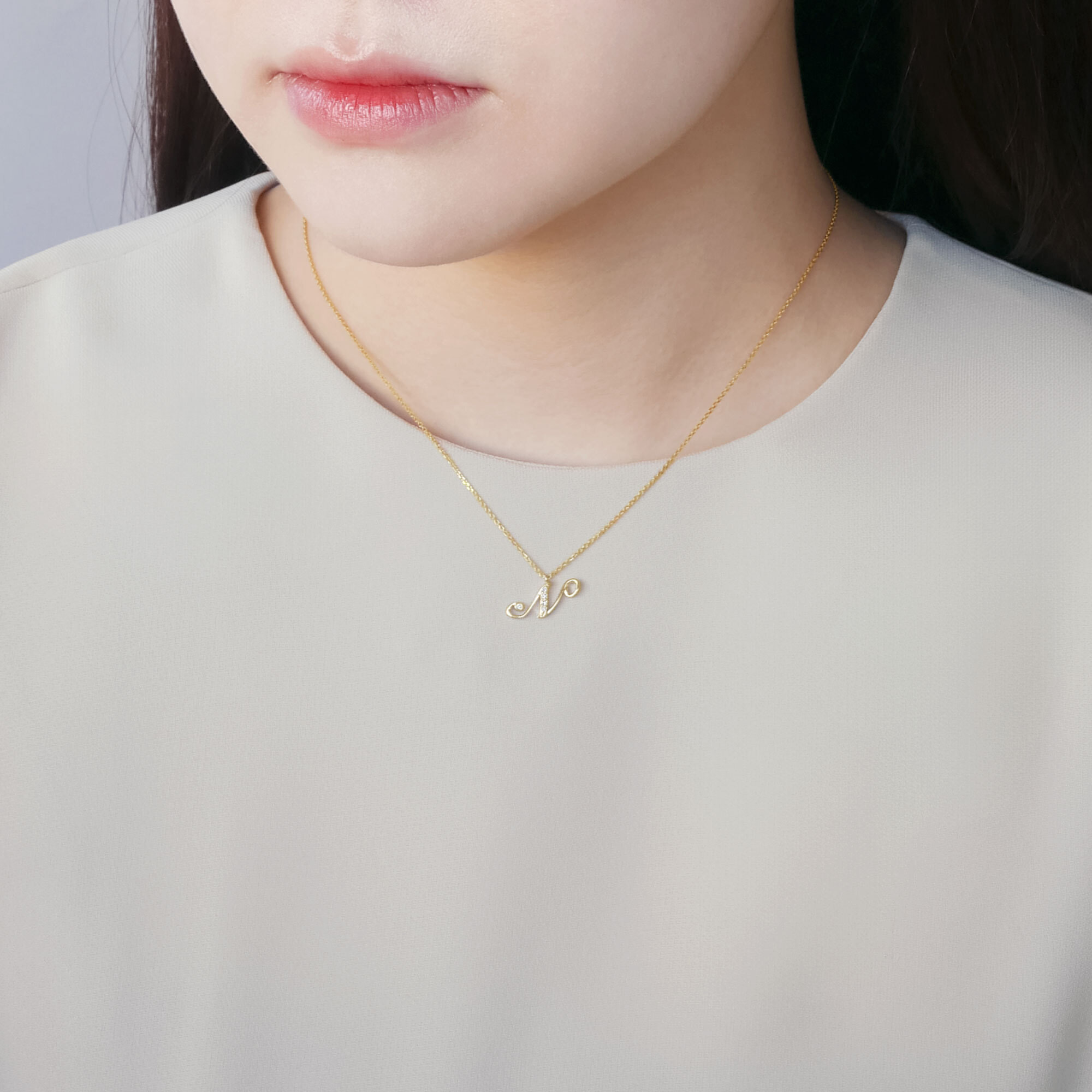 羽ペンのレタリングのような、華やかでエレガントな印象のイニシャルネックレス。