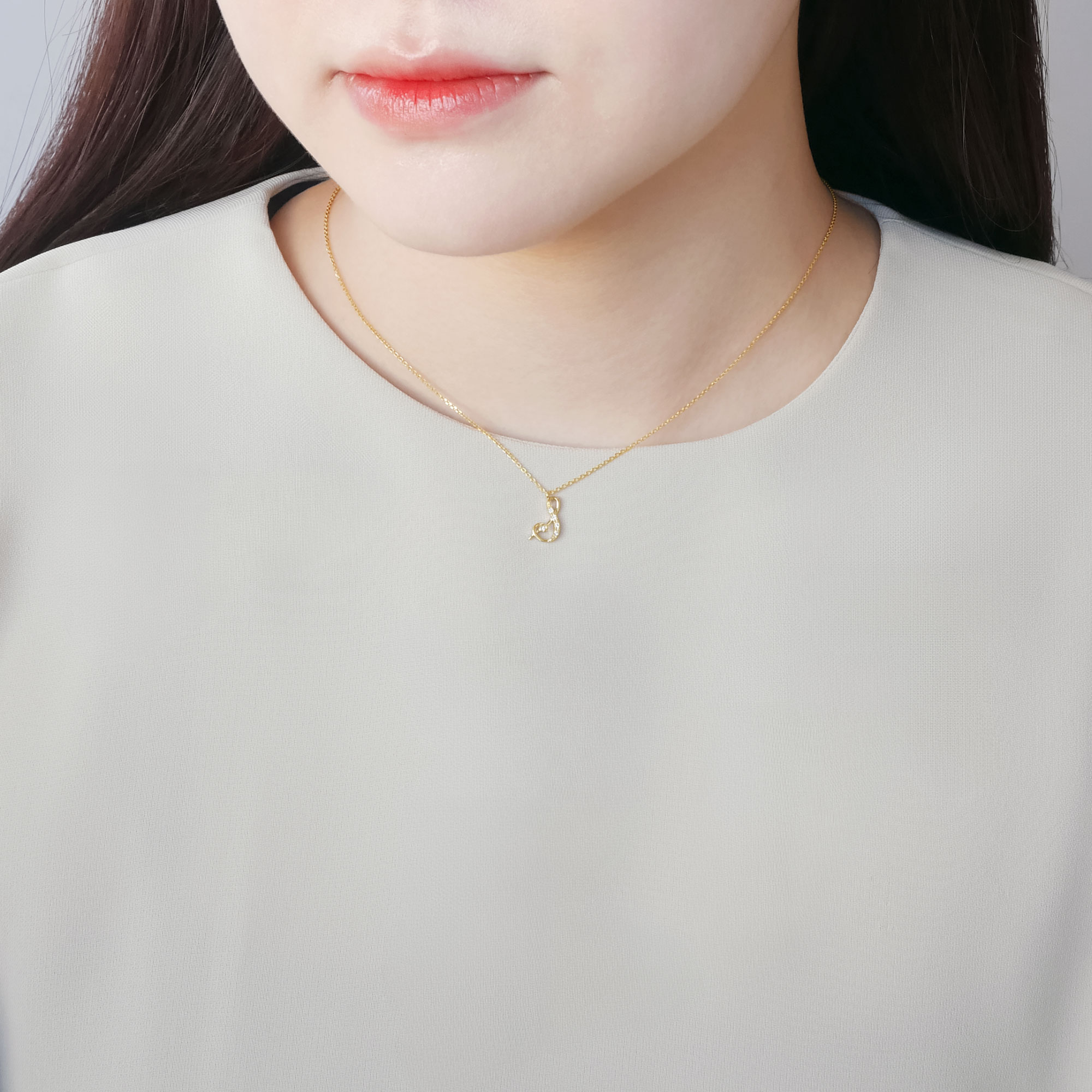 羽ペンのレタリングのような、華やかでエレガントな印象のイニシャルネックレス。