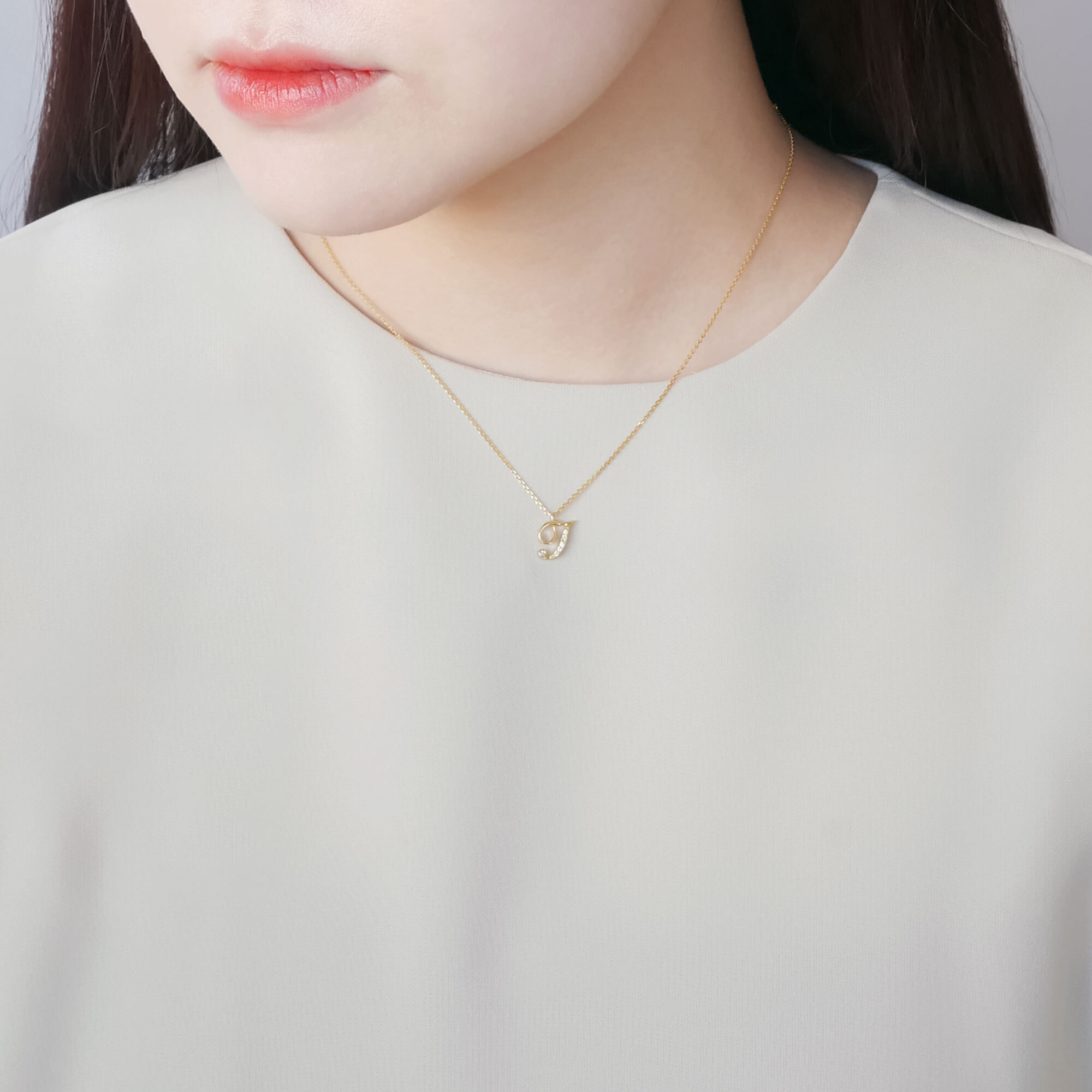 羽ペンのレタリングのような、華やかでエレガントな印象のイニシャルネックレス。