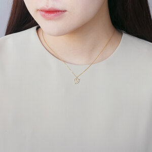 羽ペンのレタリングのような、華やかでエレガントな印象のイニシャルネックレス。