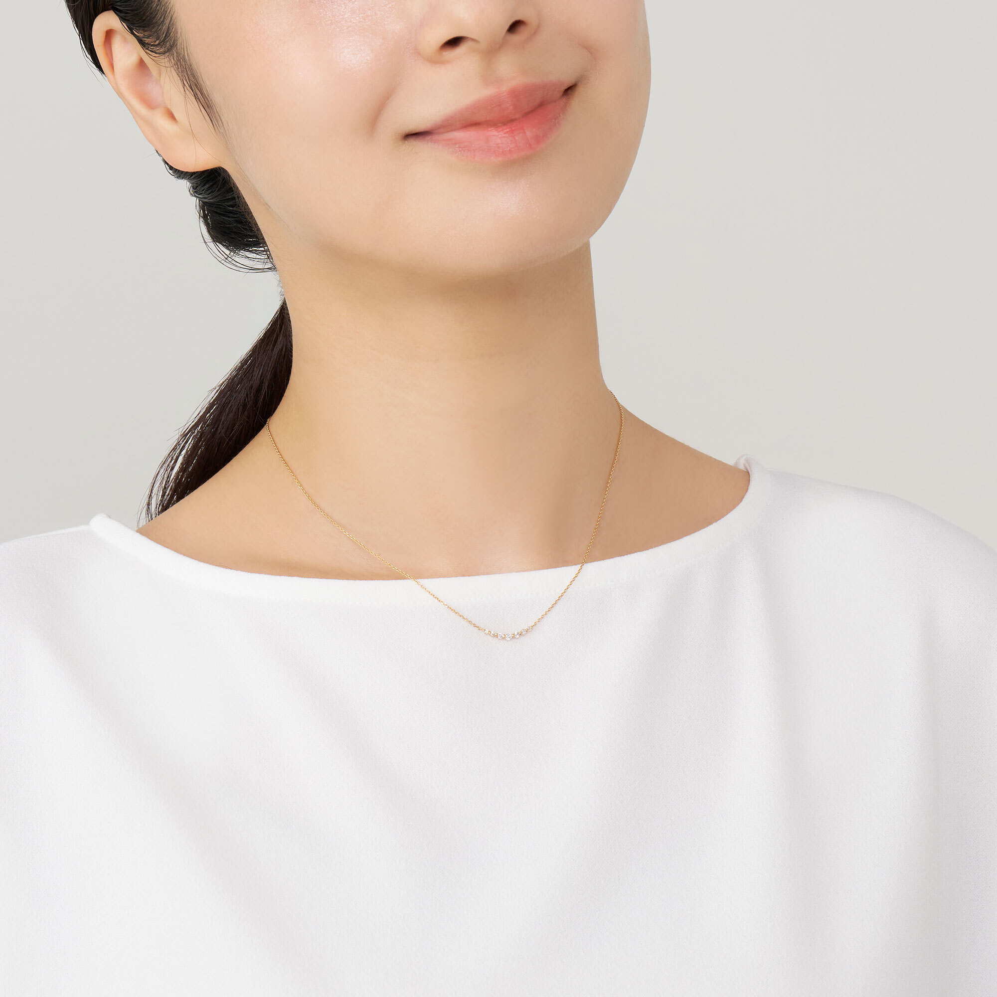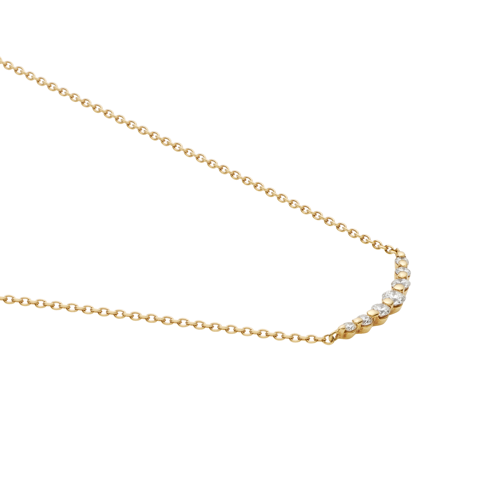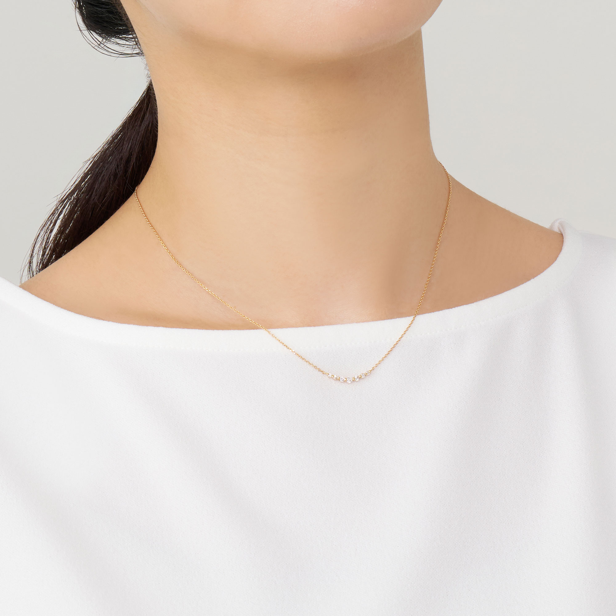 緩やかなU字を描くように、ダイヤモンドのナチュラルな輝きが際立つ人気のエレガントなネックレス。