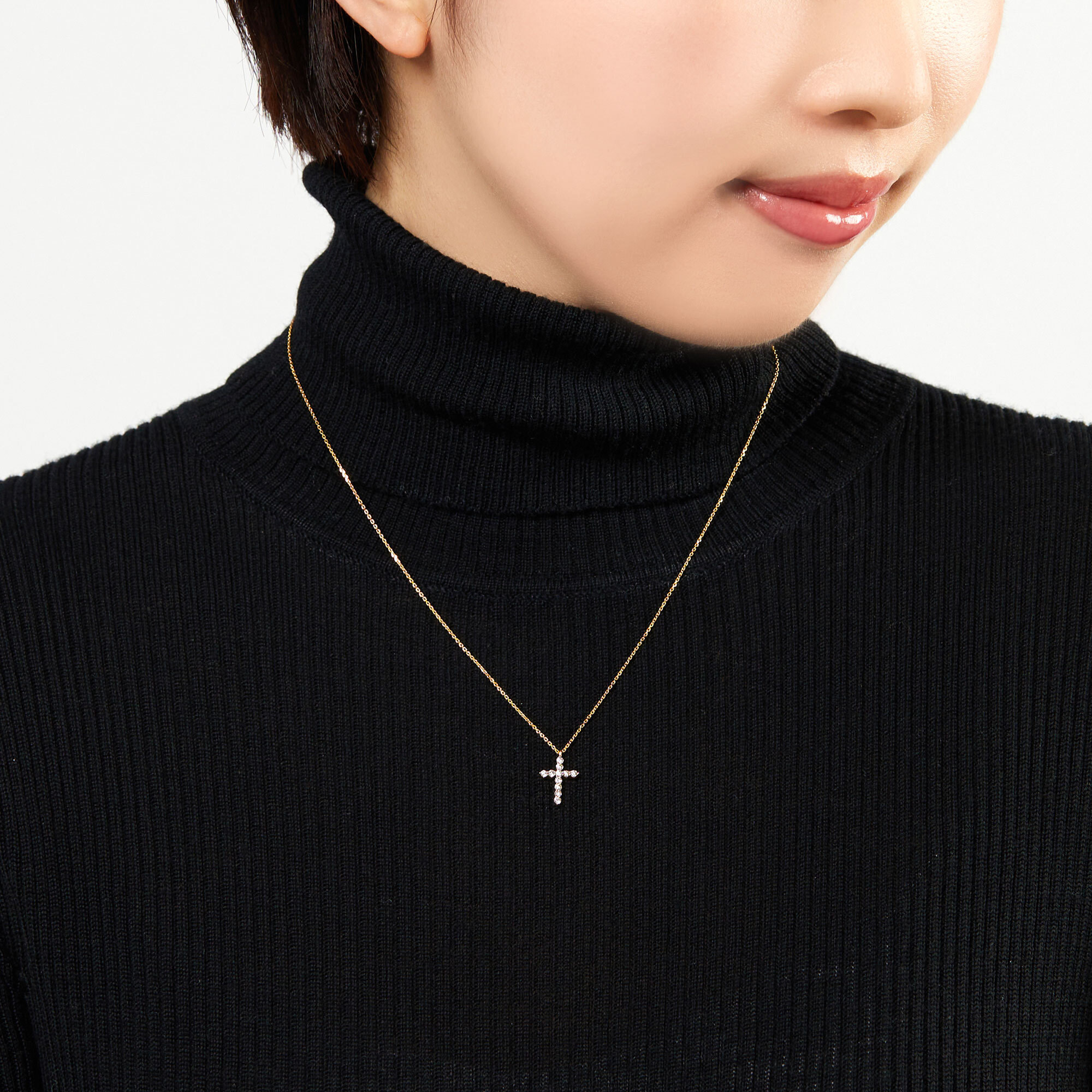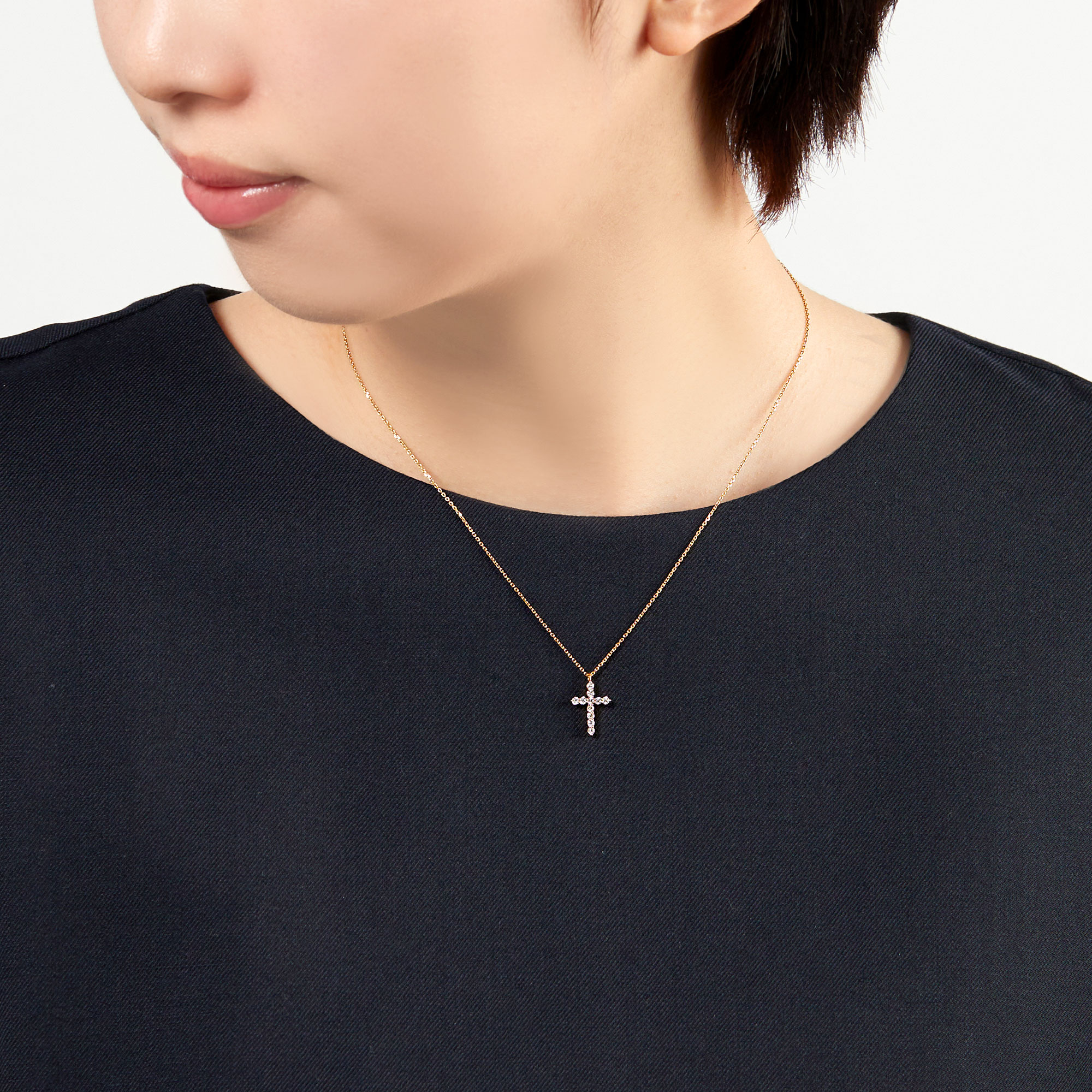 シンプルなコーデにさらっと着けたい、定番のクロスモチーフネックレス。