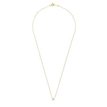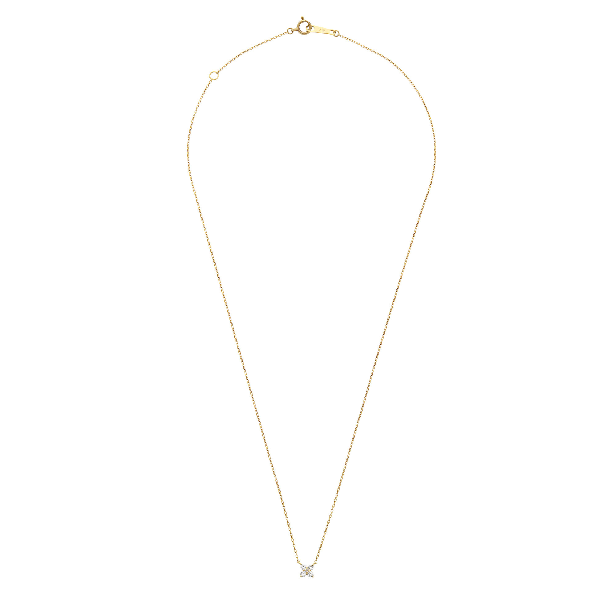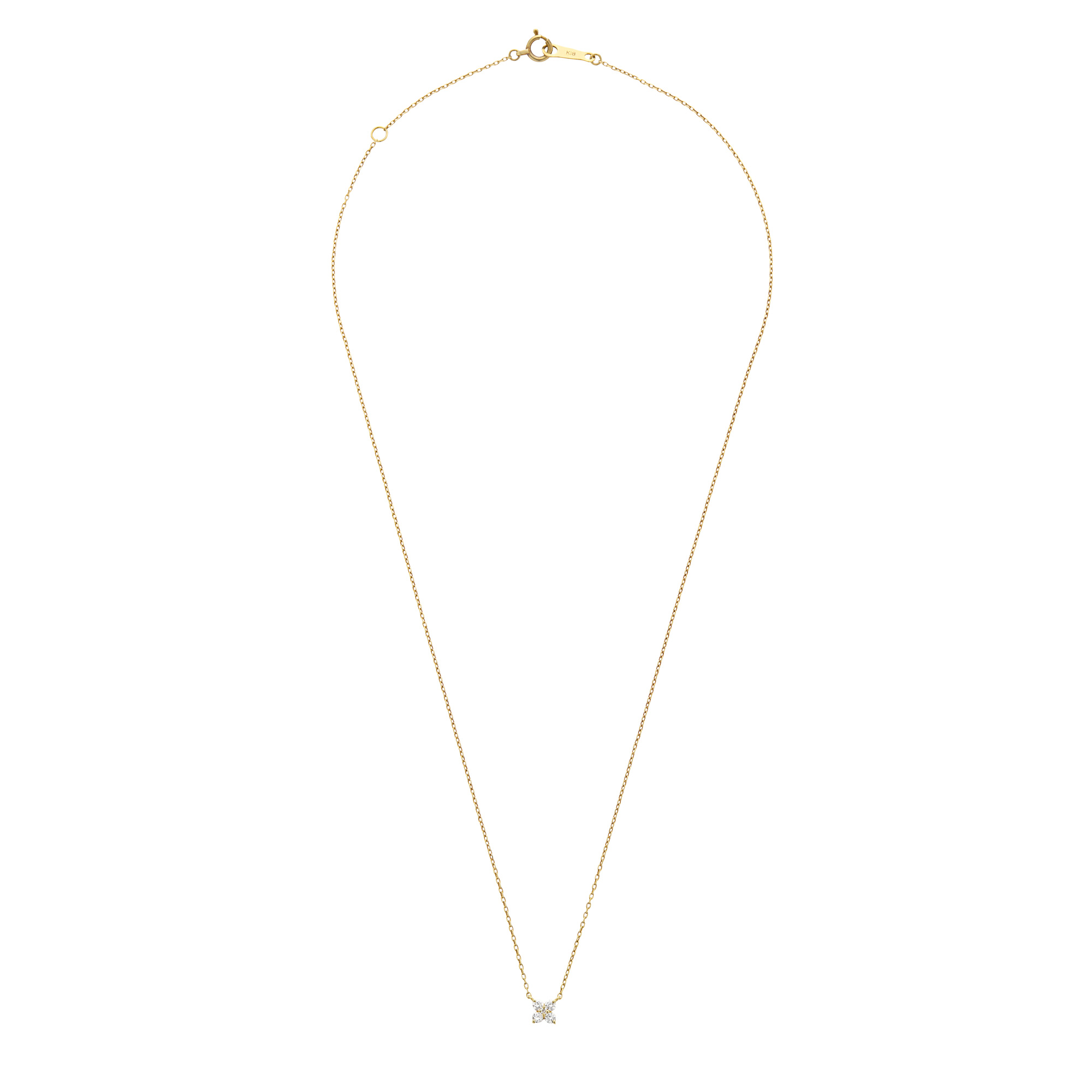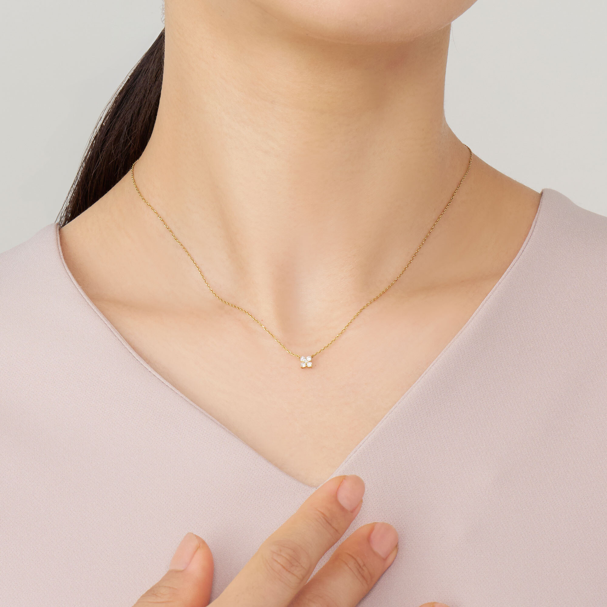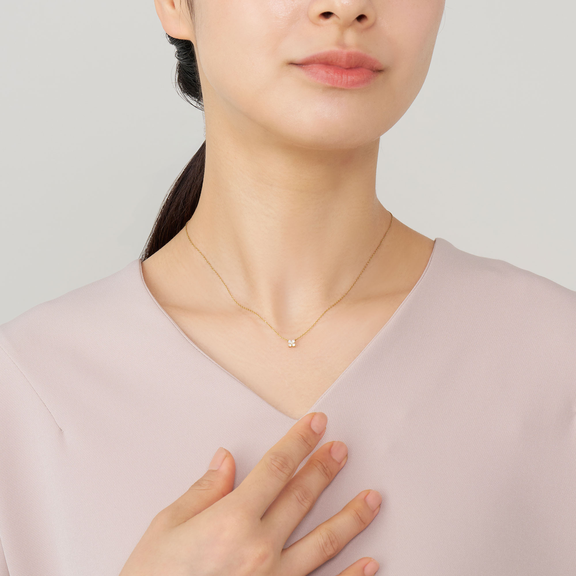 モチーフのフォルムを引き立てる両吊りのアズキチェーンで、ダイヤモンドの輝きのみがぐっと際立つ満足度の高いネックレスです。