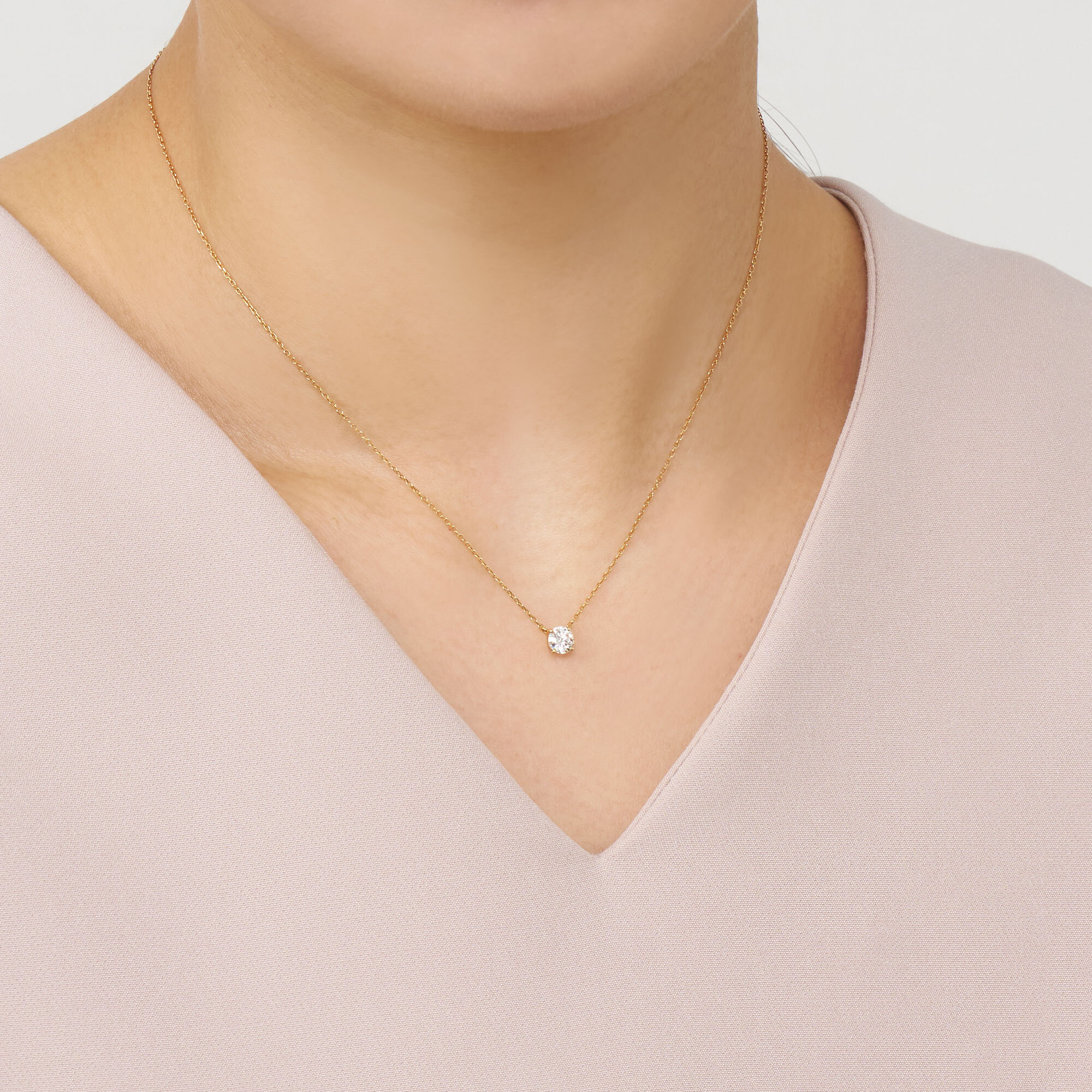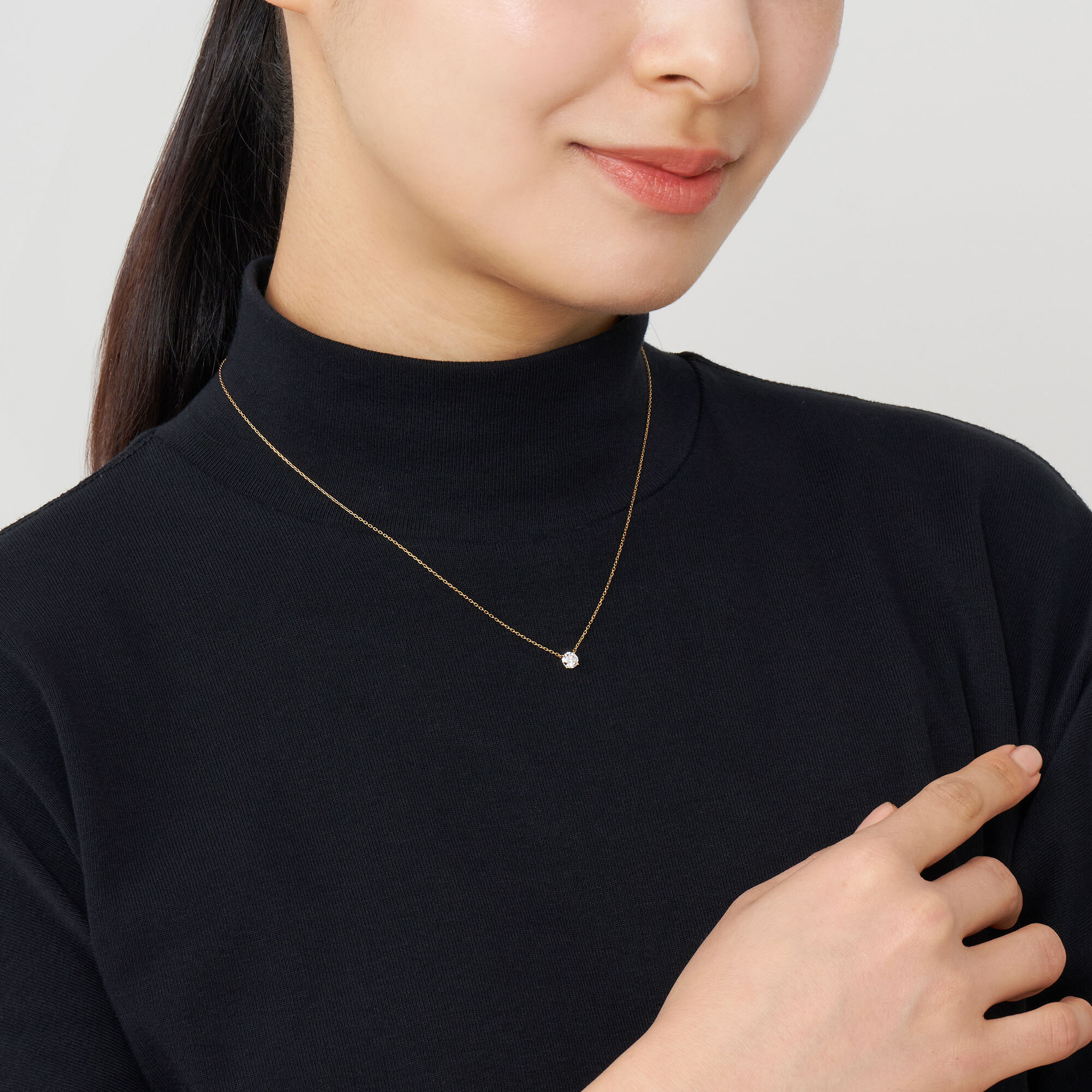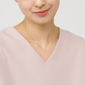 チェーンはダイヤモンドだけが胸元に可憐に浮かび上がる、華奢で控えめなアズキチェーンを使用。