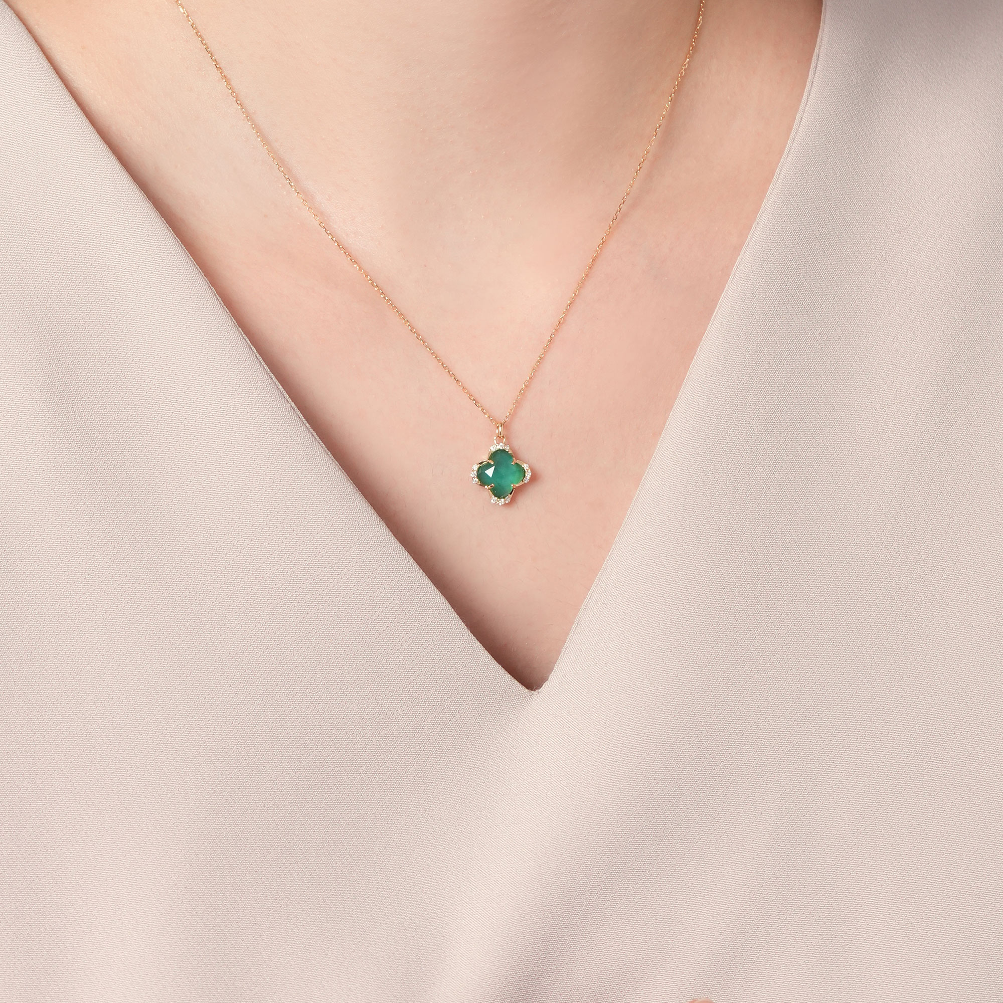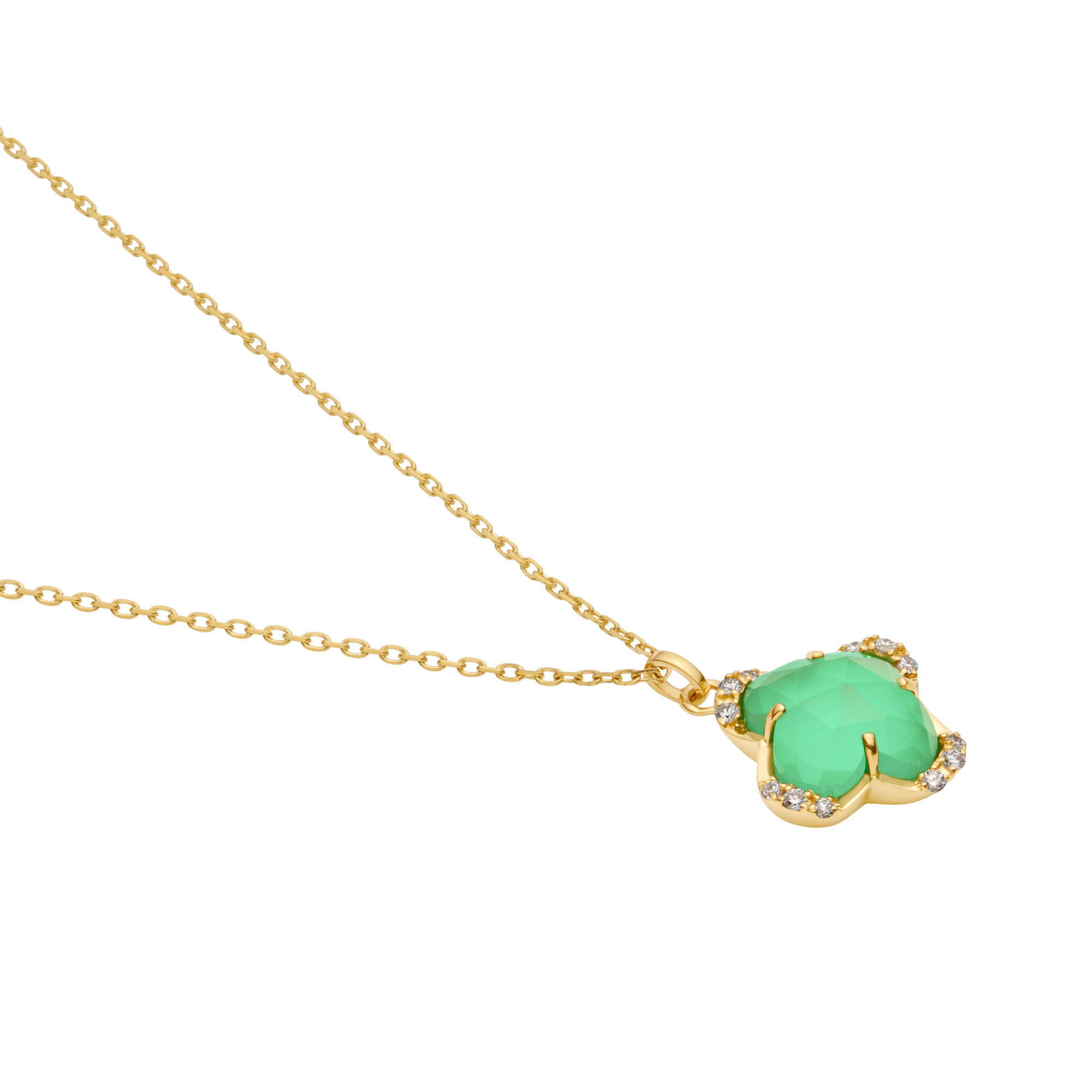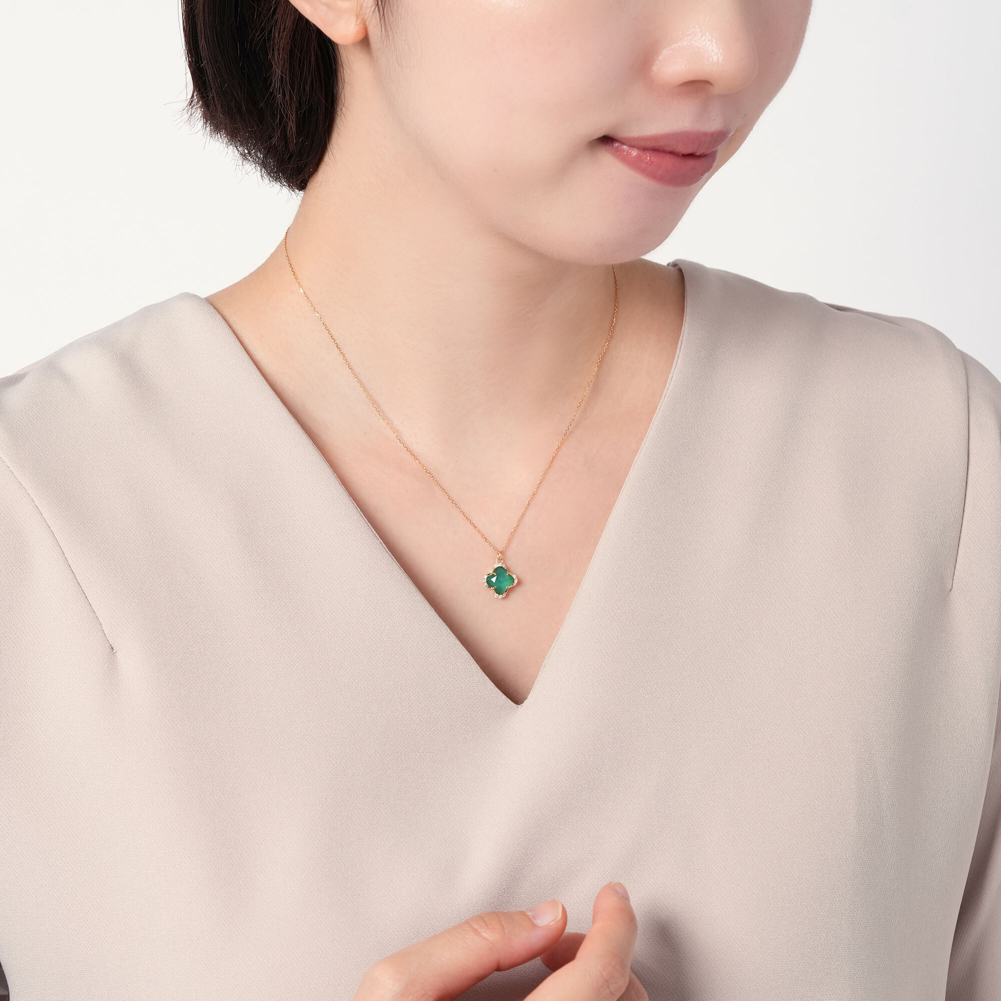 グリーンカルセドニーとクォーツを組み合わせた色鮮やかなカラーリングで、クローバーを可愛らしく描いたネックレス。