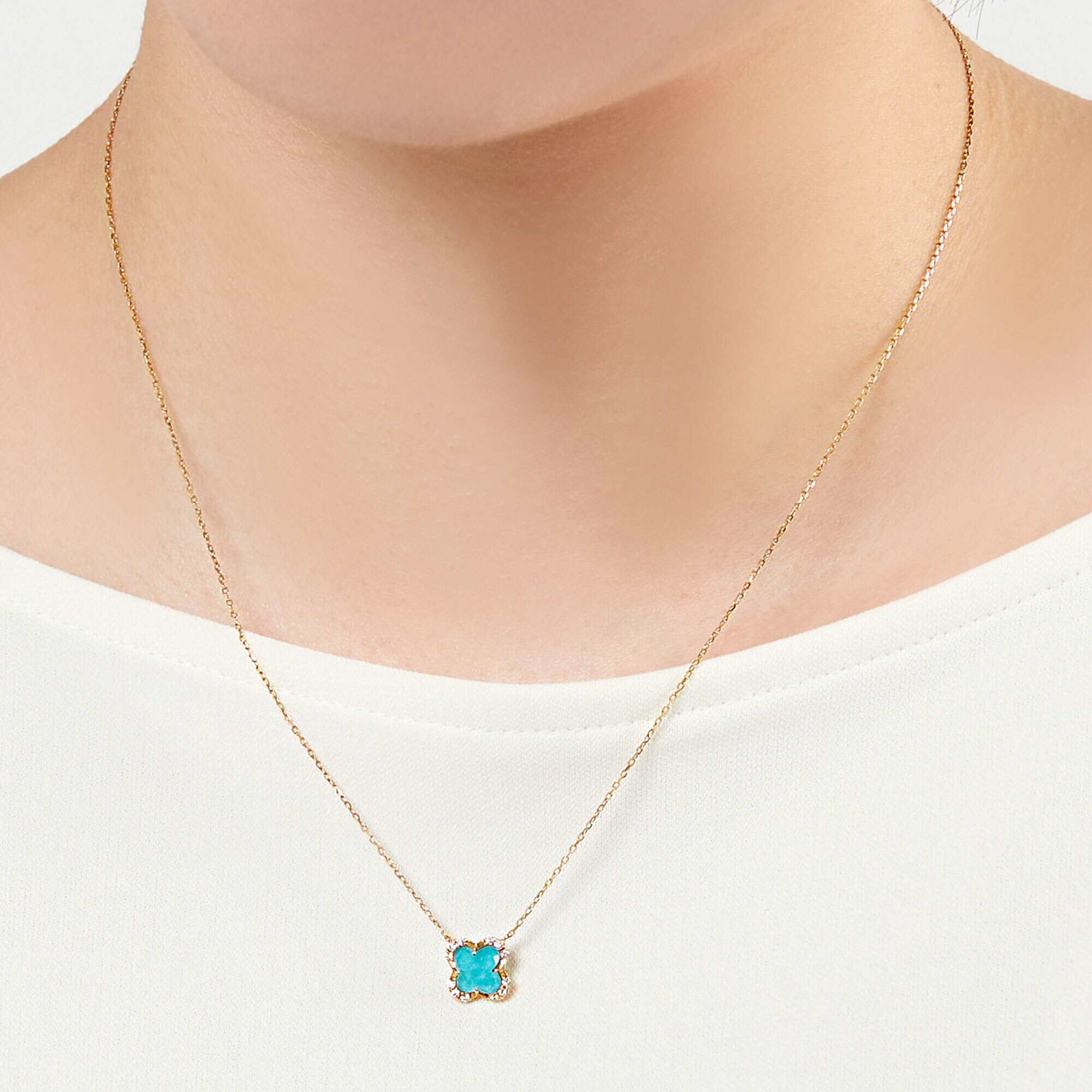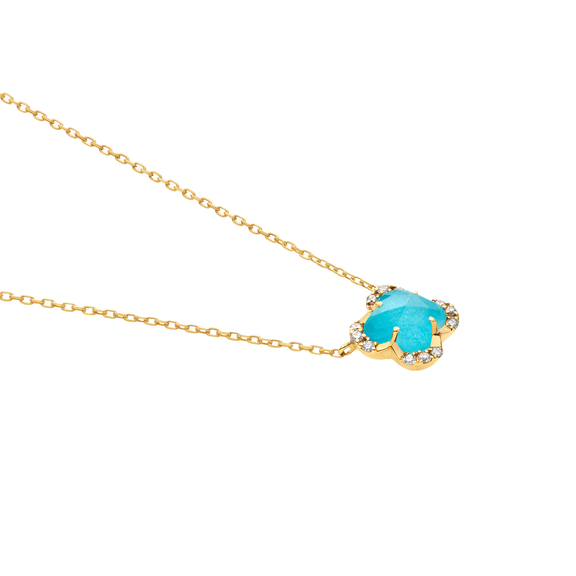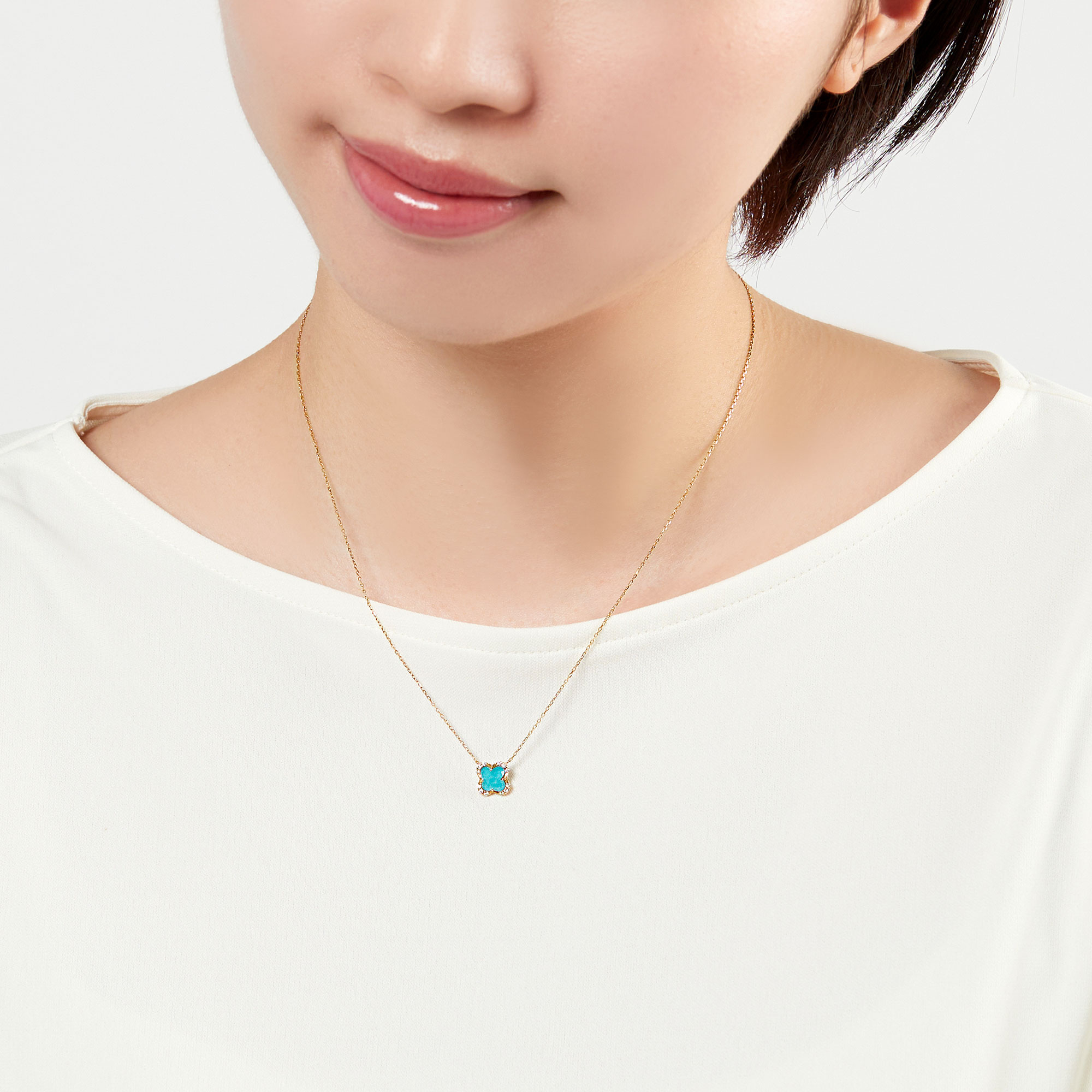 イエローゴールドに色鮮やかなターコイズとクォーツを組み合わせたネックレス。