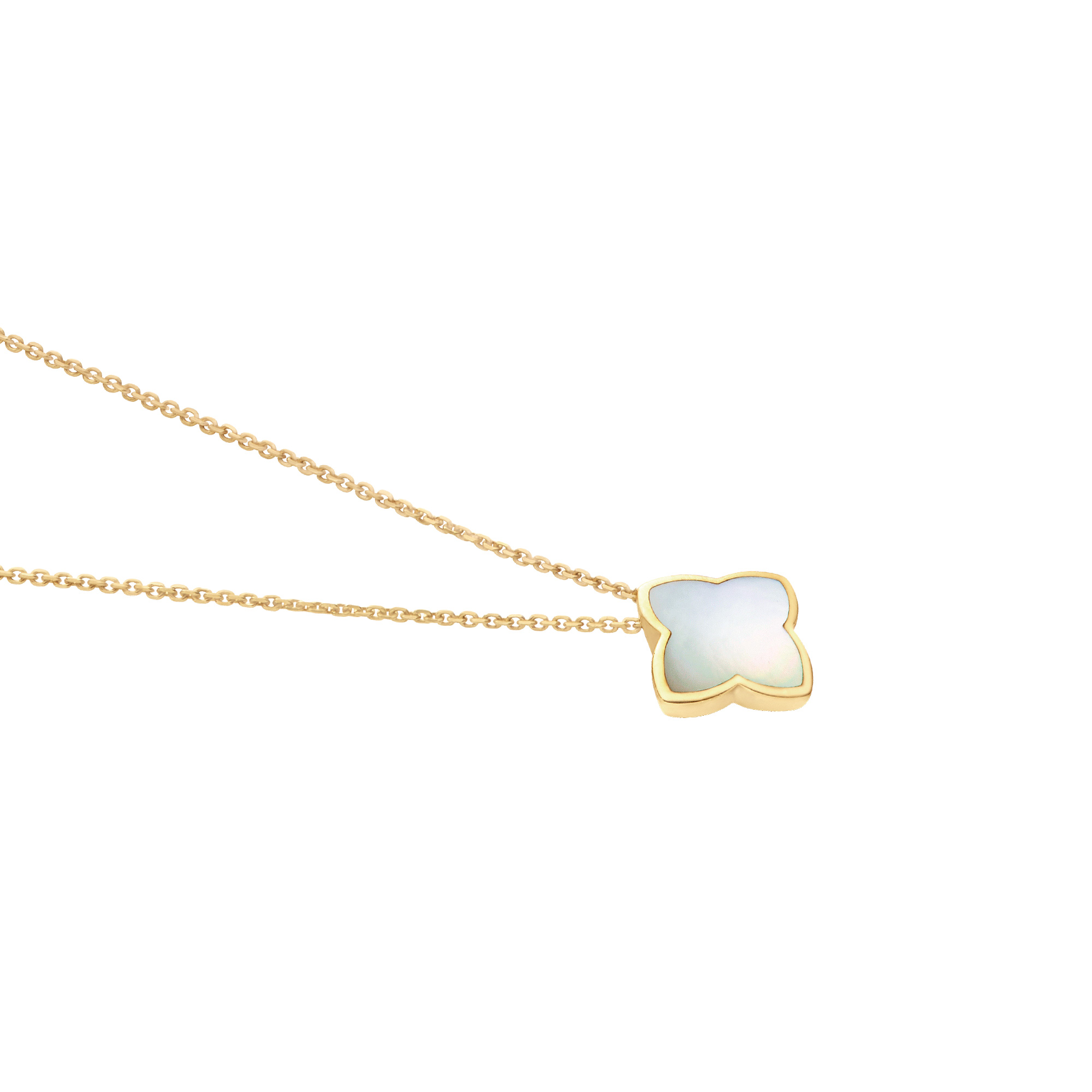 イエローゴールドのふちどりがシェルのシルエットをくっきり見せ、リッチ感をプラス。