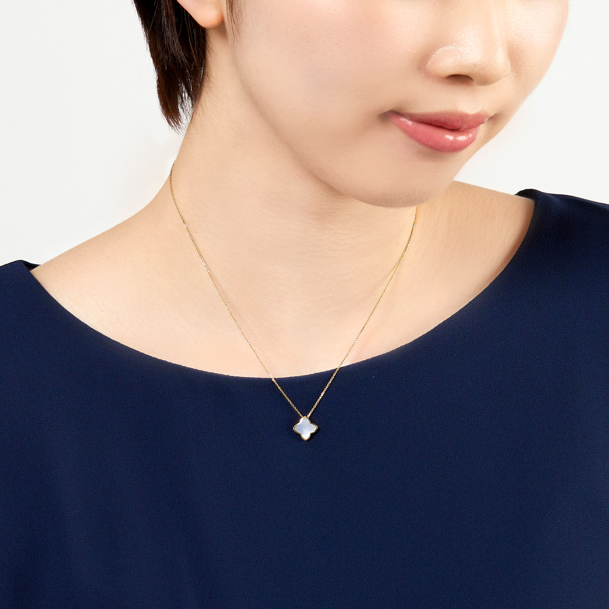 モチーフに直接チェーンを通しているため、すっきりとしたVラインで胸元をすっきり見せてくれます。