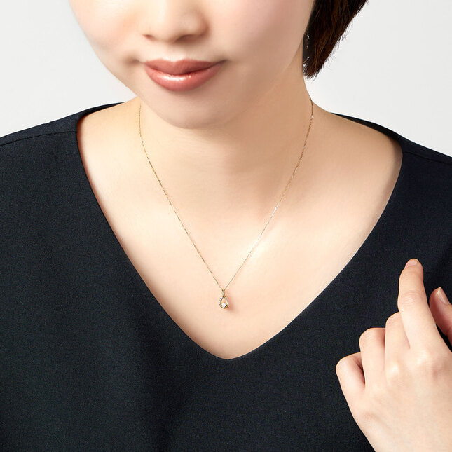 流れるような立体的なデザインに、無垢の象徴のダイヤモンドを配したネックレスは、プレゼントにもおすすめのアイテムです。