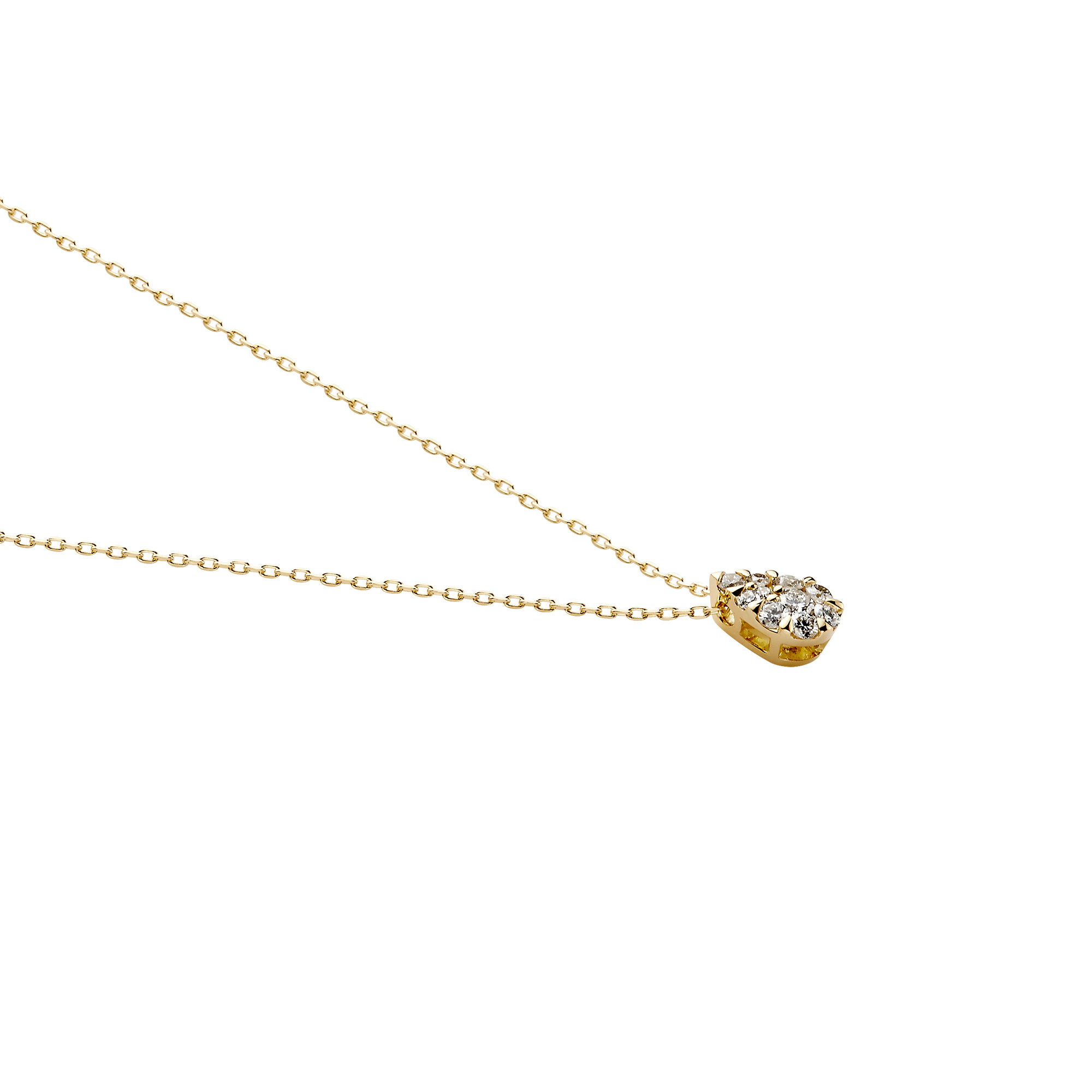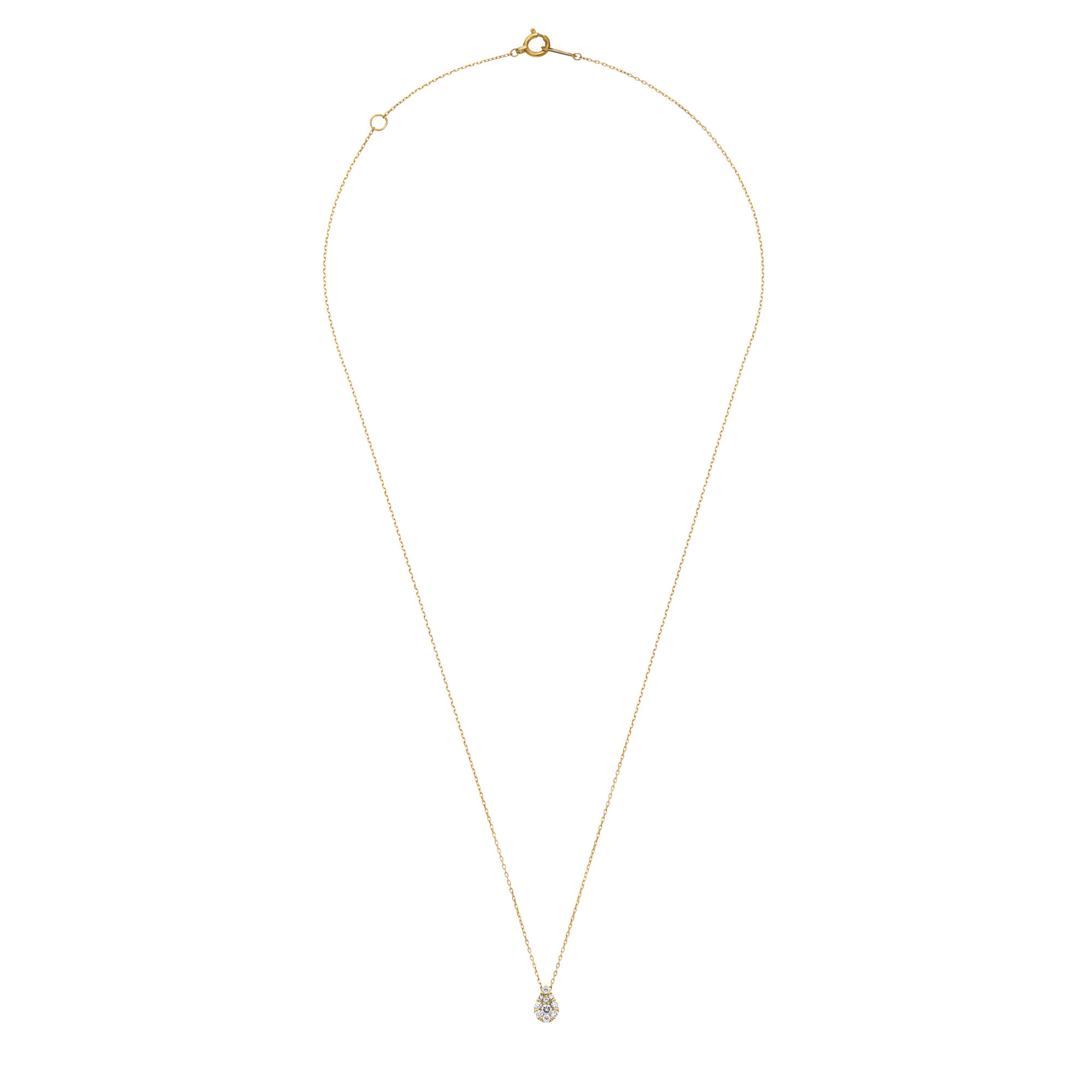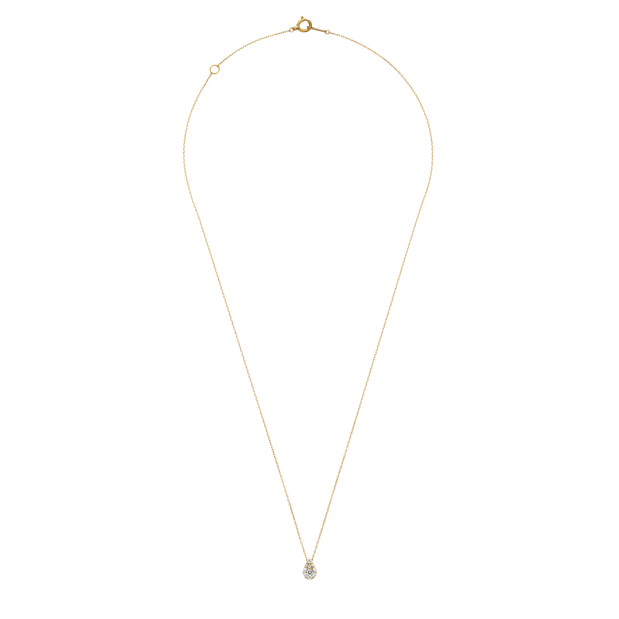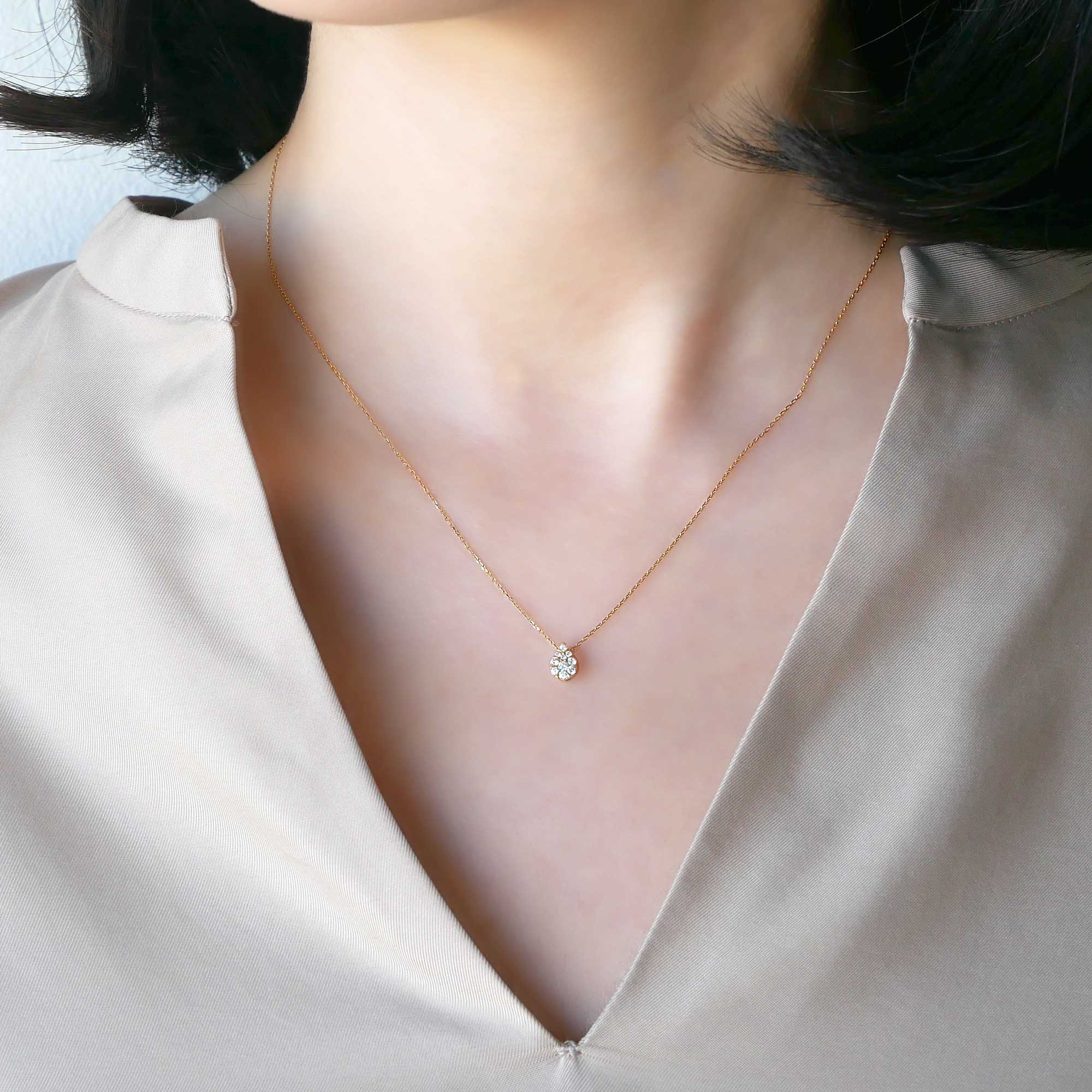 センターのダイヤモンドに爪を使わず、周囲のメレダイヤモンドで押さえて留めることで生まれる一体感ある強い輝きが魅力のネックレス。
