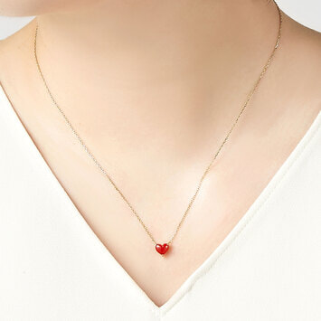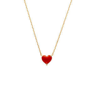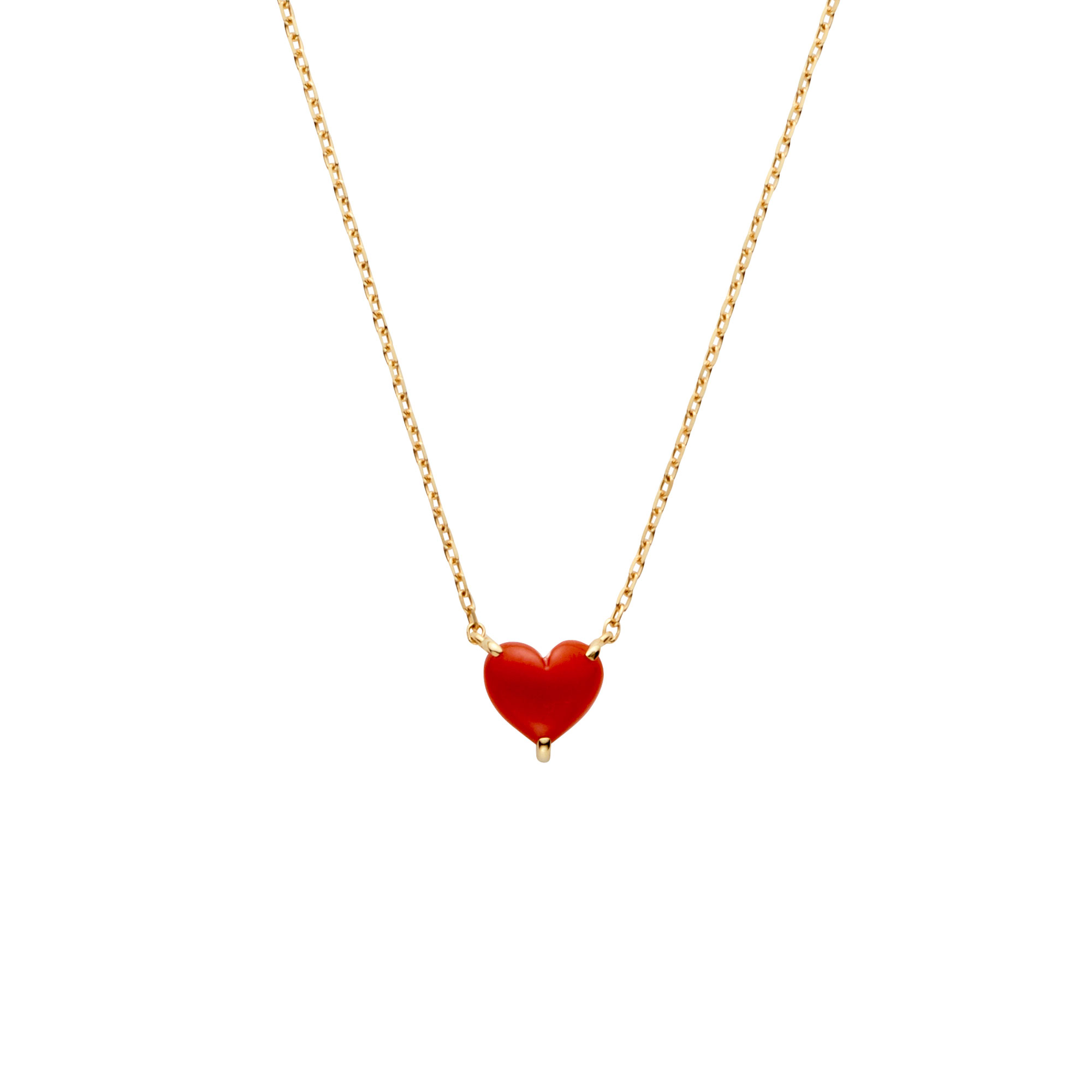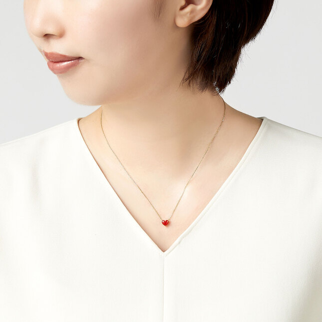 ぷっくりとした真っ赤なハートのサンゴが印象的なネックレス。