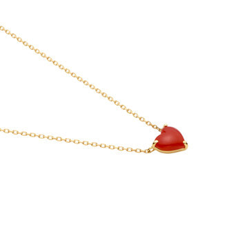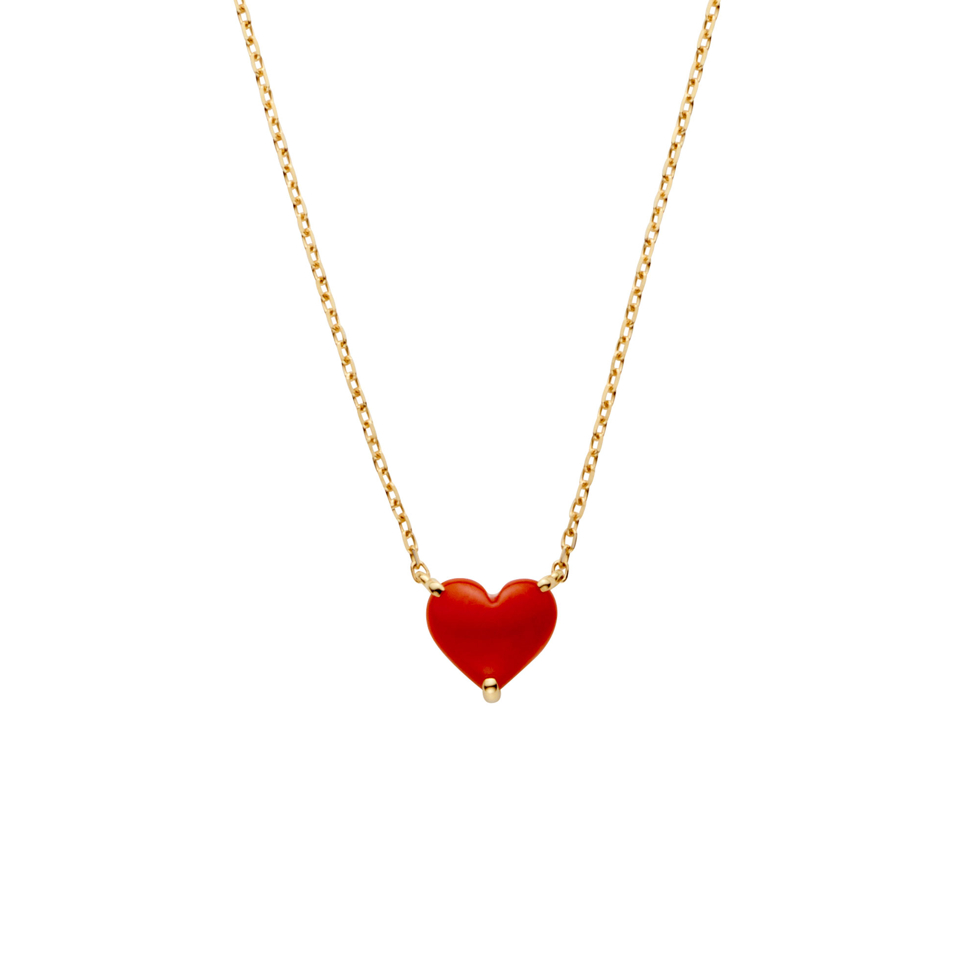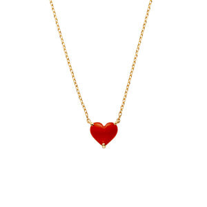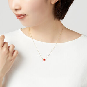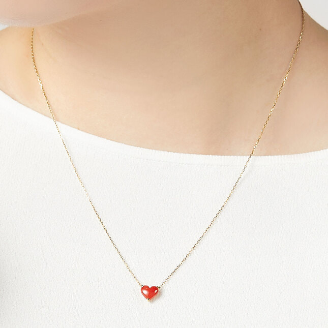 ぷっくりとした真っ赤なハートのサンゴが印象的なネックレス。